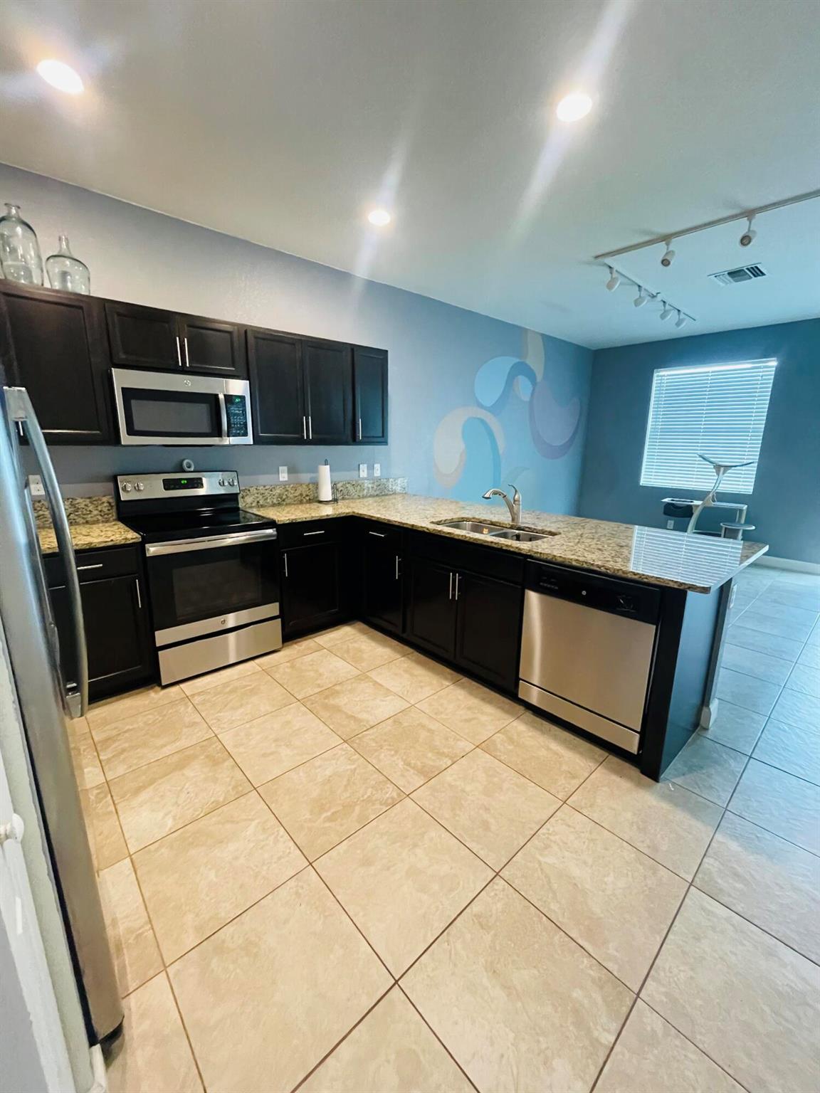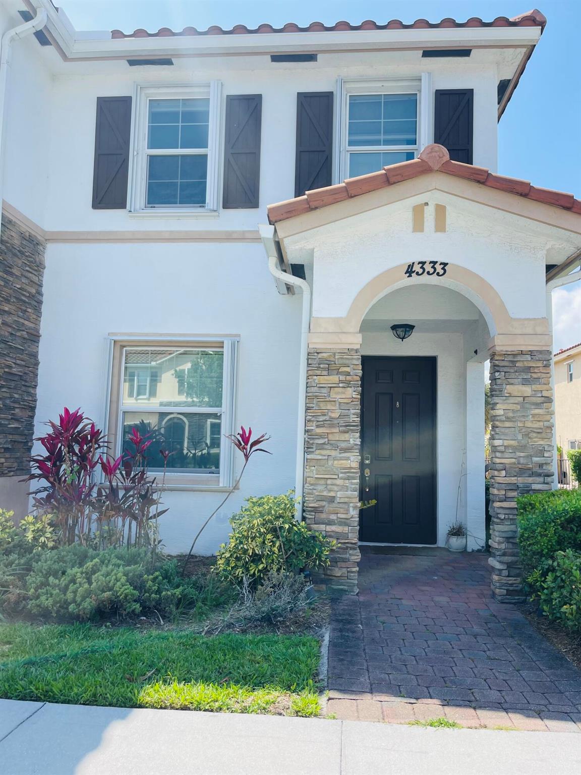 Beautiful Townhouse located in Charleston Commons with FHA Assumable loan at 3.5% for qualified buyers! Close to schools, ballparks, shopping and entertainment Pet and kid friendly-Stunning end unit overlooks pond with fountain & across from pool and playground! The Kitchen has Beautiful SS appliances with Granite Counters and A Big Beautiful Stackable laundry conveniently located upstairs with 2 bedrooms having their own full size bathroom and walk in closets. Accordian hurricane shutters and fenced paver patio with palm trees!