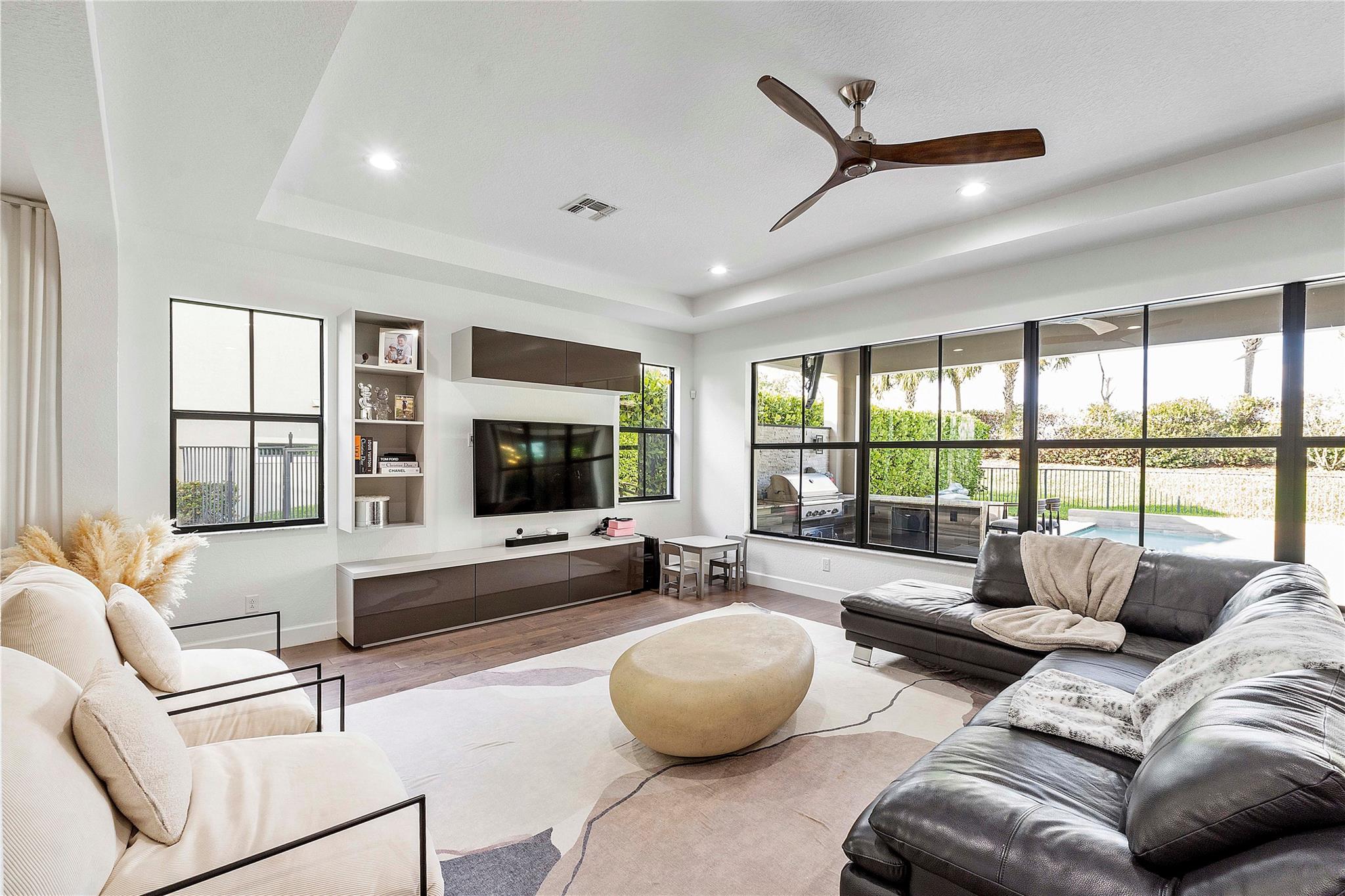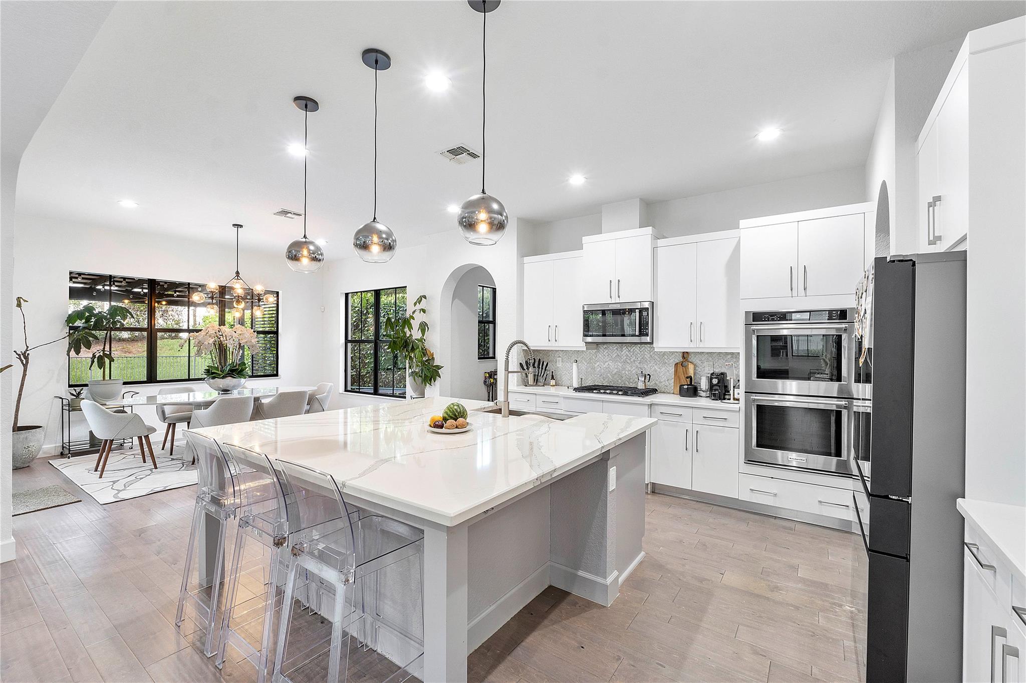 Stunning 4-bed 3 1/2 bath Ashby model in the desirable Watercrest community. Kitchen features huge quartz island, a double wall oven, and a butler's pantry with/ wine fridge. The beautiful primary bedroom boasts closets that are a fashion lover's dream with/ great views of the Everglades. The stunning primary bathroom has over $100k in upgrades. Lrg Loft upstairs. Bedroom downstairs en suite. Engineered Hardwood downstairs living area, stairs, primary bedroom, & upstairs living area. Gorgeous accent ceiling in dining room with/ designer light fixtures. Private Backyard w/ saltwater pool & Water Feature. Summer kitchen, & lighted pergola for entertaining. Rare long driveway. All Gas Appls. HOA fee includes Lscape & lawn care. For a private showing, pre-approval or proof of funds is required