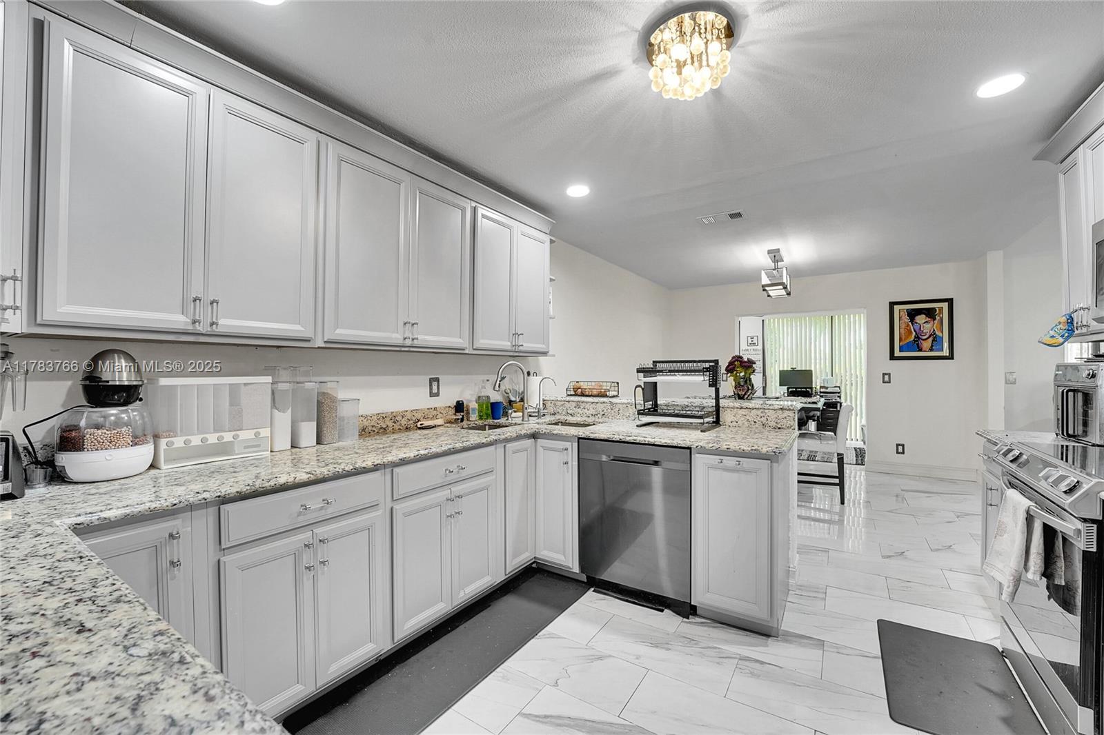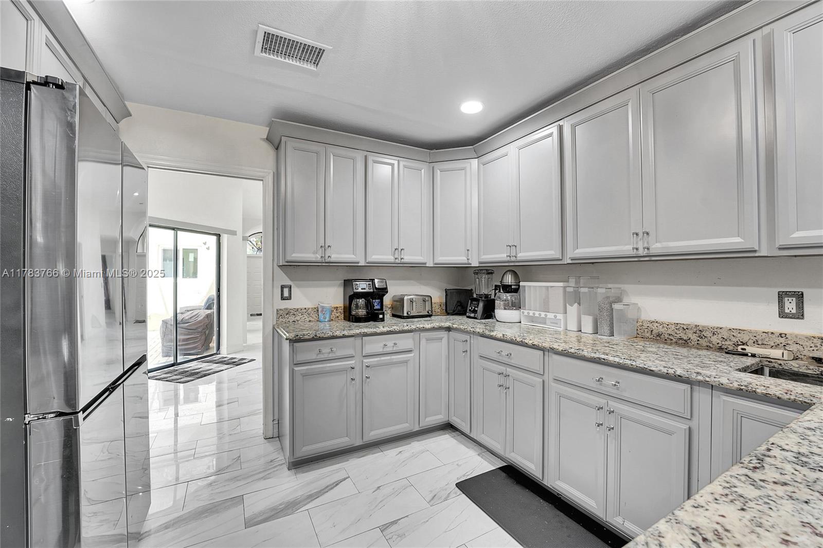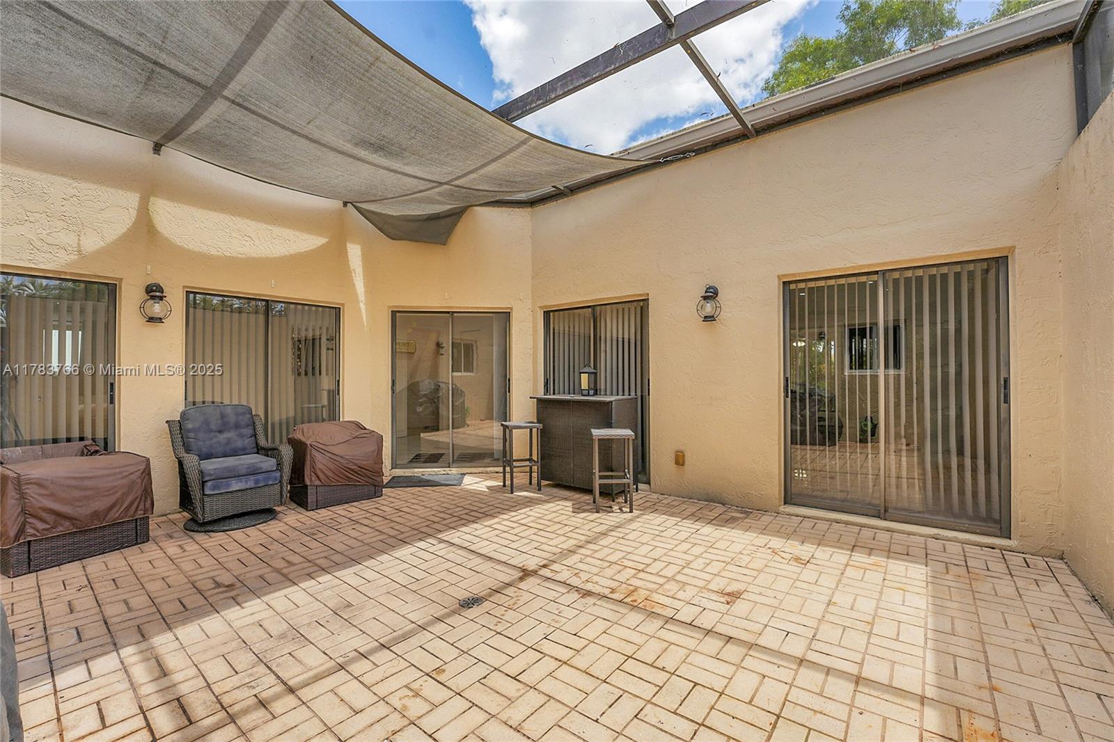 FHA rent-to-own program available for qualified buyers with 3.5% down and only 3 months of bank statements. Lovely, renovated courtyard single family home with a picturesque inner atrium and extremely large interior space. Much larger than it appears from the outside. Additional office in the back could be a fourth bedroom. Black and white porcelain, volume ceilings, impact windows, cookie dough granite and stainless steel appliances, Roman spa tub, glass enclosed stand up showers, big walk-in closets. HOA fee includes almost everything. Subject-to offers considered.