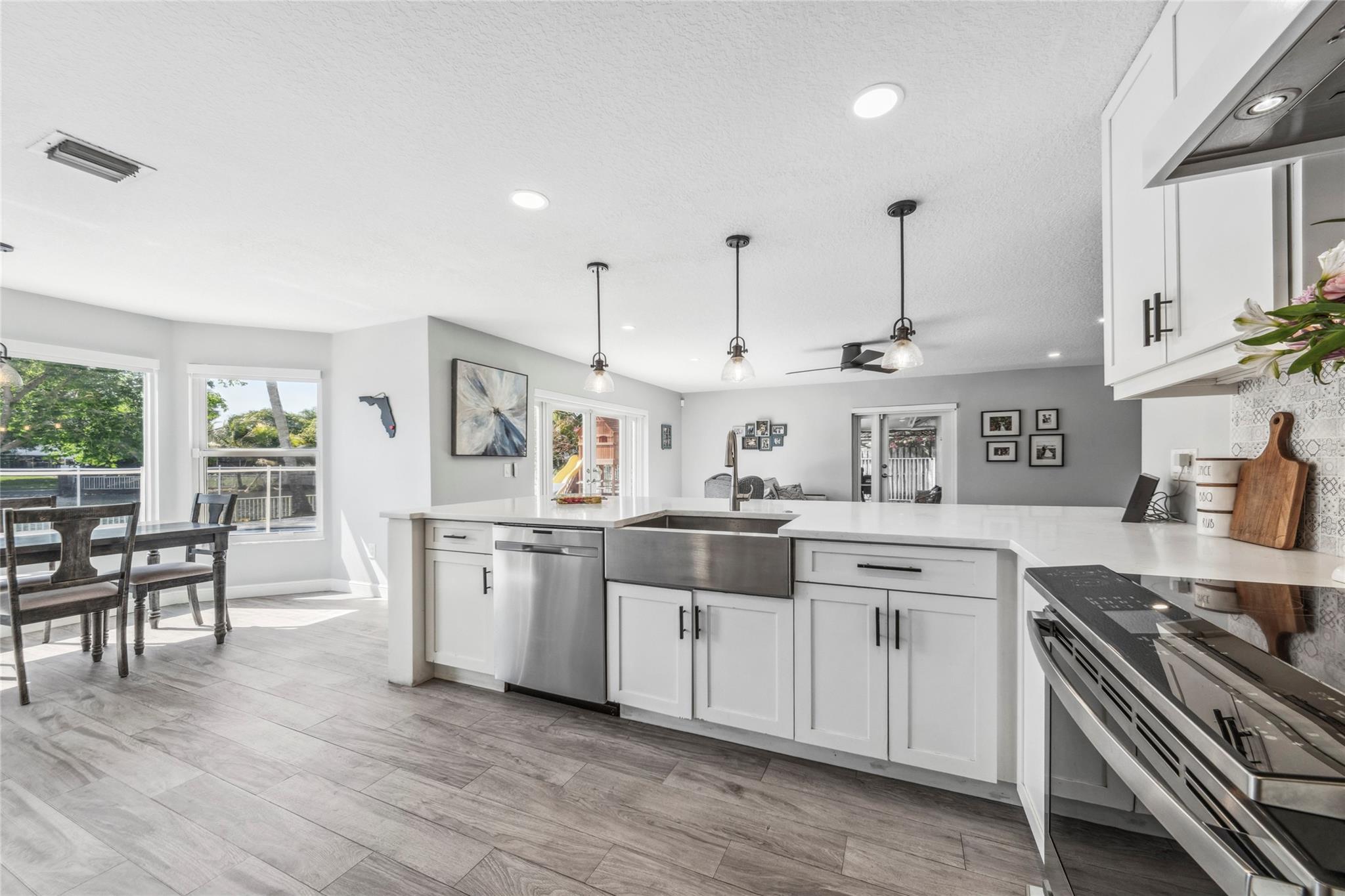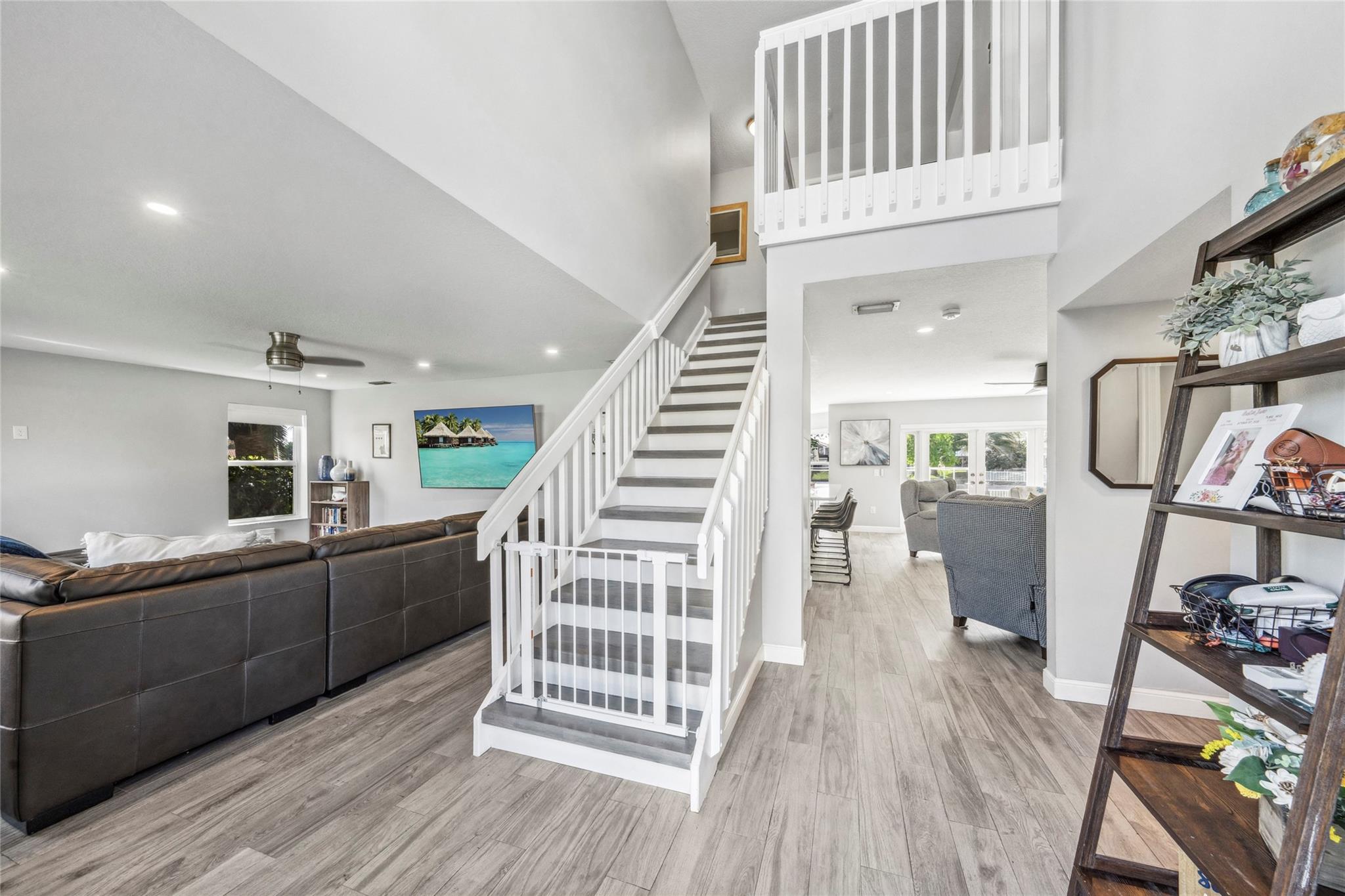Highest & Best due 4/29 @ 11AM Stunning fully renovated 4BR/2.5BA + OFFICE home in Davie’s most coveted family neighborhood. Chef’s kitchen w/ custom cabinetry & quartz counters, full wood-look tile (no vinyl!) + sound protection between floors, recessed lighting throughout, motorized window treatments, & plantation shutters. All impact windows/doors, 2 A/C's, indoor laundry room, & modern designer finishes throughout. Primary suite upstairs w/ x-large walk in closet & modern ensuite bath. Huge oversized lot w/ 160' of premium water frontage, Hawaiian blue pool, travertine deck, screened/covered patio & the best lake views in the neighborhood. Low-traffic street, close to parks, A-rated schools, shopping & dining. Immaculately maintained, move-in ready—perfect for family living. X flood!