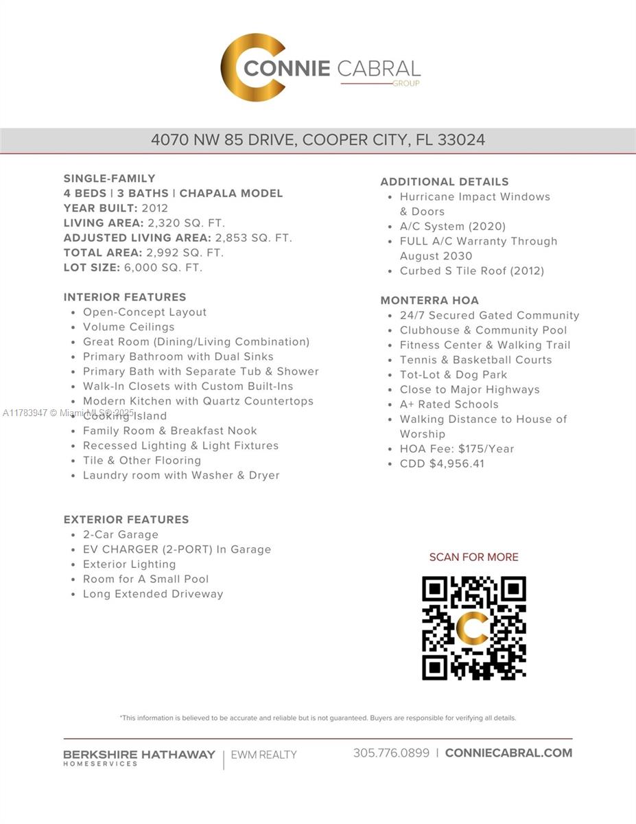 PRICED BELOW MARKET! IMPECCABLE CHAPALA MODEL FEATURING 4 BEDS, 3 BATHS, 12’ CEILINGS, AND HURRICANE IMPACT WINDOWS. OPEN LAYOUT WITH GRANITE COUNTERS, ISLAND, 42" CABINETS, NEWER APPLIANCES, MUD ROOM, AND CUSTOM BUILT CLOSETS. FRESHLY PAINTED EXTERIOR, EXTENDED DRIVEWAY, AND EV CHARGER (2-PORT) IN GARAGE. ROOF INSPECTED YEARLY. FULL AC WARRANTY THROUGH AUGUST 2030. THE PRIVATE OUTDOOR SPACE OFFERS ROOM FOR A SMALL POOL. STEPS TO CLUBHOUSE, BASKETBALL & TENNIS COURTS, FITNESS CENTER, AND TOT LOT. THE GATED COMMUNITY ALSO OFFERS OTHER RESORT-STYLE AMENITIES, INCLUDING DOG PARK AND WALKING TRAILS. A+ RATED SCHOOLS WITH EASY ACCESS TO SHOPPING, DINING, HOUSE OF WORSHIP, AND ALL MAJOR HIGHWAYS.