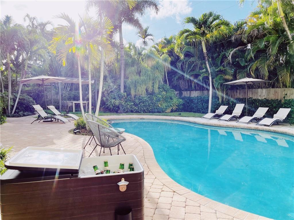 This spacious single-family home located in the desirable Coral Ridge neighborhood. Built in 1959, this two-story residence offers 4 bedrooms and 4.5 bathrooms across 2,646 square feet of living space. The home features Italian tile flooring, a granite kitchen with ample cabinet and counter space, stainless steel appliances, and updated bathrooms. The master suite is situated on the second floor, and the property includes a pool, mostly impact windows, and washer and dryer hookups. The lot size is approximately 10,001 square feet, and the home is equipped with air conditioning and provides 4 parking spaces .