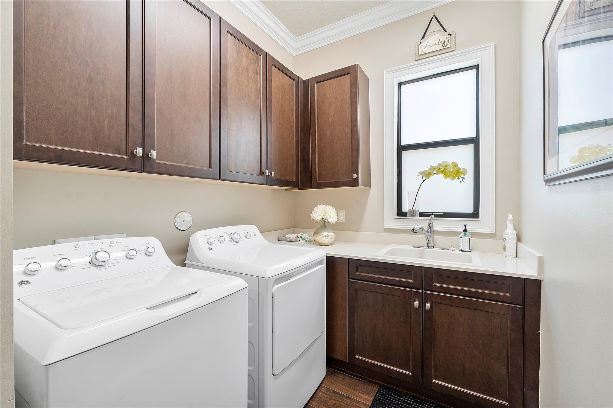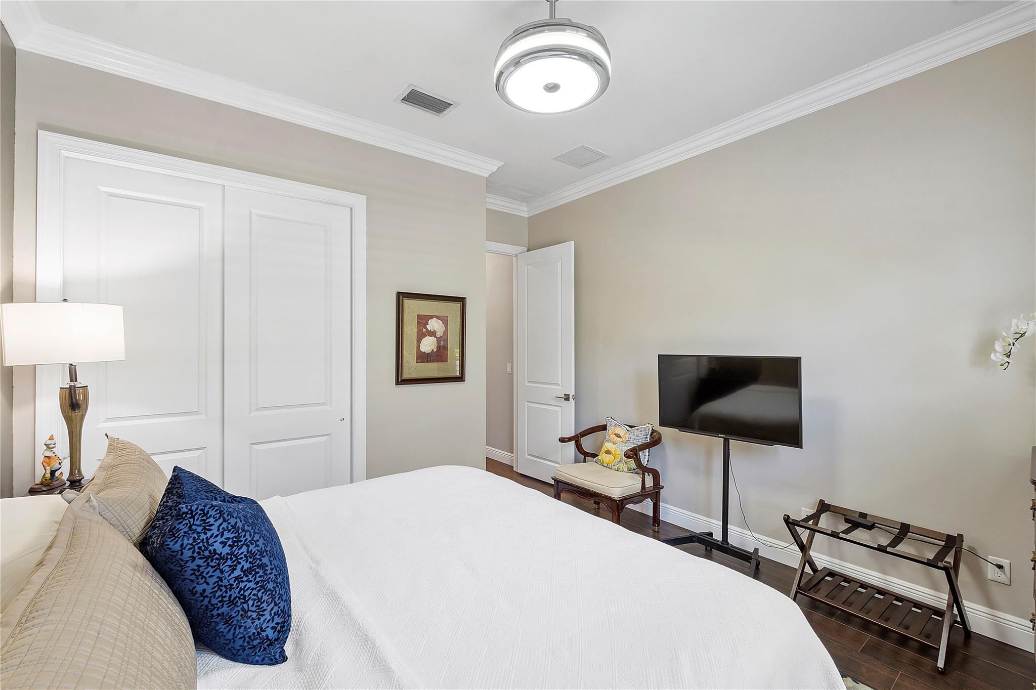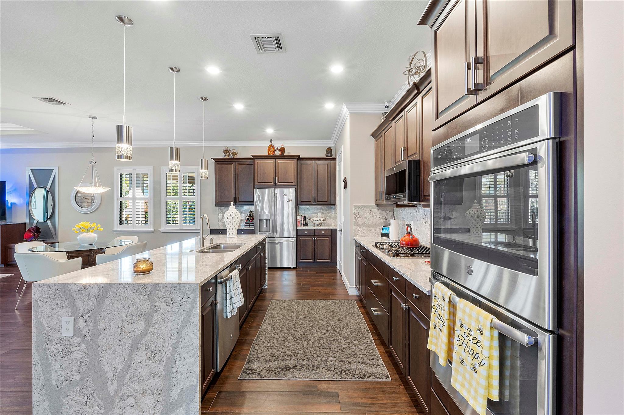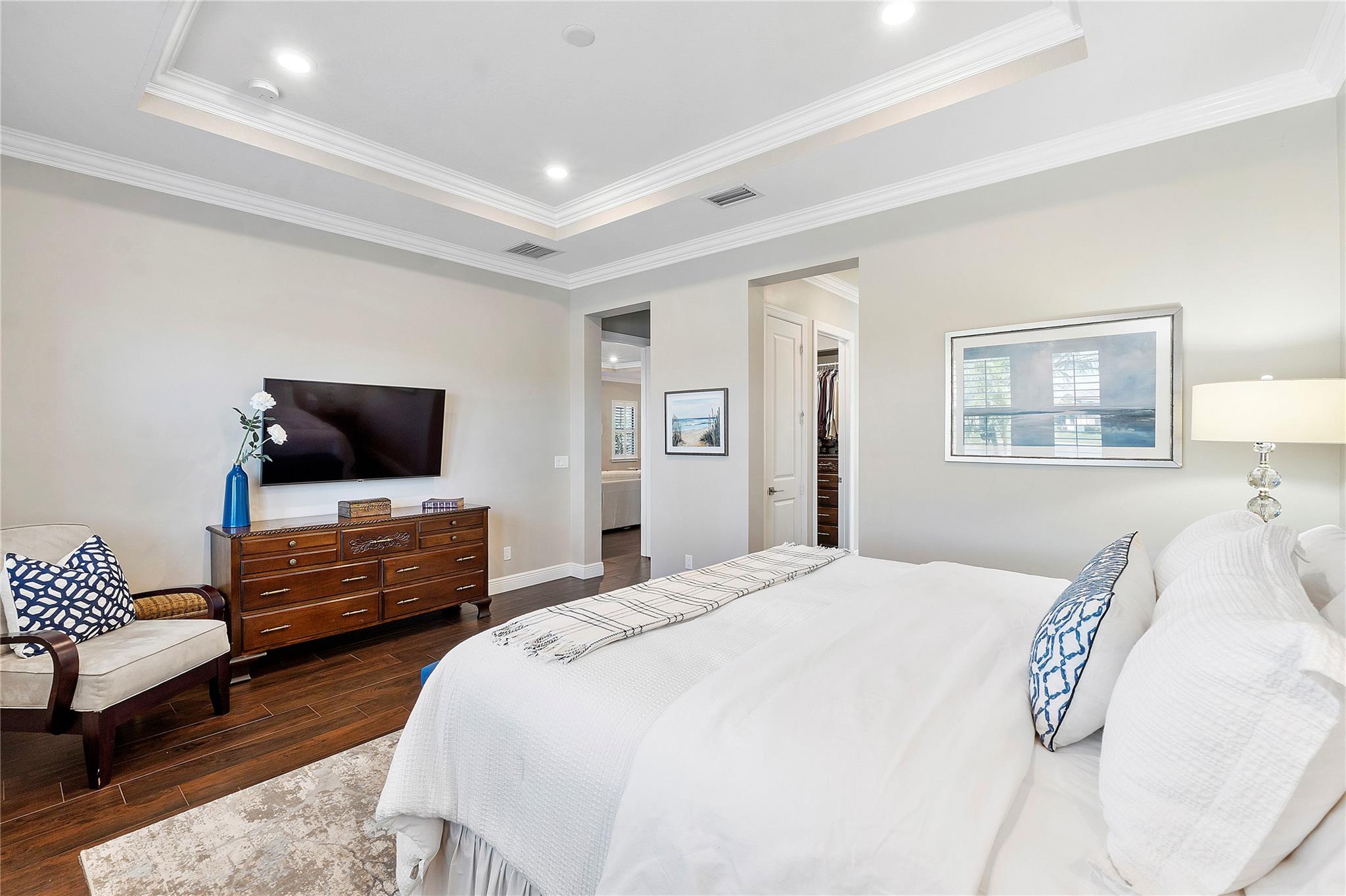MODEL CONDITION ON THE LAKE IN PARKLAND BAY. Welcome to this stunning 4 bedroom, 2 and a half bath home offering elegant wood like tile floors throughout and crown molding in every room. Impact windows and doors. The gourmet kitchen is a chef’s dream, featuring a large center island with quartz countertops, wood cabinetry, double ovens, and a spacious walk-in pantry. Primary bedroom has 2 custom built closets. Primary bath has 2 sinks, roman tub, private toilet and large shower equipped with frameless glass doors. Plantation shutters add a touch of charm and privacy throughout the home. Enjoy serene lake views from the comfort of your screened patio.