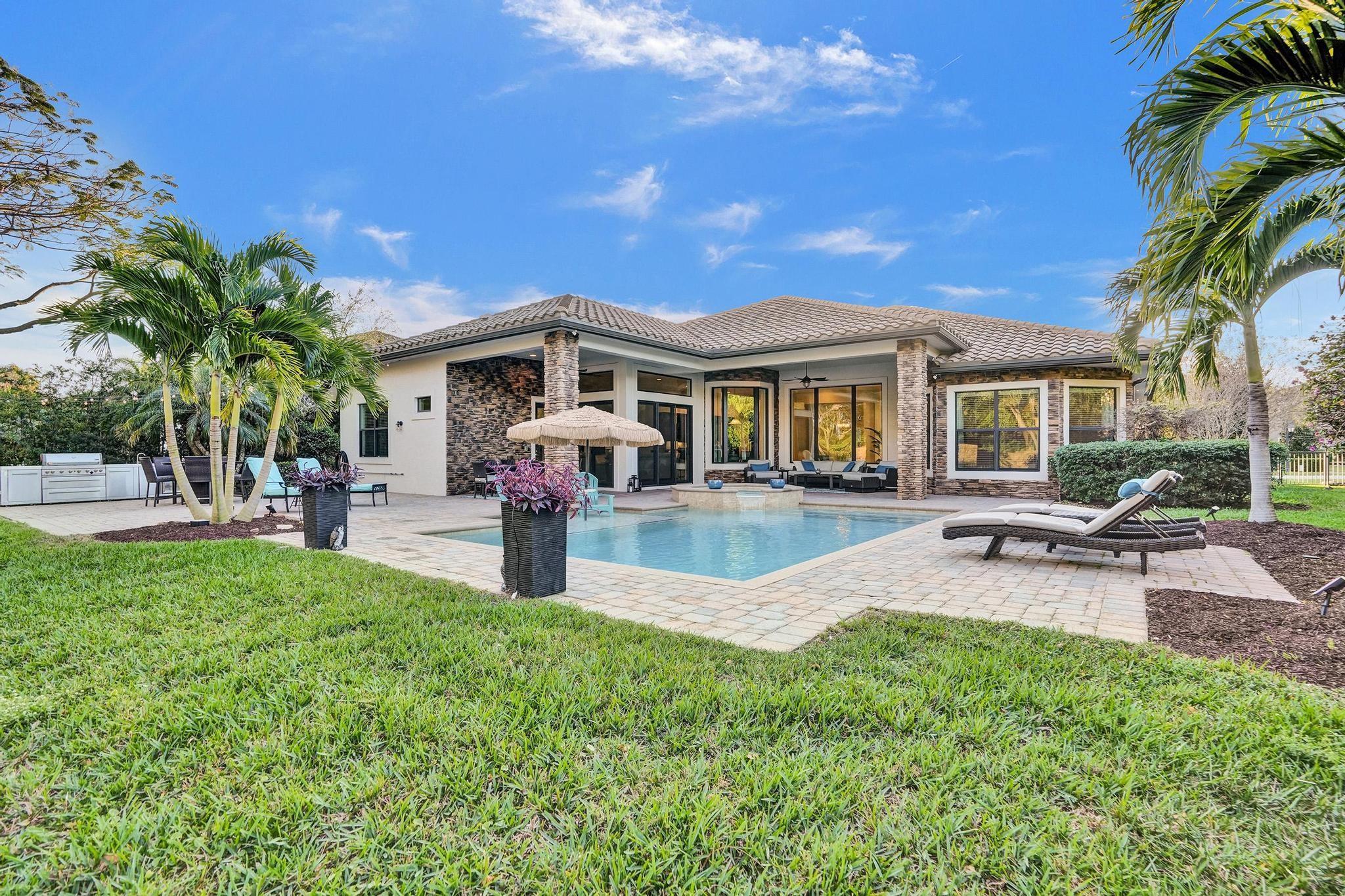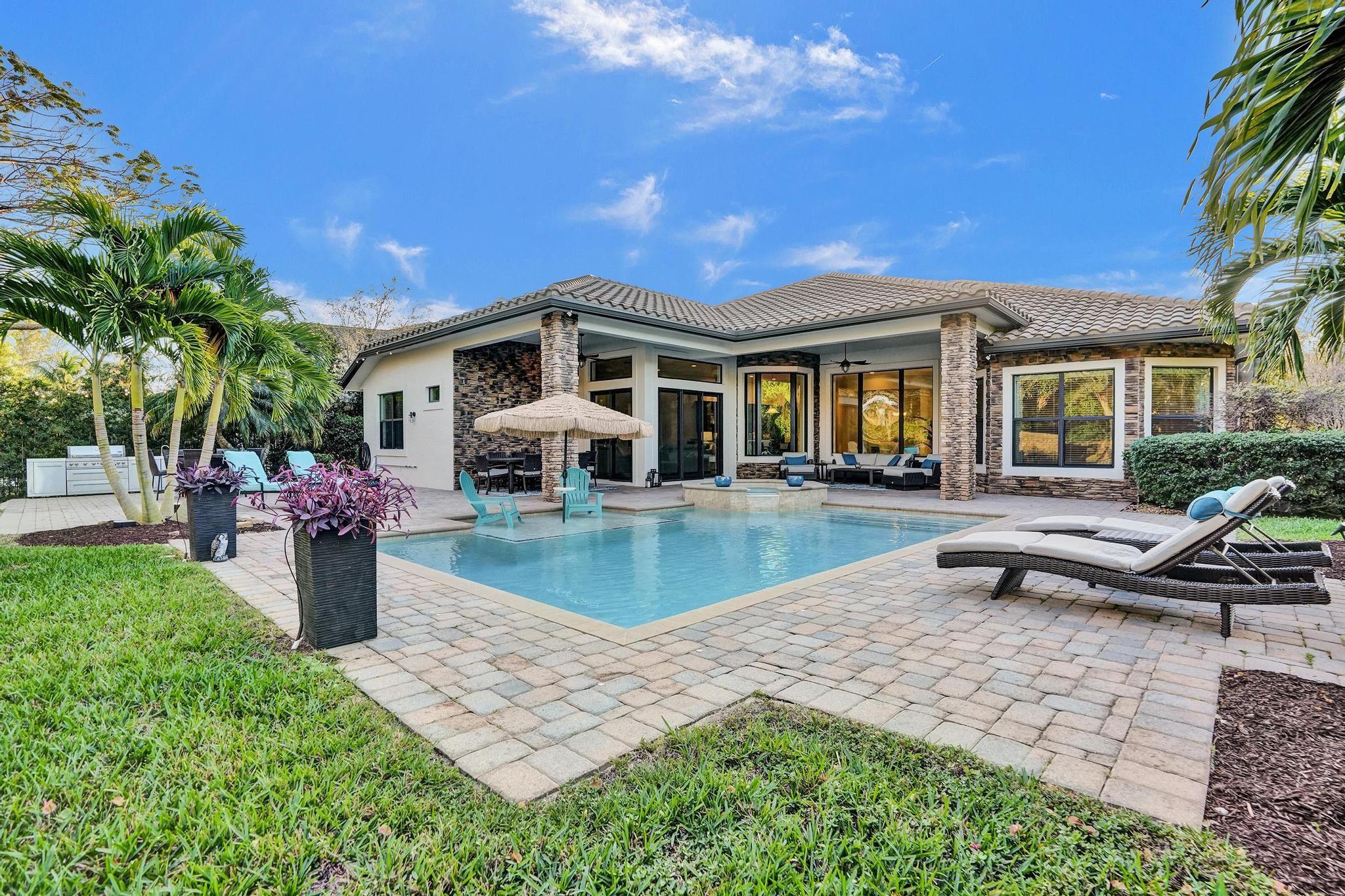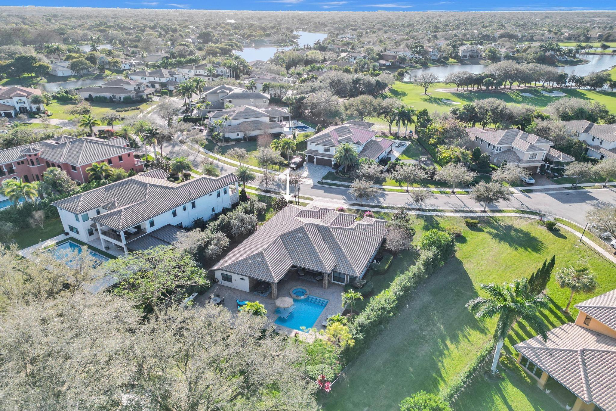 PARKLAND GOLF & COUNTRY CLUB ONE-OF-A-KIND TOLL BROTHERSS ROYALE MODEL (ONE STORY) BUILT ON PREMIUM 18,312 SF LOT, Heated Pool & Spa, & fabulous views of 3 Community Waterfall Fountains and simply enchanting and entertaining backyard. Impact Windows and Doors, Custom Wrought Iron Double Door Entry. Marble Floors throughout main living areas & wood flooring in bedrooms. Gourmet Kitchen w/Wolf 6 Burner Gas Cooktop & Hood, Wolf Double Wall Ovens, Wolf Microwave, Sub-Zero Fridge with Ice & Water Dispenser, Bosch Dishwasher. Primary Bedroom Suite w/2 Walk-in Closets, French Door to Patio, Primary Bath has Jetted Tub, Two Separate Vanities. Triple Split Floor Plan. *5th Bedroom is Office w/ Built-ins, Bedroom #2 is separate with WIC, Bedrooms #3 & #4 have J&J Bath. Resort Style Amenities.