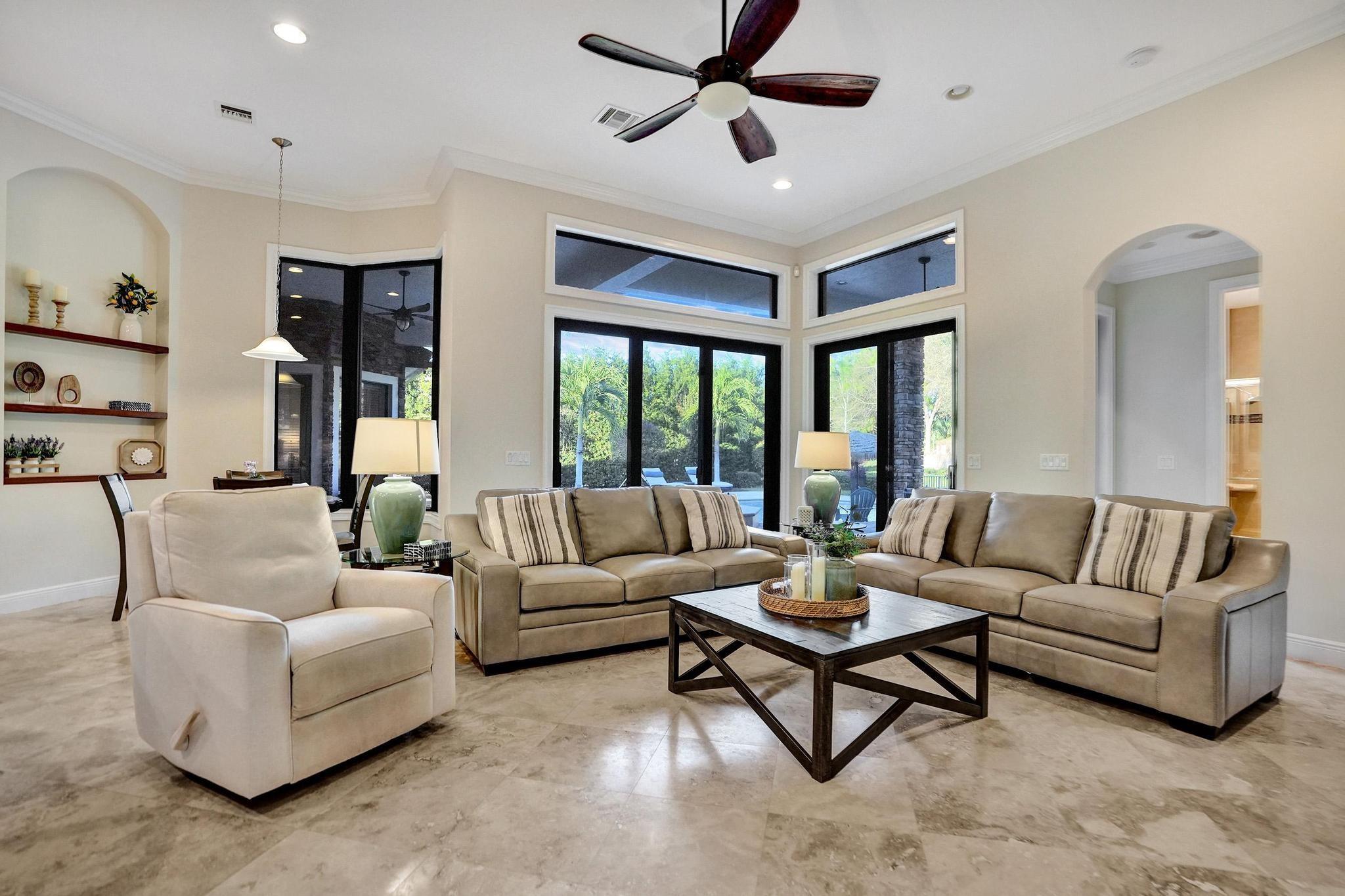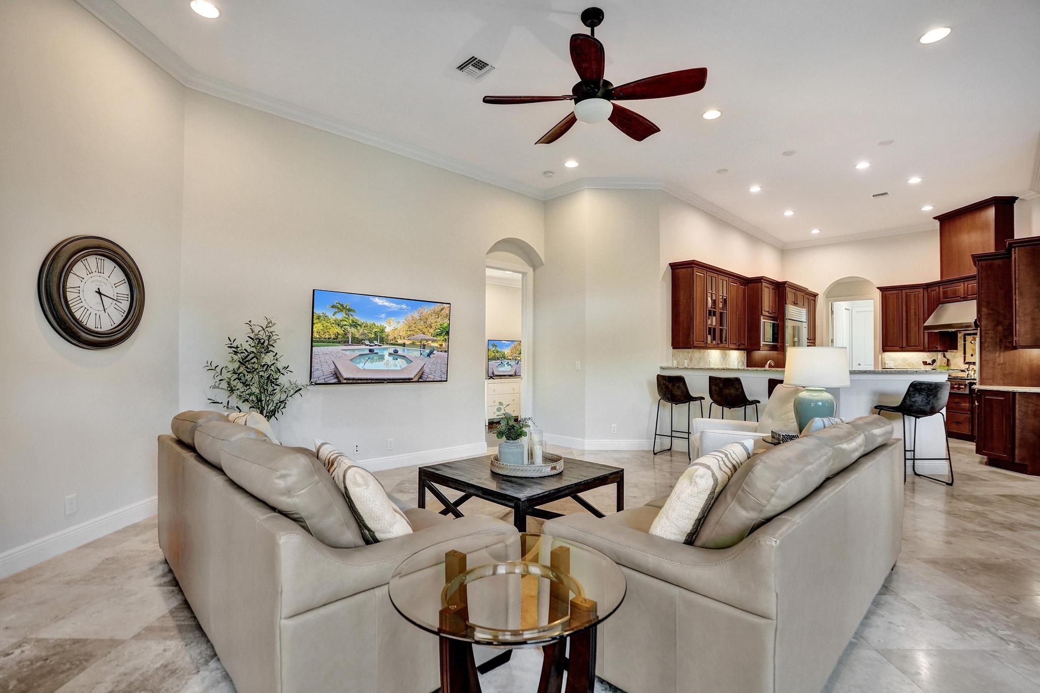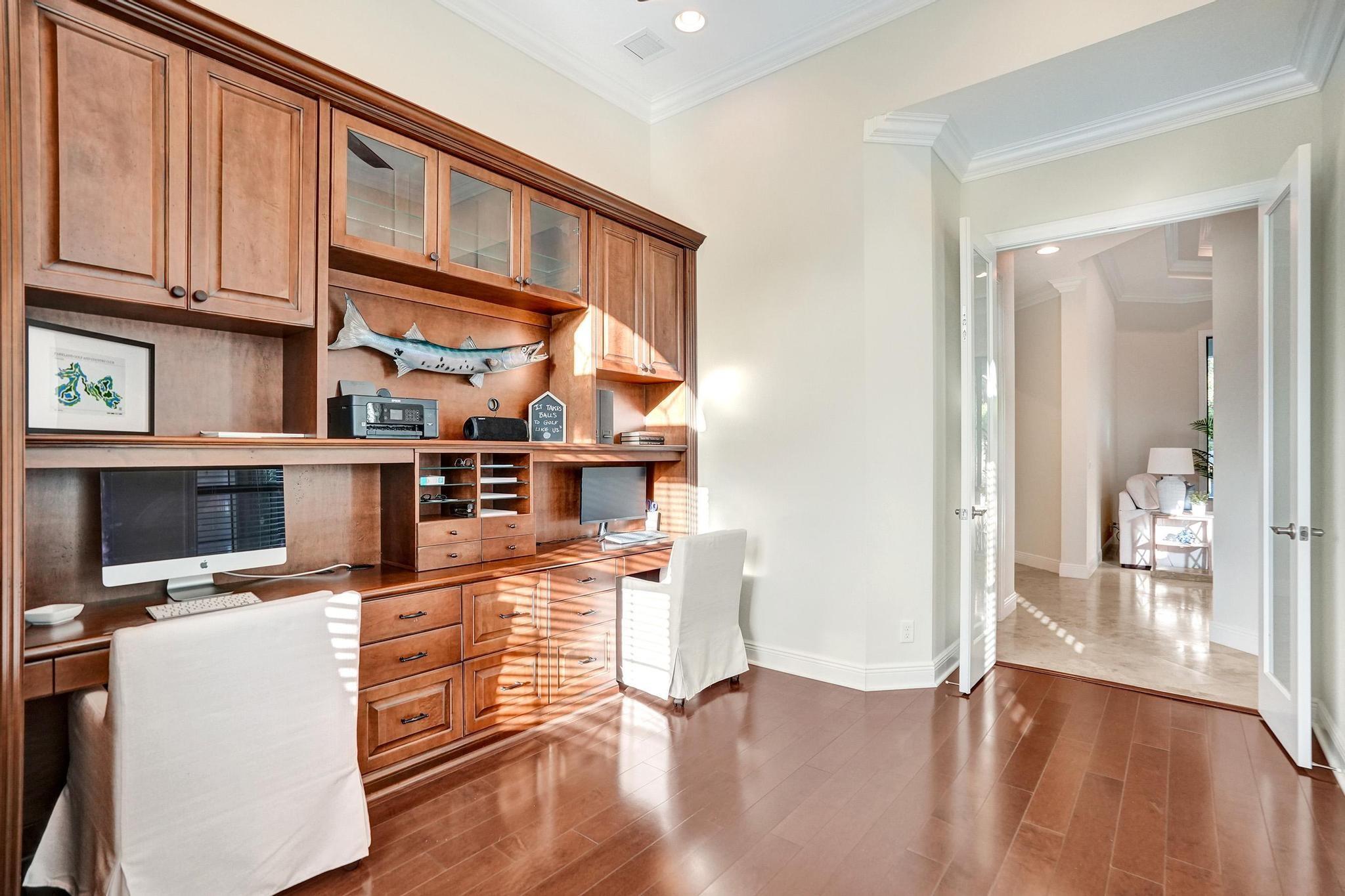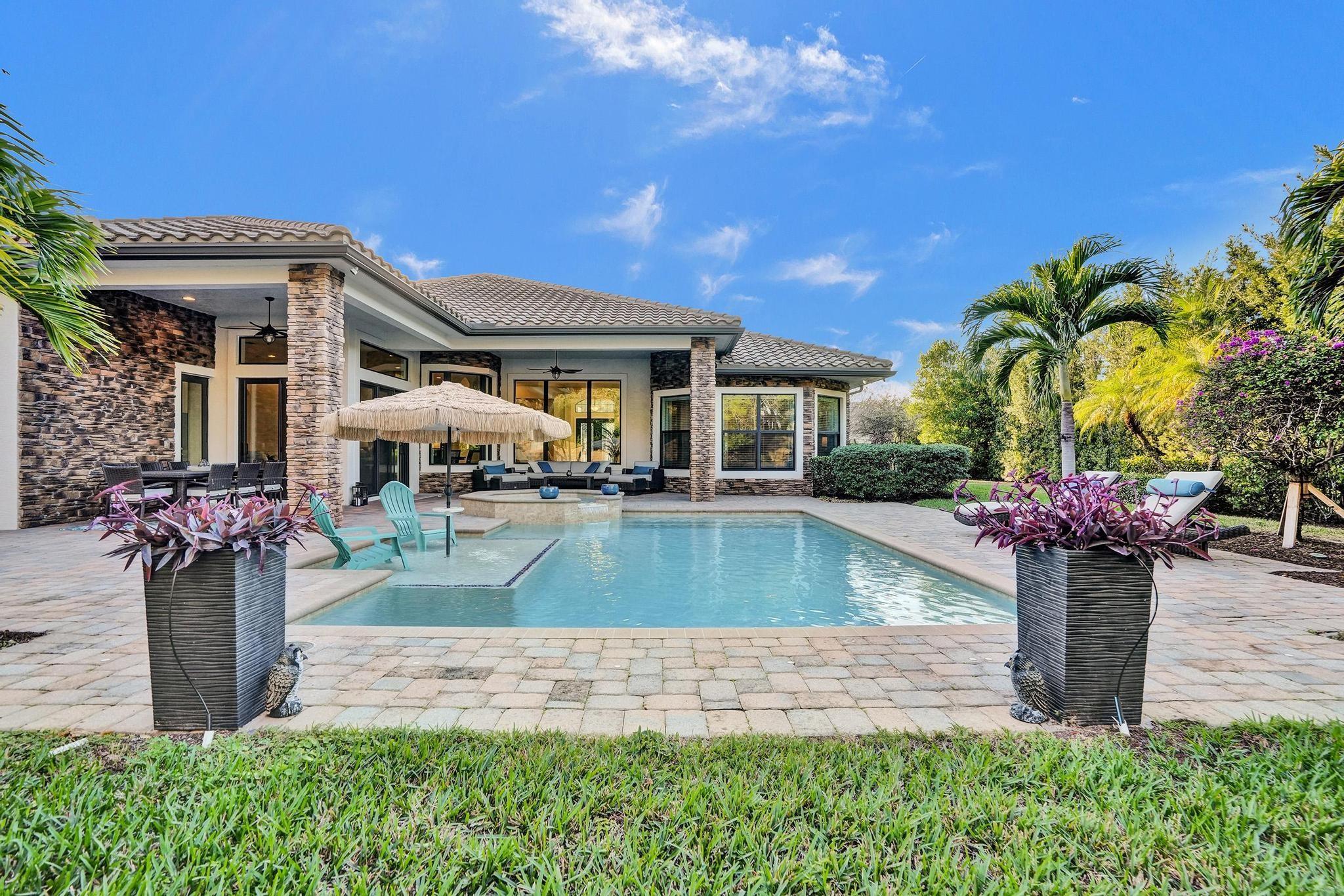 PARKLAND GOLF & COUNTRY CLUB ONE-OF-A-KIND TOLL BROTHERSS ROYALE MODEL (ONE STORY) BUILT ON PREMIUM 18,312 SF LOT, Heated Pool & Spa, & fabulous views of 3 Community Waterfall Fountains and simply enchanting and entertaining backyard. Impact Windows and Doors, Custom Wrought Iron Double Door Entry. Marble Floors throughout main living areas & wood flooring in bedrooms. Gourmet Kitchen w/Wolf 6 Burner Gas Cooktop & Hood, Wolf Double Wall Ovens, Wolf Microwave, Sub-Zero Fridge with Ice & Water Dispenser, Bosch Dishwasher. Primary Bedroom Suite w/2 Walk-in Closets, French Door to Patio, Primary Bath has Jetted Tub, Two Separate Vanities. Triple Split Floor Plan. *5th Bedroom is Office w/ Built-ins, Bedroom #2 is separate with WIC, Bedrooms #3 & #4 have J&J Bath. Resort Style Amenities.