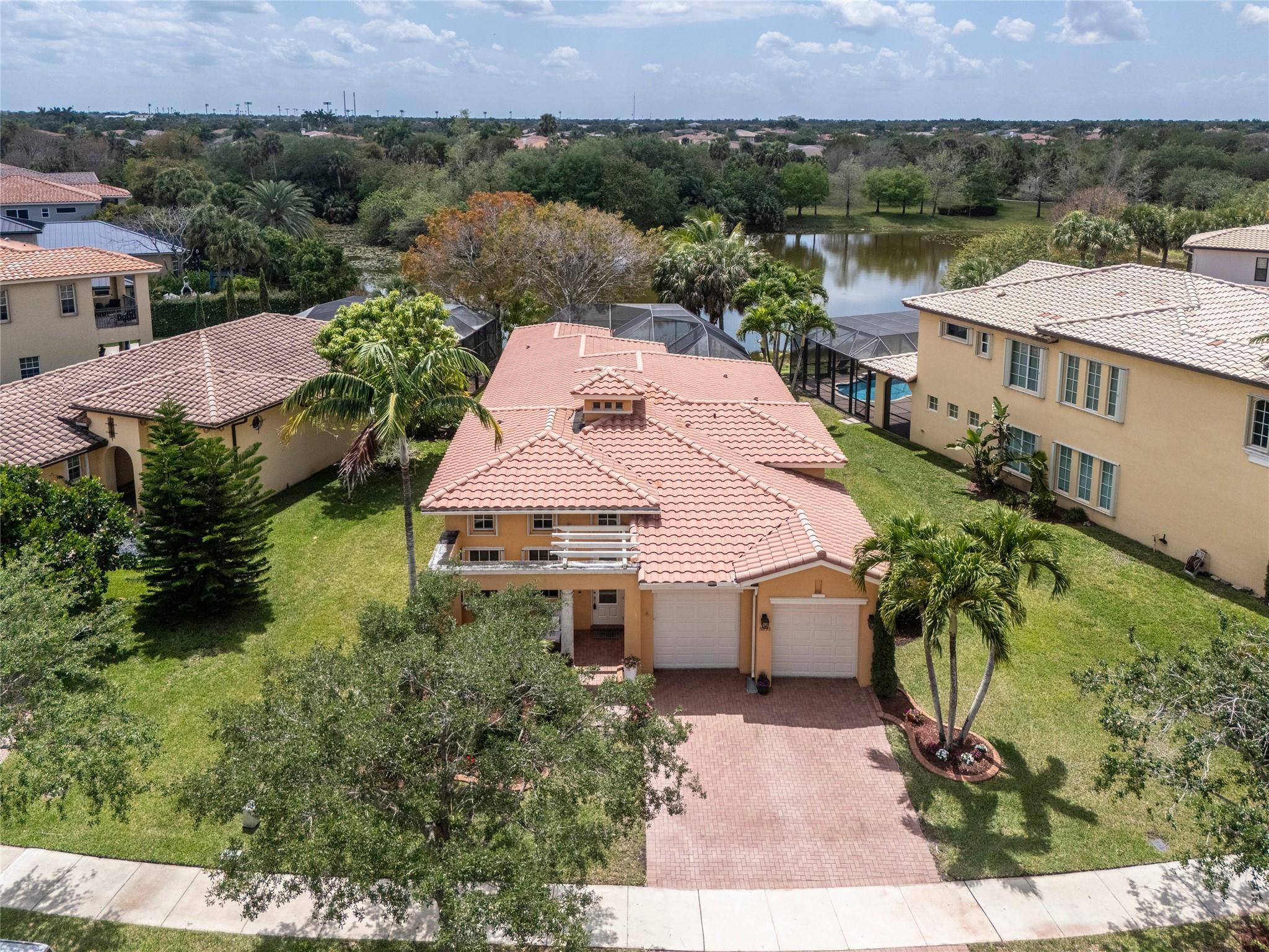 Waterfront lot with lake & preserve views! Private, screen-enclosed pool! Fabulous floorplan with separate guest/in-law suite! Located in coveted Heron Bay, this Myakka model offers 4 bedrooms, 3 full bathrooms and a private dining room that can easily convert into a bedroom/office/playroom/etc. Highlights include: neutral tile in all living areas (wood in dining room); volume ceilings throughout; open kitchen w/wood cabinets, granite countertops & large island; spacious family/great room off kitchen; covered lania with private entrance to 4th bedroom & cabana bathroom; accordion hurricane shutters; screened pool/patio with breathtaking views and more! Heron Bay offers resort-style amenities - pool, tennis, fitness center, pickleball, basketball - with low HOA fees! A-rated schools!