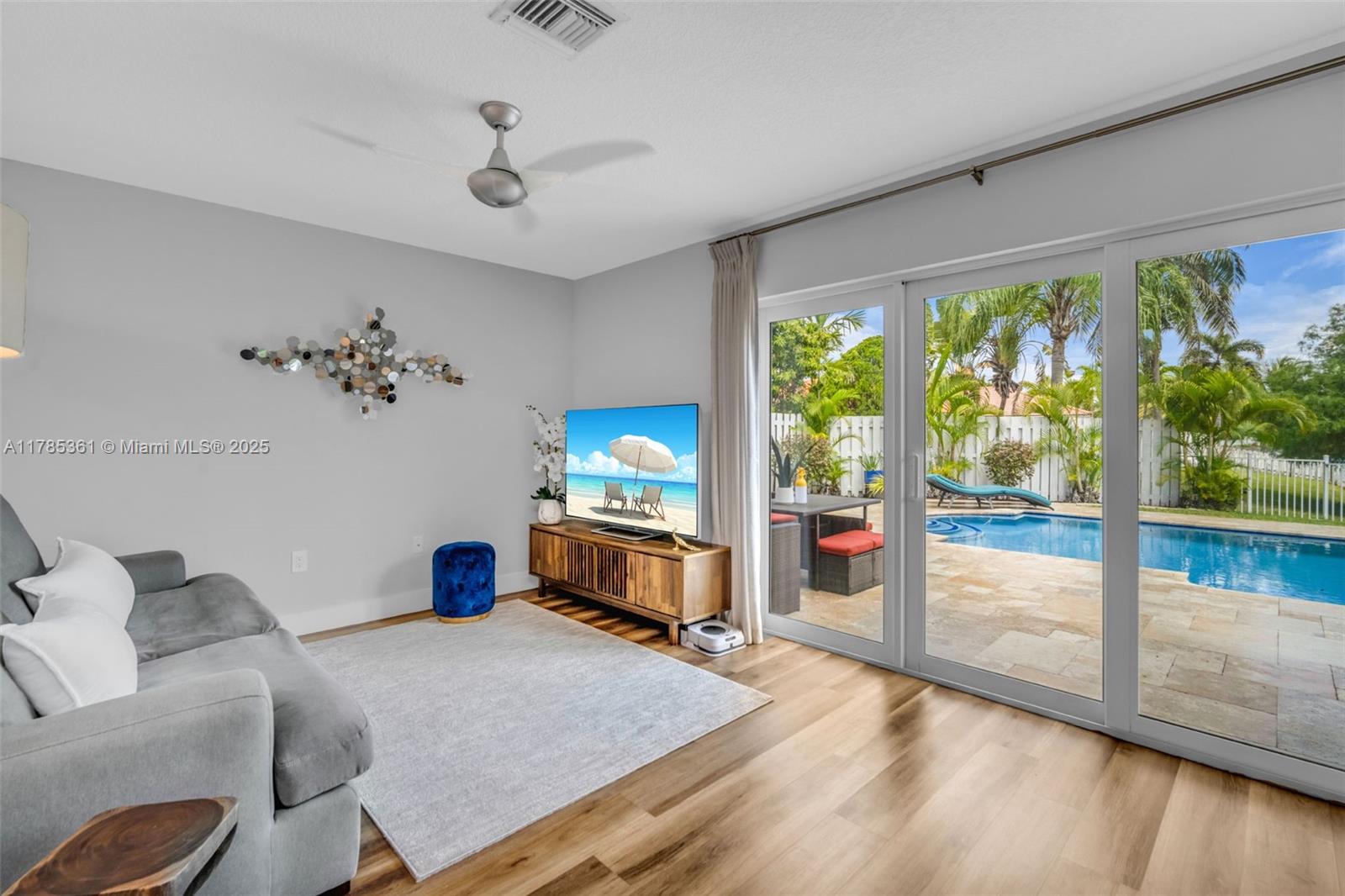 Stunning 3BR/2.5BA POOL home, perfectly situated on a serene LAKE. Featuring NEW ROOF (2022), AC (2024) & IMPACT WINDOWS/DOORS (2017)! Boasting high ceilings creating an open & airy atmosphere w/lots of natural light. New LVP flooring on 1st floor, updated kitchen w/Quartz countertops, SS appliances & gas stove. Bathrooms have been beautifully updated & Smarthome equipped w/Ring doorbell & Nest controls, providing convenience & modern living. Step outside to your private oasis large pool featuring salt system, LED lighting & travertine decking. Fully fenced-in yard ensures privacy while enjoying the tranquil lake views. Garage is under air, offering the flexibility to use as 4th/BR. This home offers elegance and comfort. Close to 595, Sawgrass EPWY, Shopping, Dining, Parks,& more!MUST SEE!