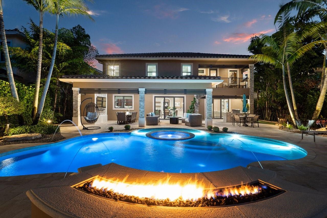 Experience resort style living in this lakefront Parkland Golf & CC home. 5 beds/5.5 baths, 3 car garage, 1,000 bottle wine room, large chef's kitchen with oversized island, double oven, 6 JennAir gas burner, designer finishes like custom millwork, natural stone, plantation shutters & luxury wall coverings. Relax or entertain in a private oversized backyard, w/custom designed pool & spa, newly expanded 32'x16' lanai w/12' ceiling, summer kitchen, landscaping, lighting, fire pit & waterfall. Whole house 30KW gas generator. 2 newer HVAC 26 SEER units. Honed marble finished & hardwood floors. High eff natural gas HWH. Upgrades galore & move in ready. See attached. PGCC offers tennis, pickleball, fitness center, restaurants & bars, Kids Club, and more. Golf membership is separate & optional.