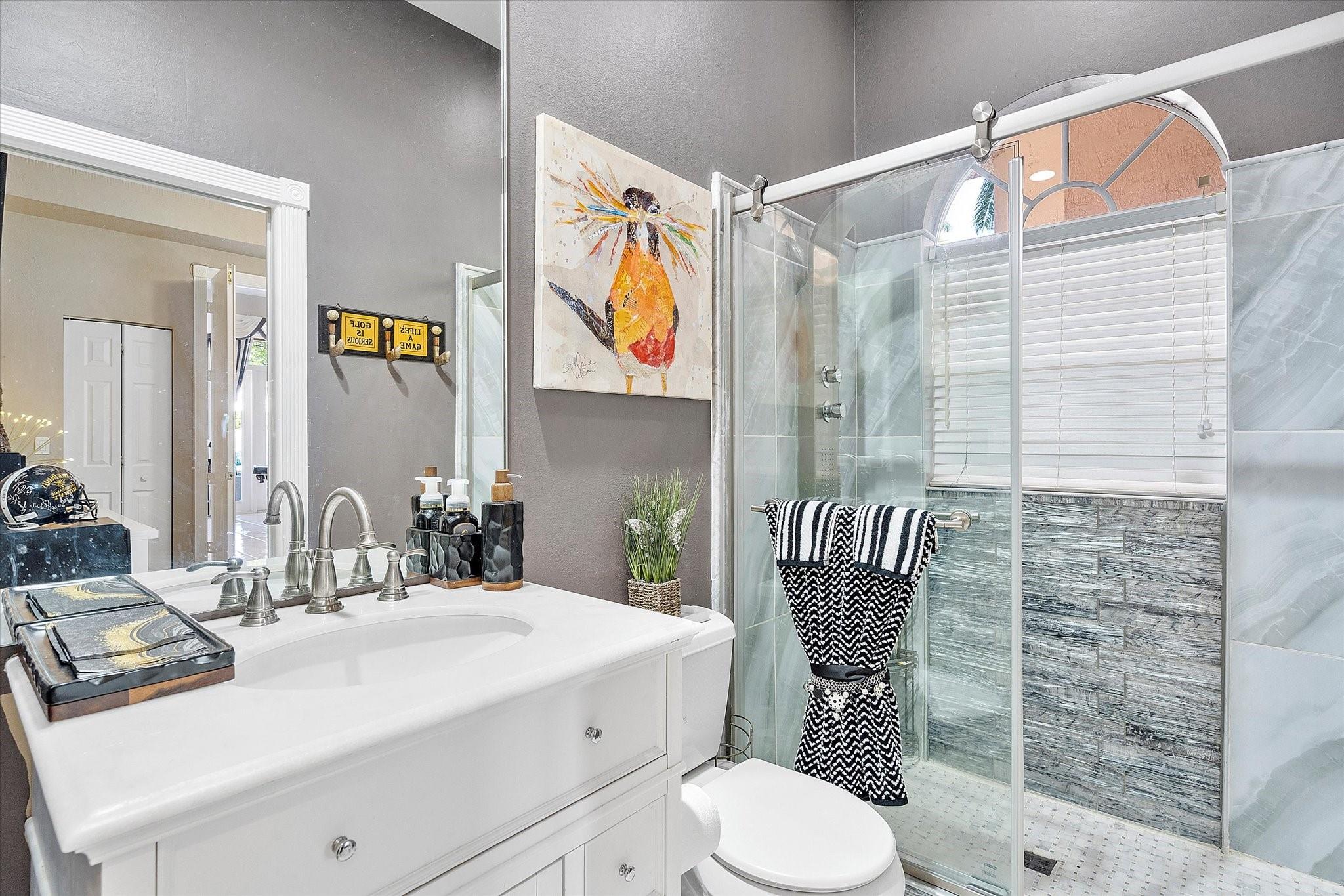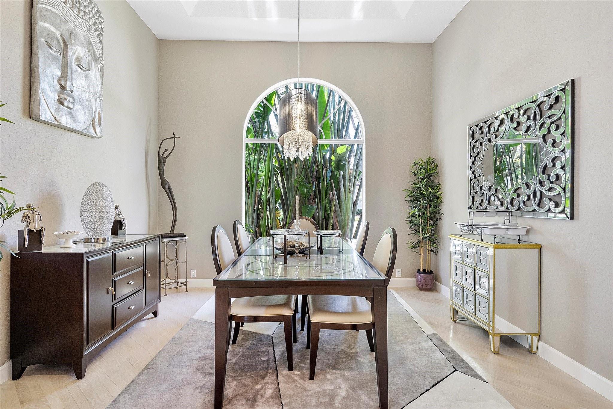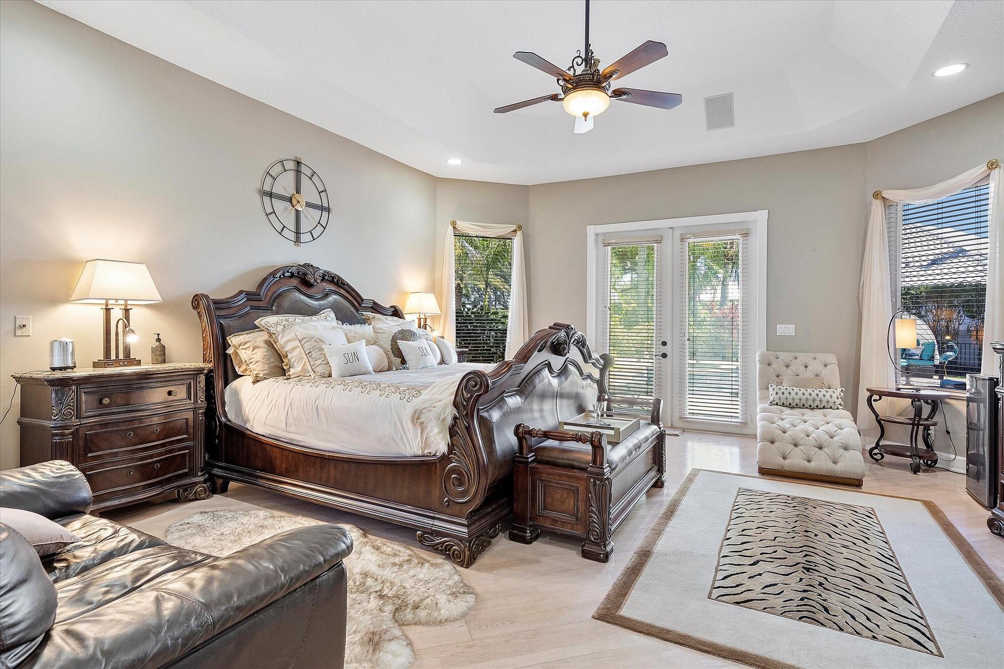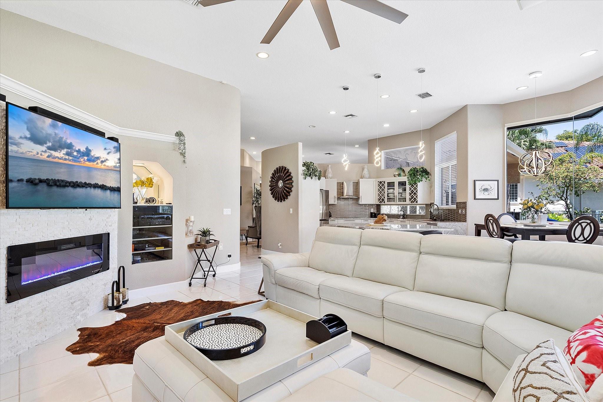 Exclusive, gated Greens of Eagle Trace dream home with amazing golf course views! This 5-bed, 4-bath residence sits on a prime oversized corner lot with a circular paver driveway and 3-car garage. Recent upgrades include a 2018 roof, 2 newer AC units, new hurricane-impact garage door and windows, new kitchen appliances, new pool heater, and updated bathrooms. Entertain in the spacious formal dining room or central living area. The luxurious primary wing offers dual walk-in closets and a spa-like ensuite with marble tile, walk-in shower, soaker tub, and dual vanities. Enjoy volume ceilings, ceramic tile, a cozy family room fireplace, and a private backyard oasis with a remodeled pool, infinity edge, spa, travertine pavers, cabana bath, summer kitchen, and serene golf course views.