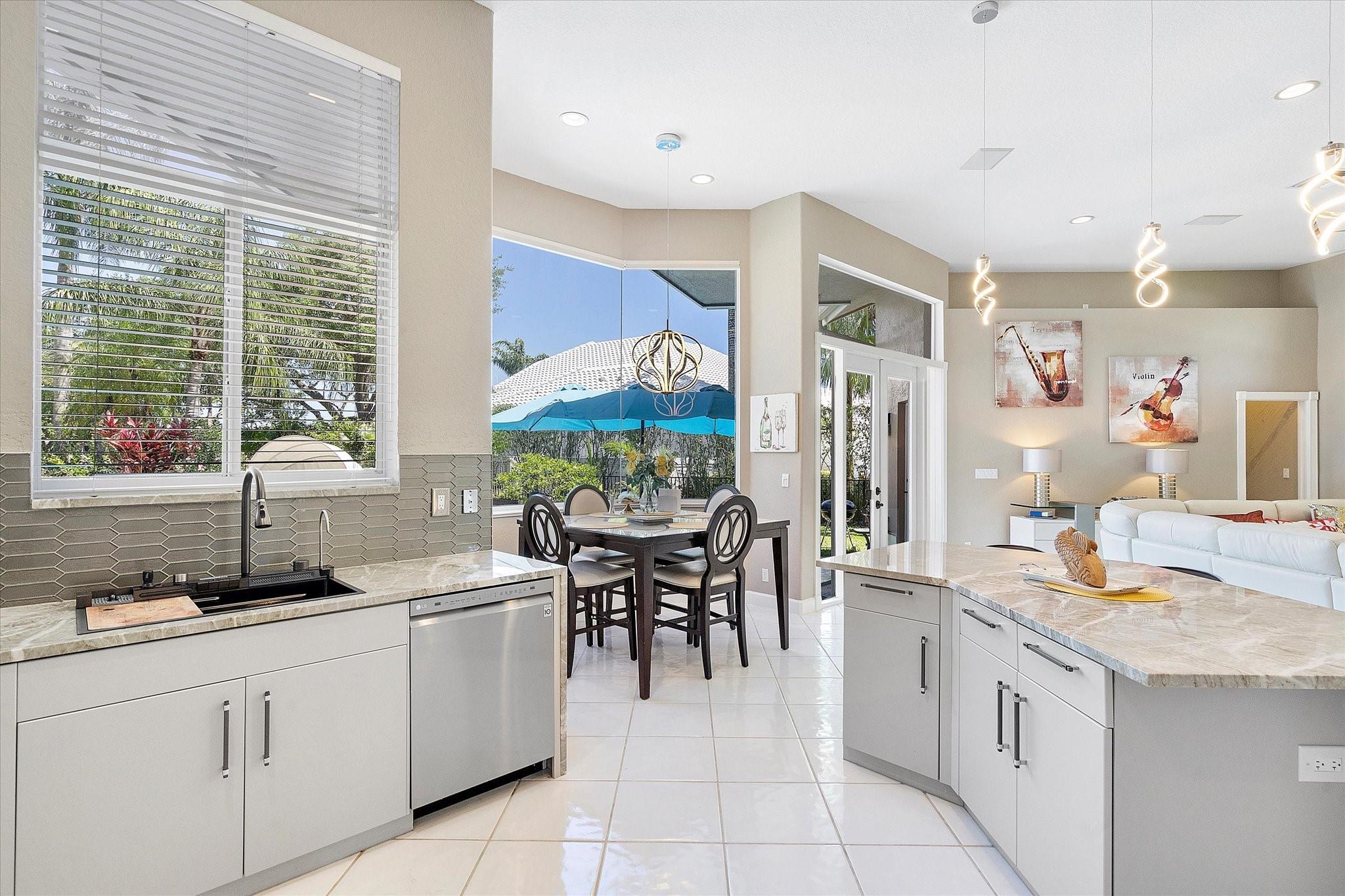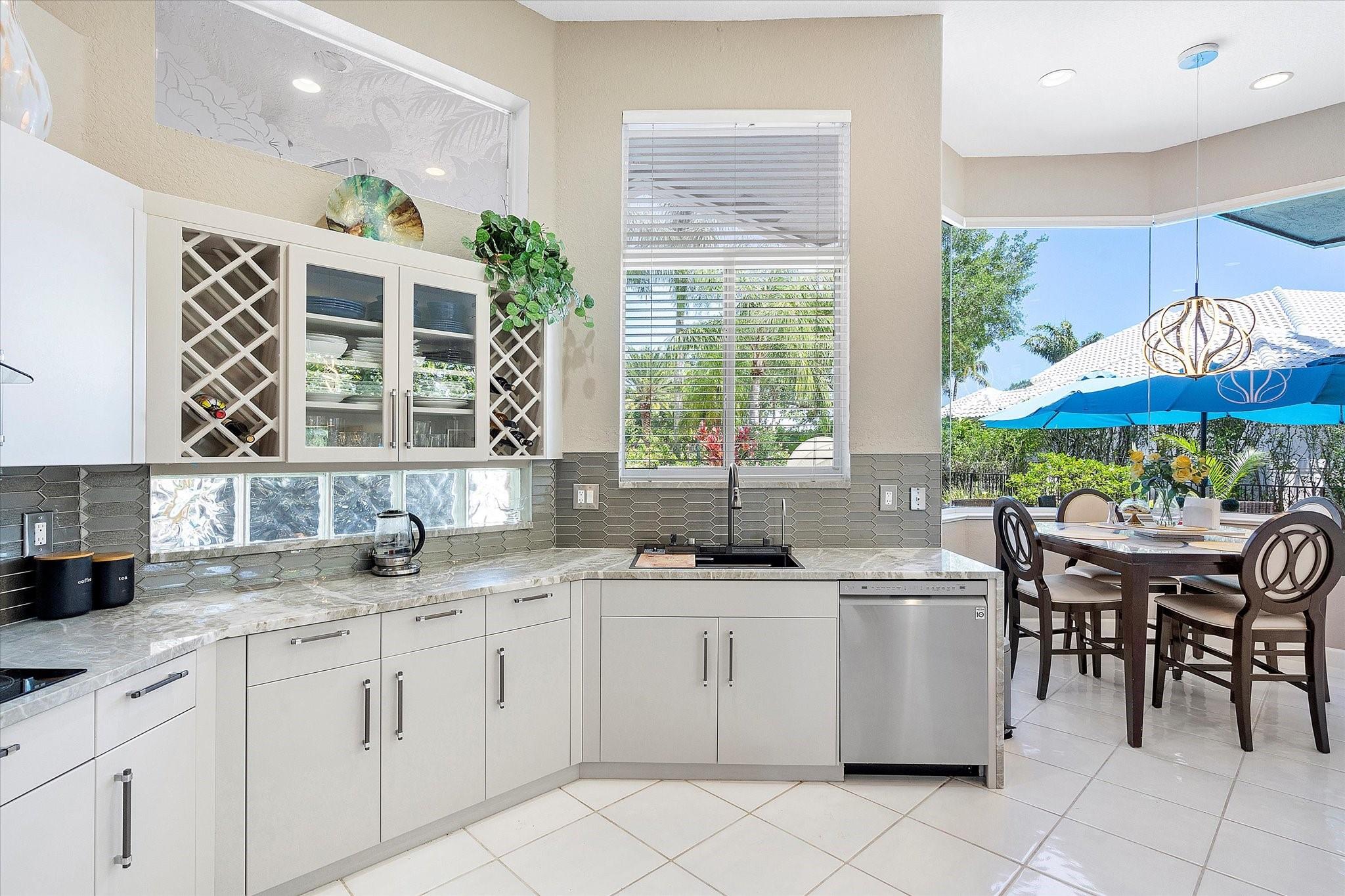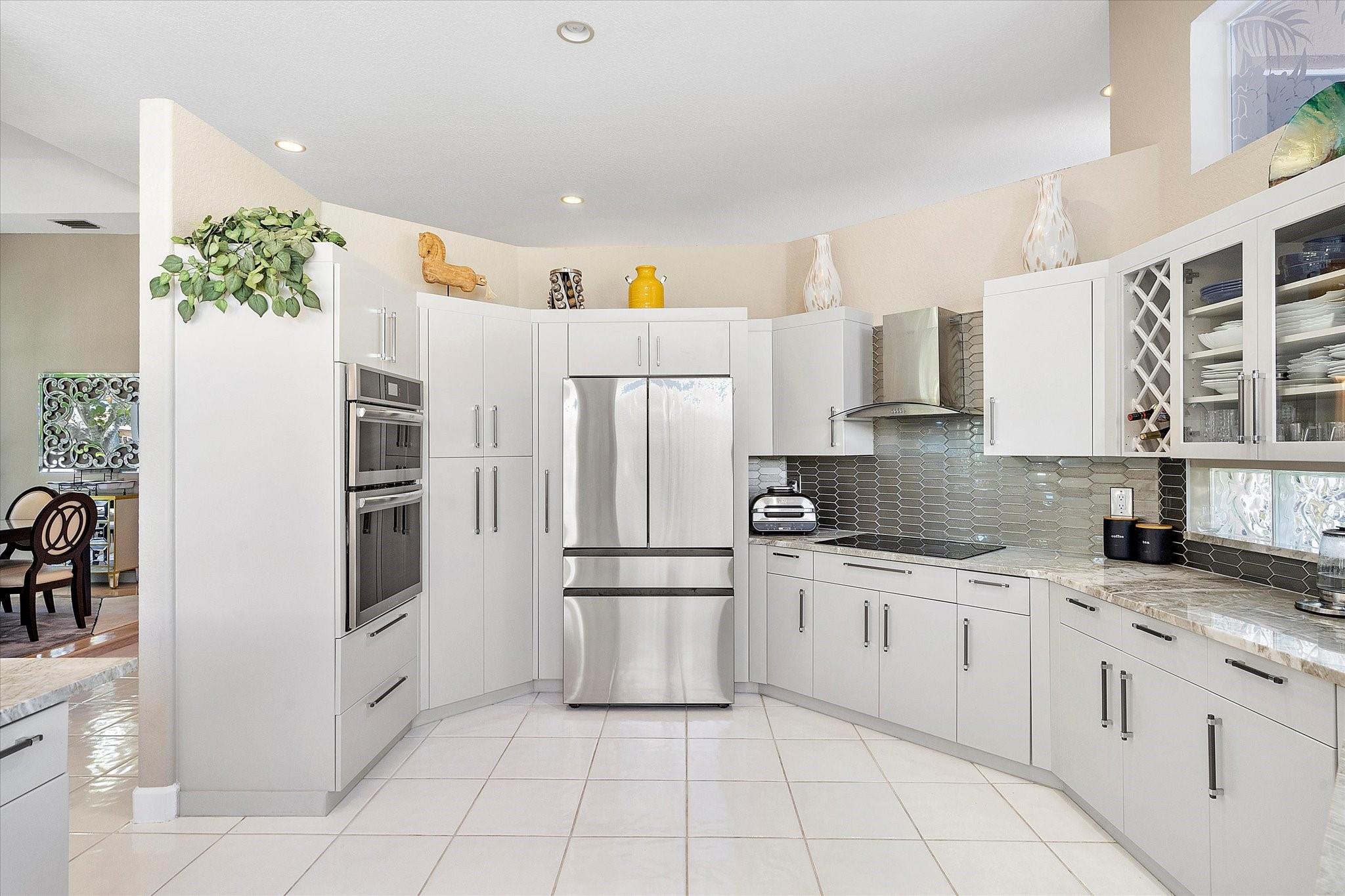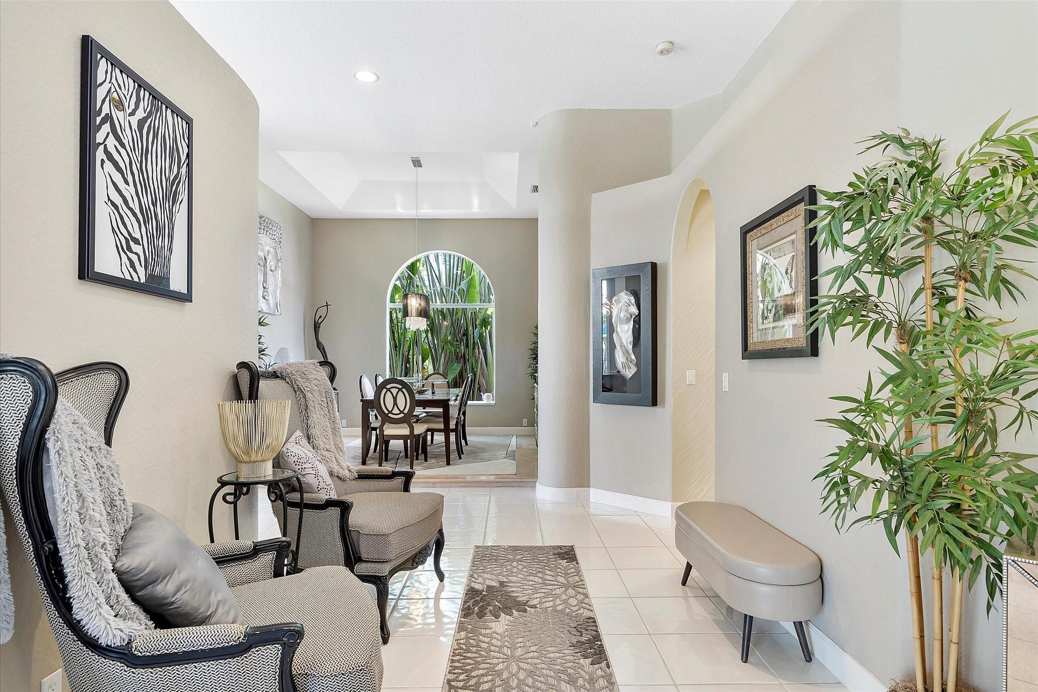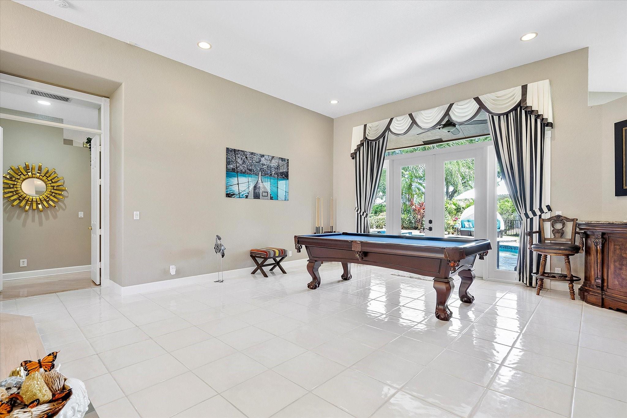 Exclusive, gated Greens of Eagle Trace dream home with amazing golf course views! This 5-bed, 4-bath residence sits on a prime oversized corner lot with a circular paver driveway and 3-car garage. Recent upgrades include a 2018 roof, 2 newer AC units, new hurricane-impact garage door and windows, new kitchen appliances, new pool heater, and updated bathrooms. Entertain in the spacious formal dining room or central living area. The luxurious primary wing offers dual walk-in closets and a spa-like ensuite with marble tile, walk-in shower, soaker tub, and dual vanities. Enjoy volume ceilings, ceramic tile, a cozy family room fireplace, and a private backyard oasis with a remodeled pool, infinity edge, spa, travertine pavers, cabana bath, summer kitchen, and serene golf course views.