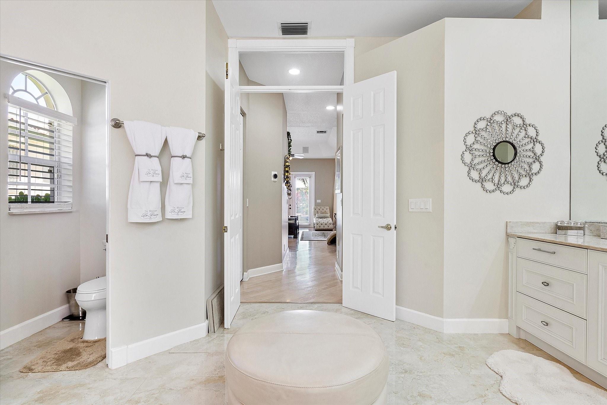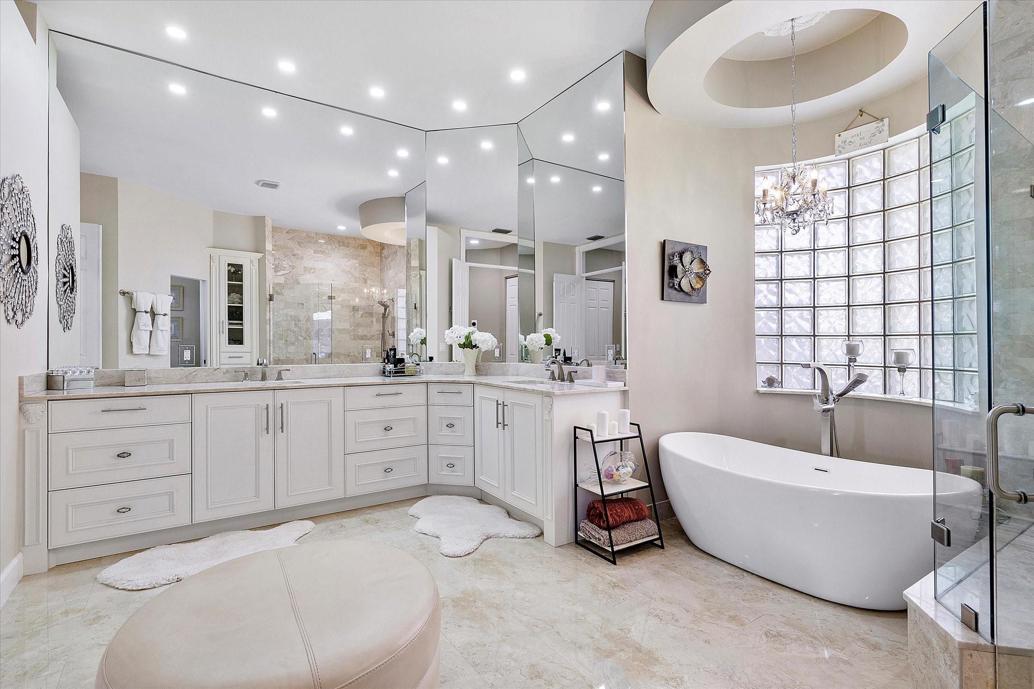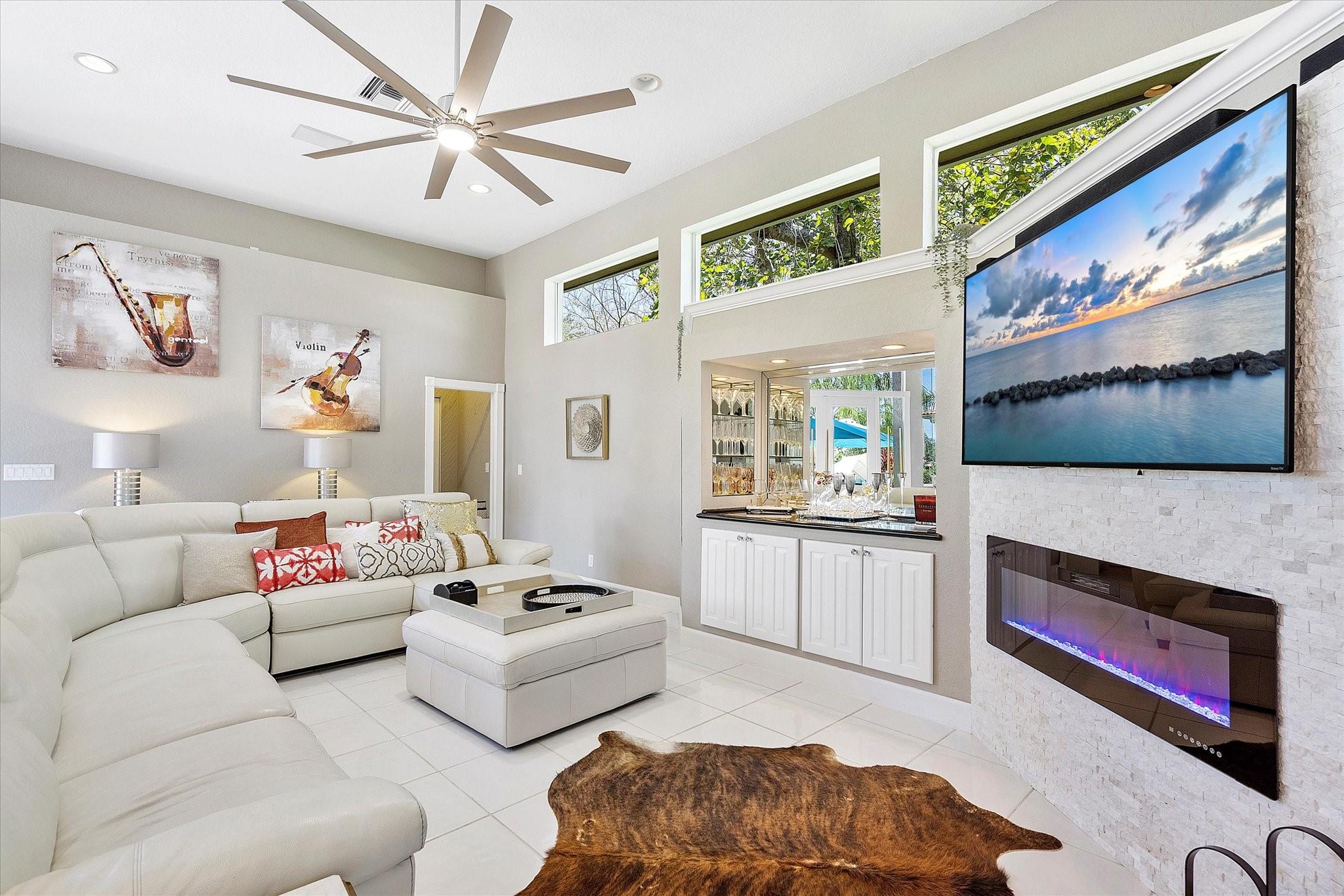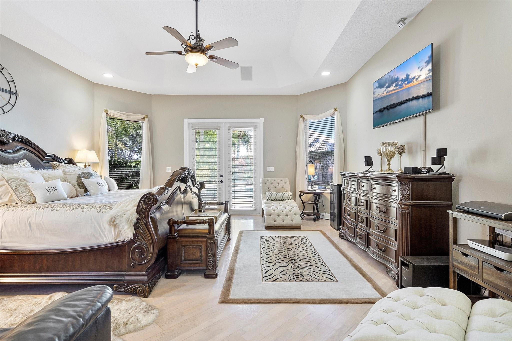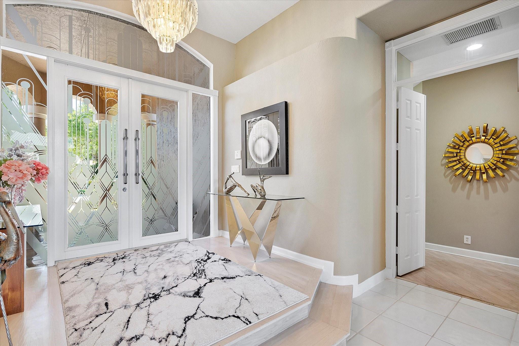 Exclusive, gated Greens of Eagle Trace dream home with amazing golf course views! This 5-bed, 4-bath residence sits on a prime oversized corner lot with a circular paver driveway and 3-car garage. Recent upgrades include a 2018 roof, 2 newer AC units, new hurricane-impact garage door and windows, new kitchen appliances, new pool heater, and updated bathrooms. Entertain in the spacious formal dining room or central living area. The luxurious primary wing offers dual walk-in closets and a spa-like ensuite with marble tile, walk-in shower, soaker tub, and dual vanities. Enjoy volume ceilings, ceramic tile, a cozy family room fireplace, and a private backyard oasis with a remodeled pool, infinity edge, spa, travertine pavers, cabana bath, summer kitchen, and serene golf course views.