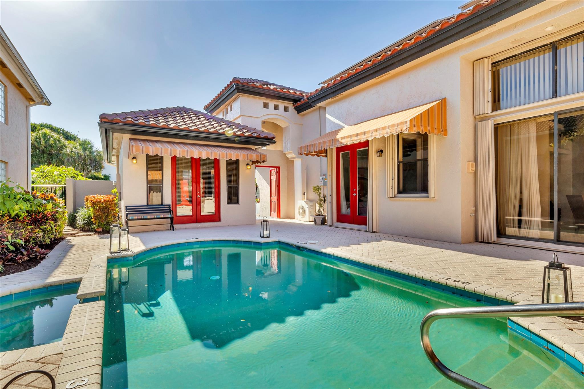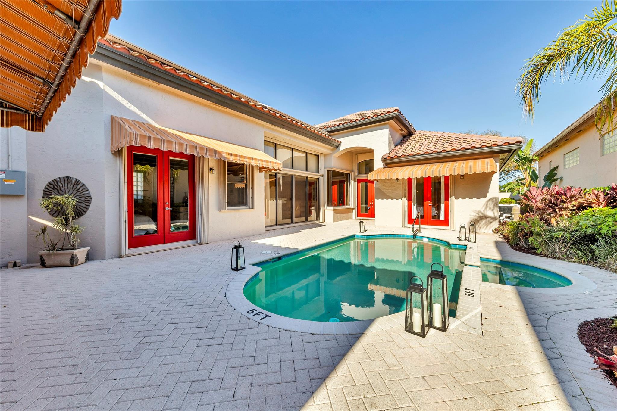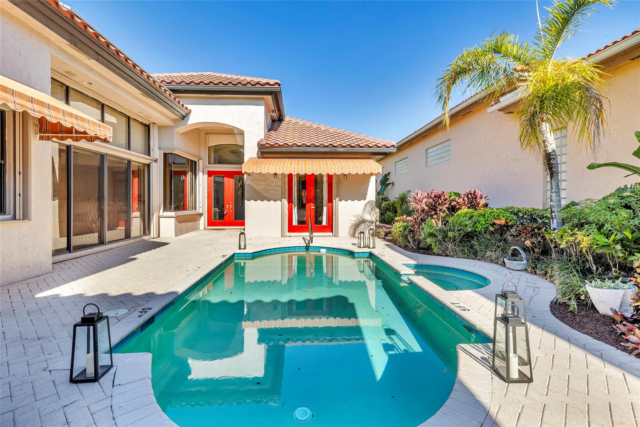 Discover timeless sophistication in this 3-bedroom, 3.5-bathroom courtyard estate with a private guest house, nestled within the prestigious, guard-gated El Dorado enclave of Boca Pointe. The main home features soaring volume ceilings, a formal dining room, family room, and lots of natural light streaming through this beautiful sanctuary. The guest house features a private 1-bedroom, bath and a kitchenette. The centerpiece of the home is a serene courtyard oasis, where a sparkling pool and spa invite relaxation and tranquility. Additional highlights include a 2018 roof enhanced with fully-owned solar panels for modern efficiency and peace of mind. This home provides the perfect blend of luxury, comfort, and security, just minutes from world-class dining, shopping, and entertainment.