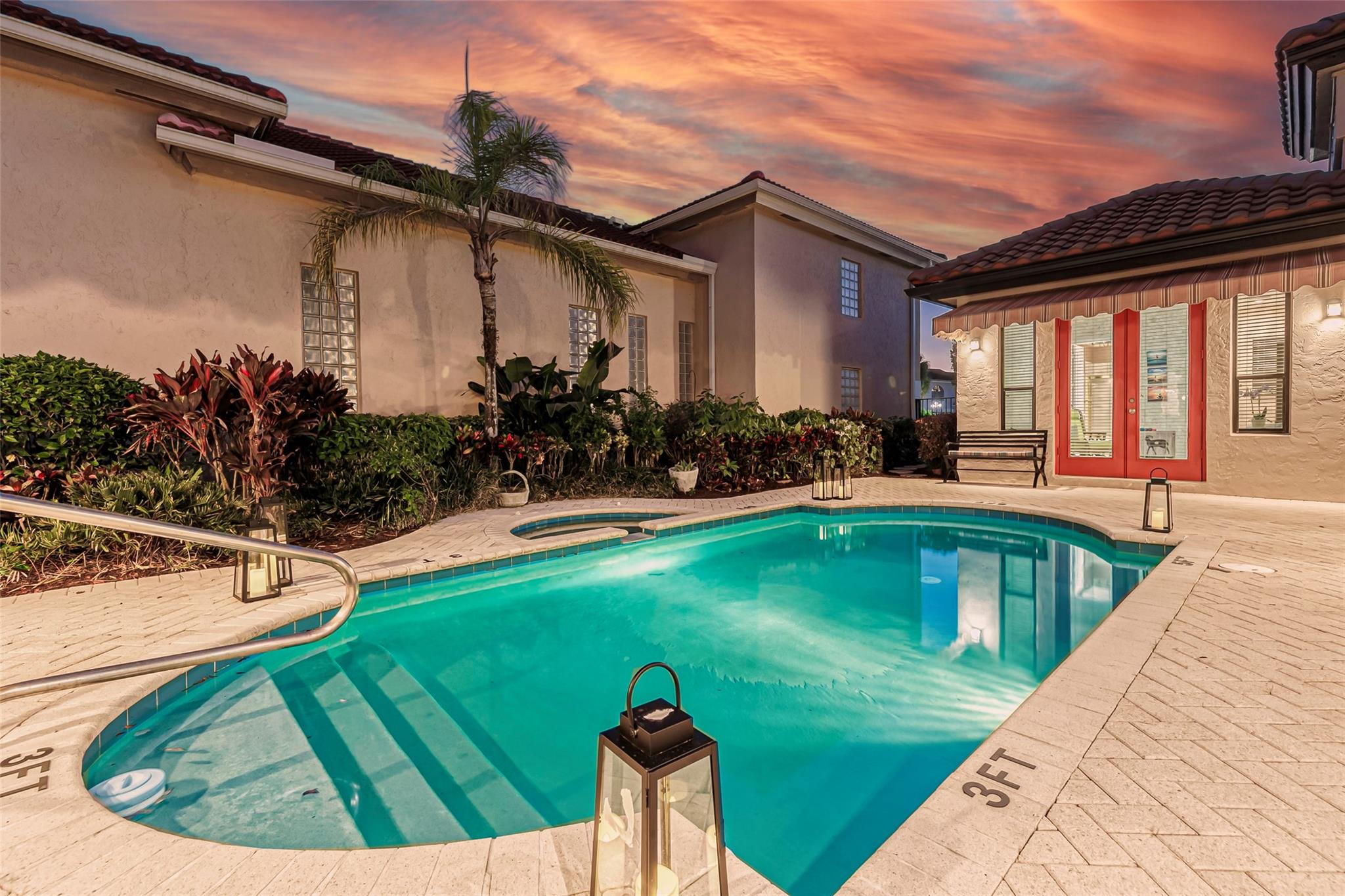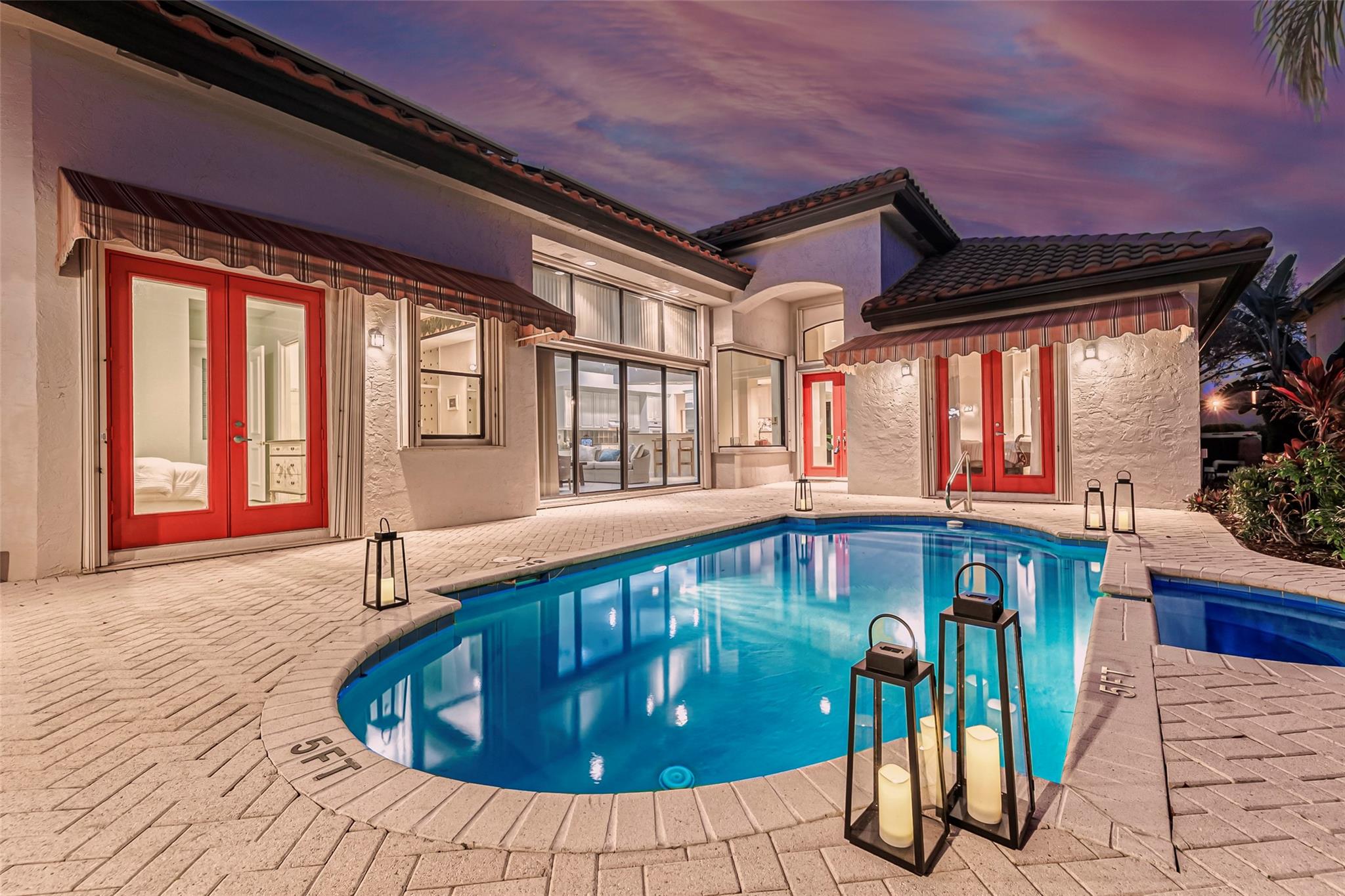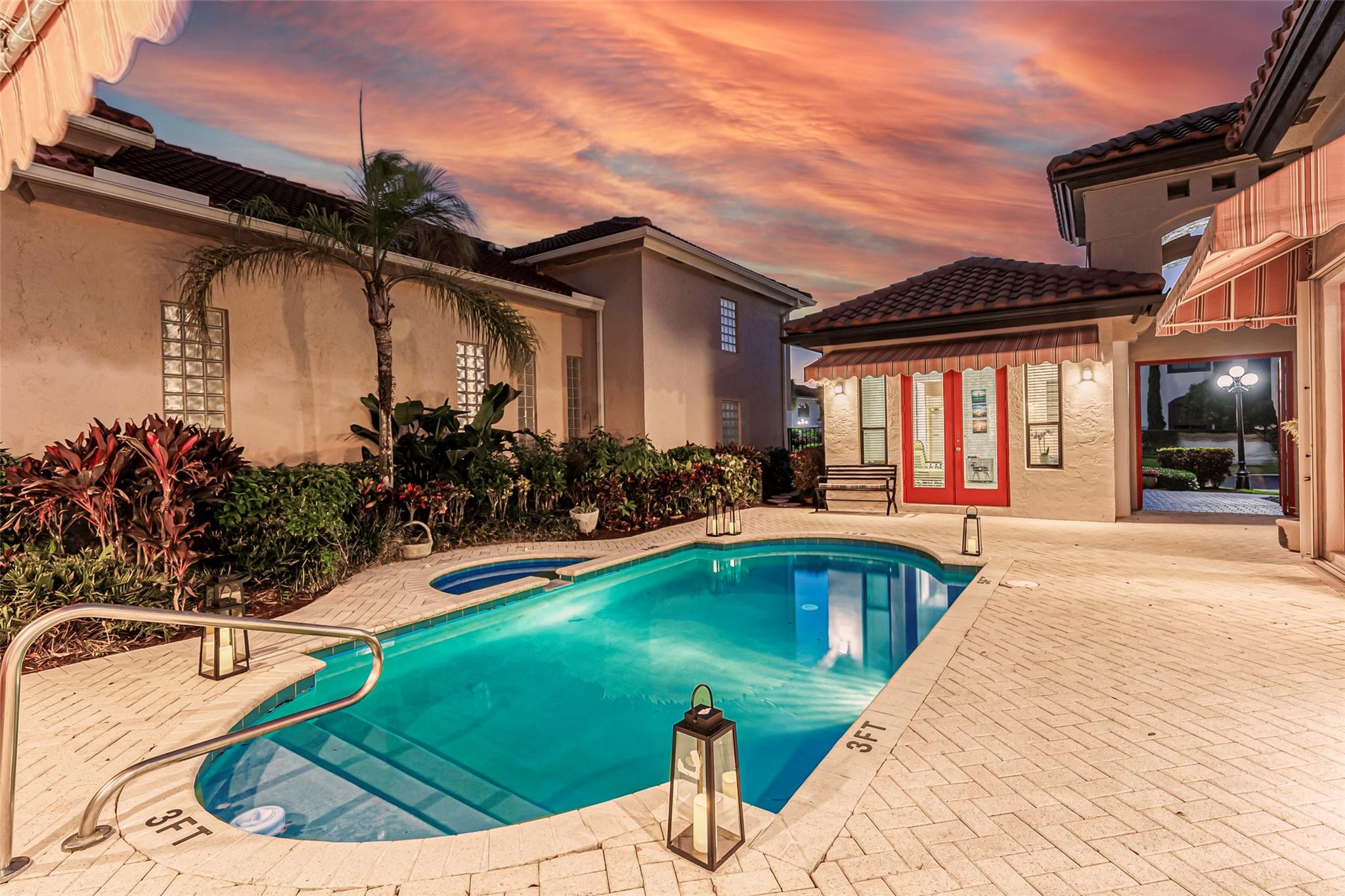 Discover timeless sophistication in this 3-bedroom, 3.5-bathroom courtyard estate with a private guest house, nestled within the prestigious, guard-gated El Dorado enclave of Boca Pointe. The main home features soaring volume ceilings, a formal dining room, family room, and lots of natural light streaming through this beautiful sanctuary. The guest house features a private 1-bedroom, bath and a kitchenette. The centerpiece of the home is a serene courtyard oasis, where a sparkling pool and spa invite relaxation and tranquility. Additional highlights include a 2018 roof enhanced with fully-owned solar panels for modern efficiency and peace of mind. This home provides the perfect blend of luxury, comfort, and security, just minutes from world-class dining, shopping, and entertainment.