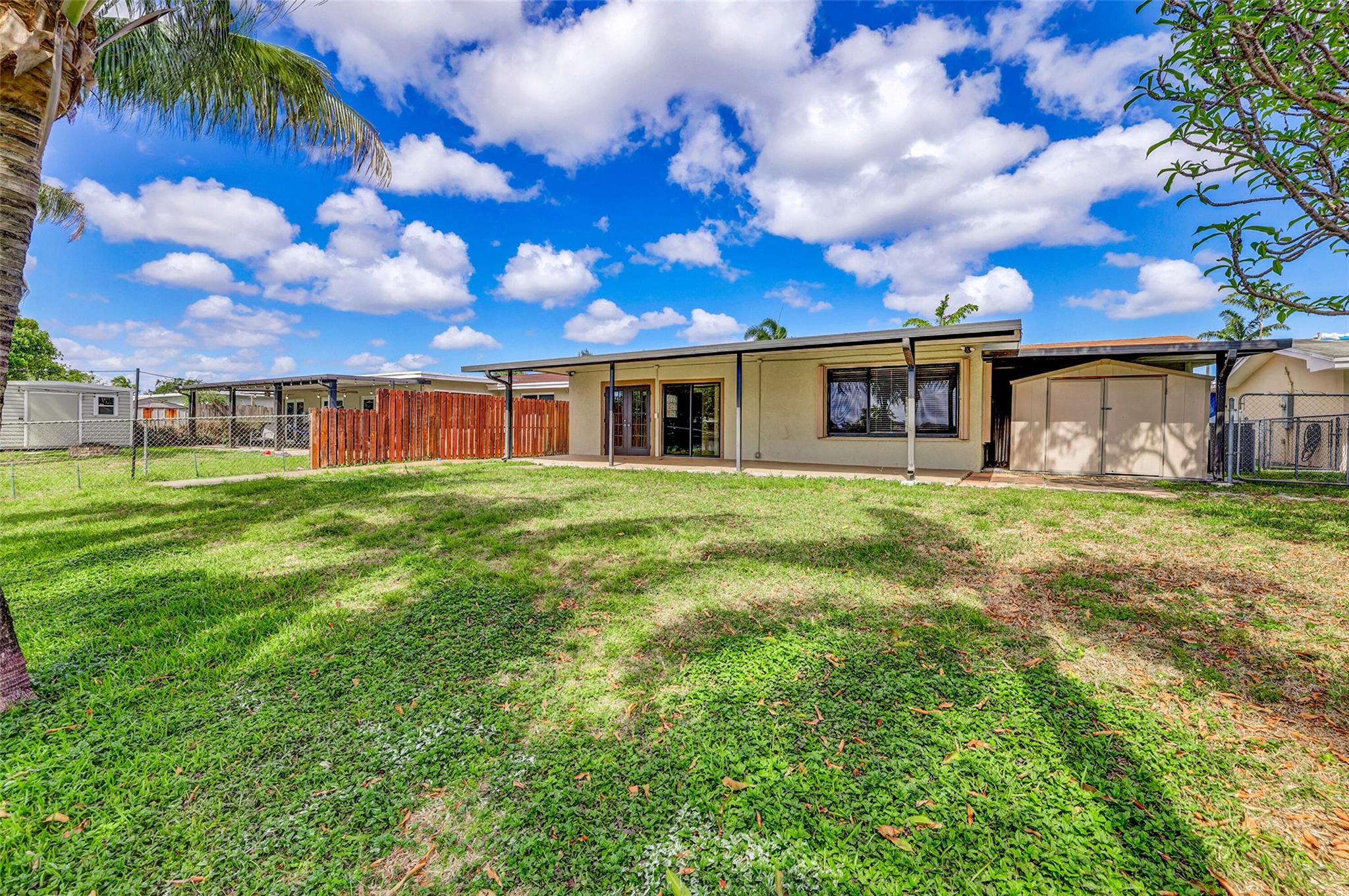This charming 2 bed, 2 bath Lake Front home offers serene water views and easy living. Freshly painted throughout, it features a large kitchen with lake views, a spacious living area, and an oversized covered patio perfect for relaxing or entertaining. Impact windows and doors, a 2022 roof, and a newer A/C add peace of mind. The converted garage provides flexible living space (easily coverts back to garage if you prefer it as a garage / door still in place and functioning) and a circular driveway adds convenience. Bonus outdoor storage shed included! Paddle out on the lake for those gorgeous sunsets! Ideally located near shopping, casinos, I-95, and the Turnpike—this one checks all the boxes!