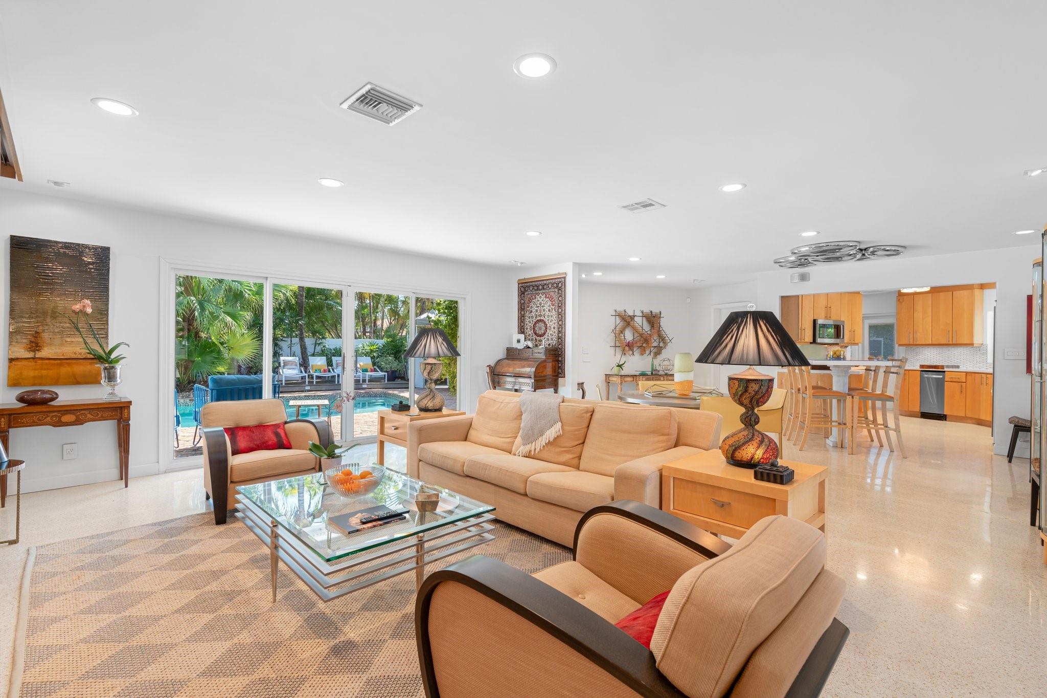 Lowest Priced Waterfront Property In Coral Ridge w/ No Fixed Bridges To The Ocean & Very Private Pool In A Lush Tropical Setting. A 3 Bed, 2 1/2 Bath, 2-Car Garage Home w/ Gorgeous Restored Terrazzo Floors, Hi-End Appliances, Beautiful Countertops & Backsplashes Adorn The Very Cool Mid-Century Kitchen, w/ Coffee Station, Pantry & Lunch Bar. The Floor Plan Has The Flow Of A Modern, Open Plan w/ Defined Spaces For Dining, Entertaining, Home Office/Den, Wet Bar/Media Room w/ 2-Sided Fireplace, & VAULTED CEILINGS! Plus 600sf Covered Outdoor Space. Dock w/ Power, Water, 12,000 lb Boat Lift. Separate Irrigation Meter, Separate Garage Mini-Split A/C, New Roof 2020, New A/C 2022, New Ducts In 2024. This Home Is Move In Condition For Your Most Particular & Interesting Clients.
