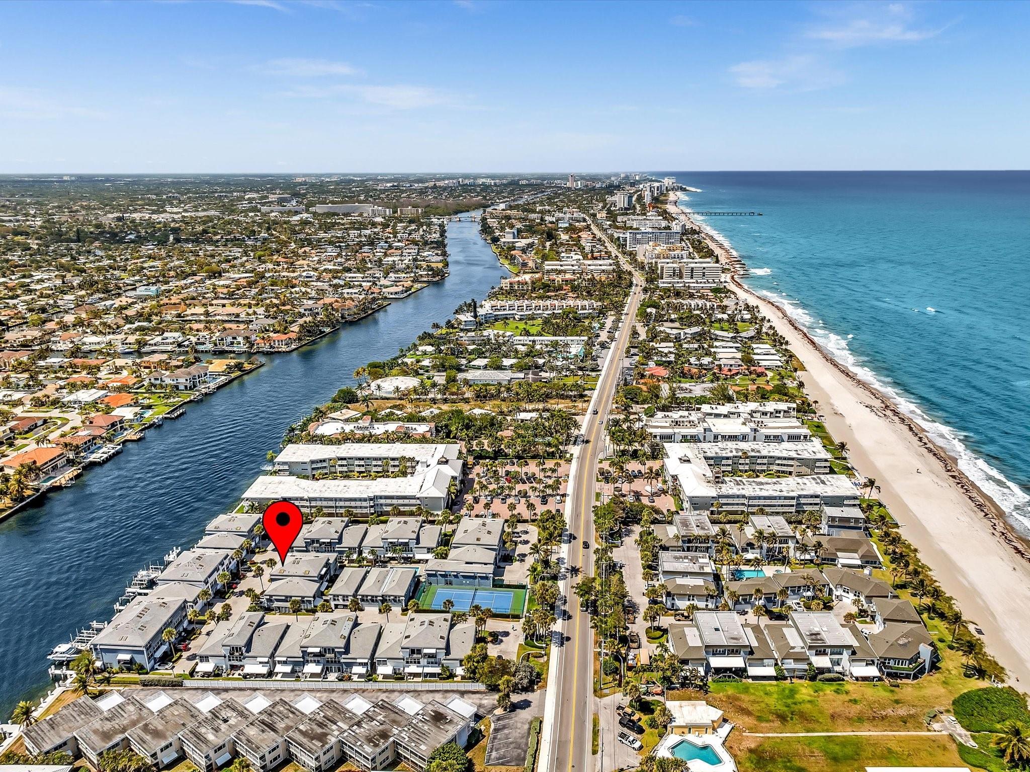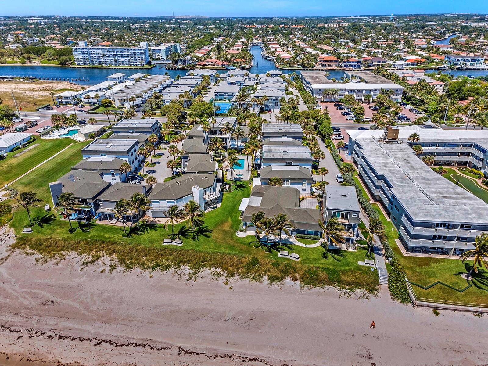 Located on the exclusive Hillsboro Mile, this beautifully upgraded 3 bed, 3.5 bath Townhouse Villa offers the ultimate in luxury coastal living. Enjoy 300 feet of both deeded beach & intracoastal access! Private entry through a smart garage with customized storage, wet bar for entertaining, & custom Murphy bed for guest privacy. Host in style on the enlarged covered patio, or take the private elevator to the 2nd floor featuring high ceilings, upgraded kitchen with stainless appliances, granite countertops, cozy breakfast nook, formal dining & spacious family room. 3rd floor bedrooms boast luxurious en-suite baths/custom closets and skylights. Upgraded floors, crown molding, & LED lighting add elegance throughout. This is oceanfront living on the most prestigious strip in South Florida!