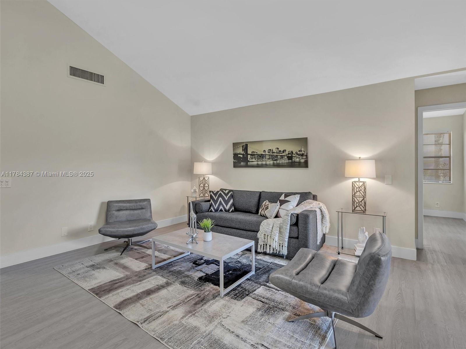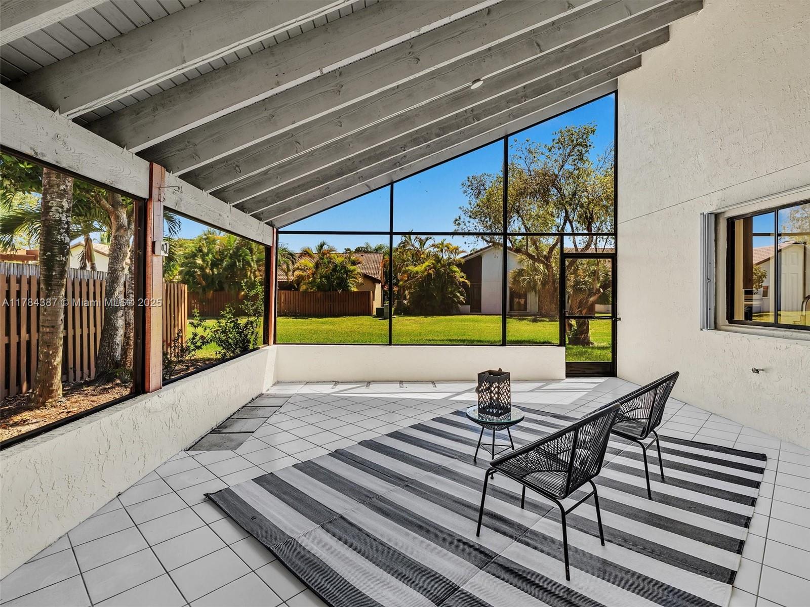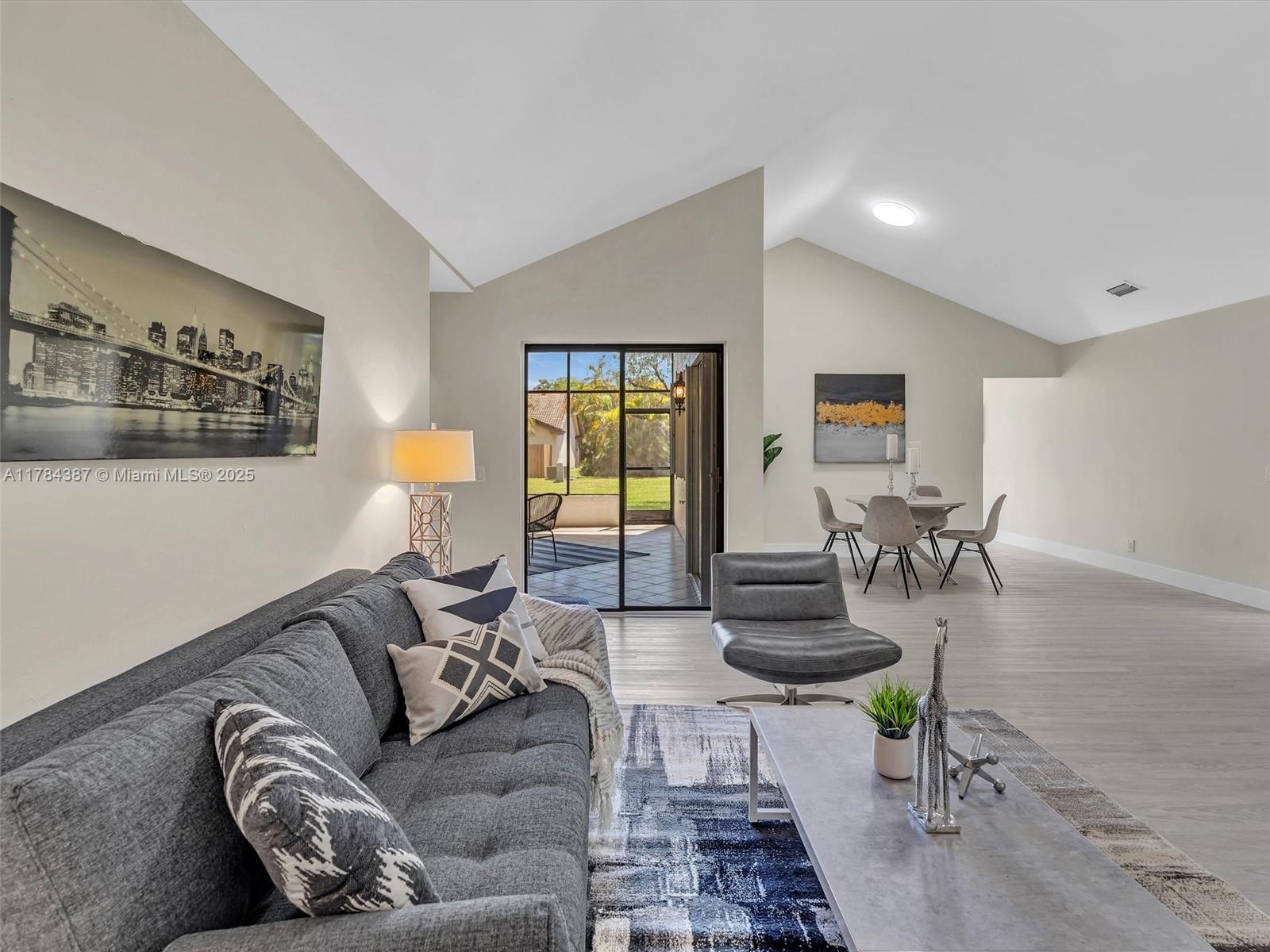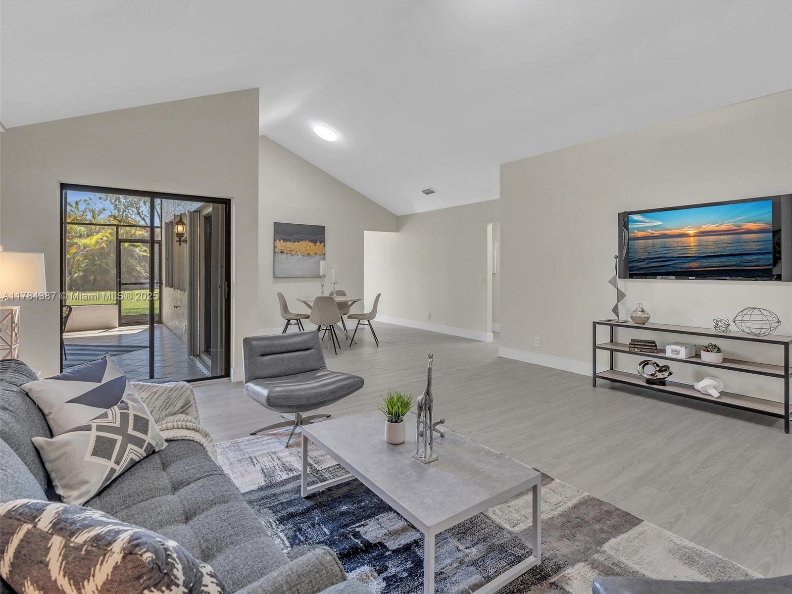 Exceptional value for this tastefully and stylishly updated 3 bed/2 bath home w/2-car garage, tucked away on a quiet cul-de-sac street. Enjoy year-round outdoor living on spacious covered and screened patio overlooking lush green space, perfect for relaxing or entertaining. Step inside to bright and airy great room featuring vaulted ceilings that enhance the open, inviting feel. The eat-in kitchen showcases brand-new custom cabinetry, sleek quartz countertops, ss appliances, cook top, wall oven, micro and fan hood. Other highlights include trendy bathrooms, brand new waterproof vinyl flooring throughout, updated lighting, fresh interior paint, and accordion shutters for easy storm protection. HOA covers lawn maintenance and watering. Zoned for top rated schools! Investor friendly!
