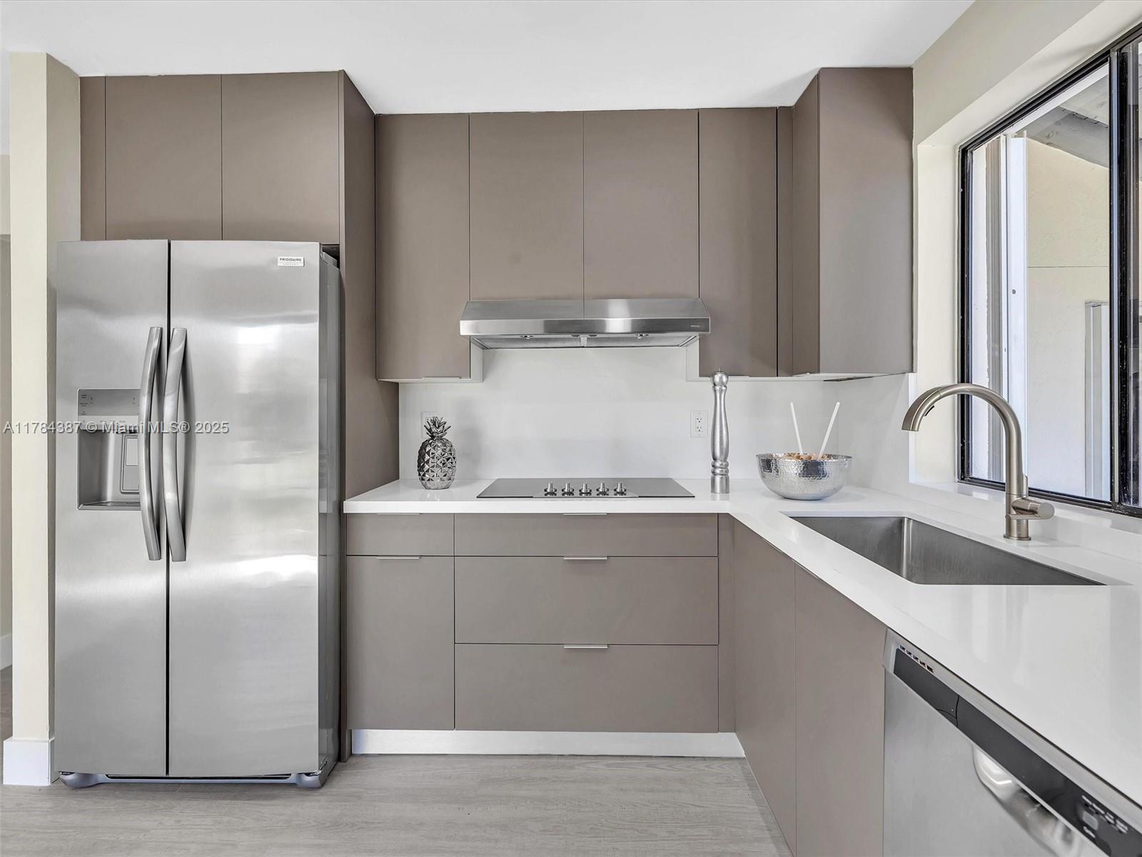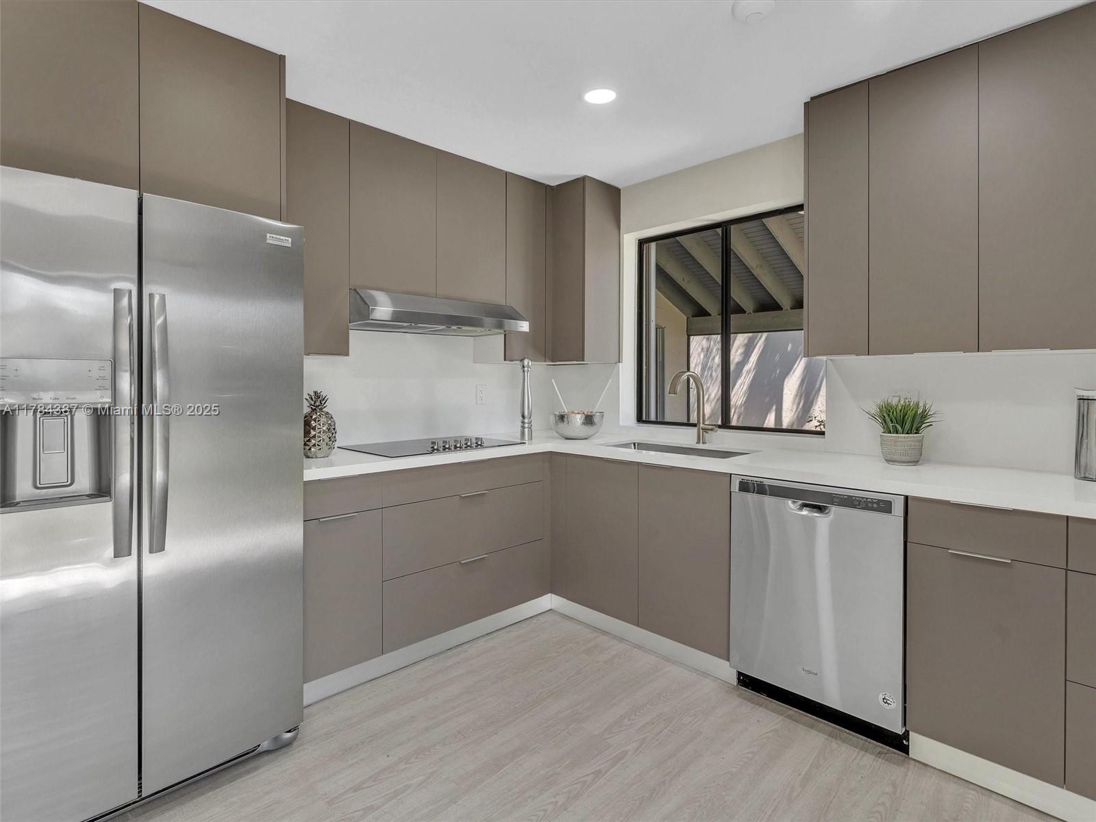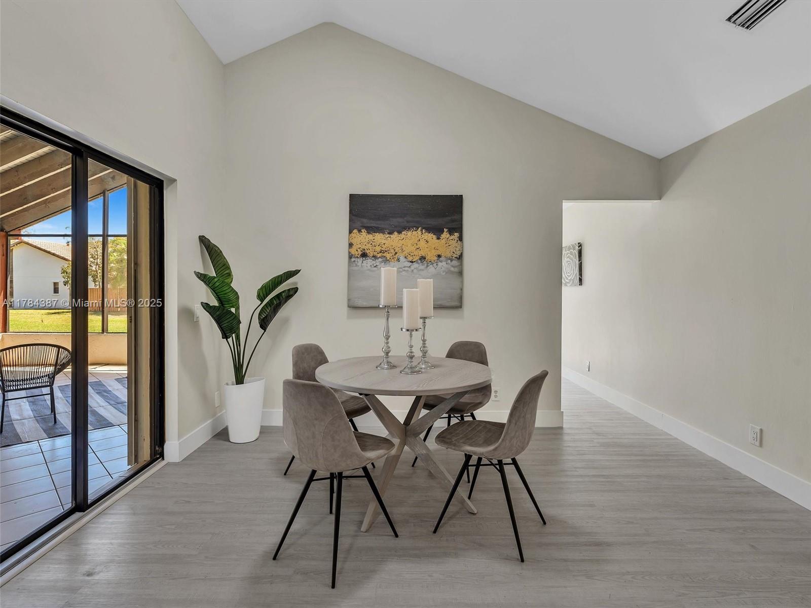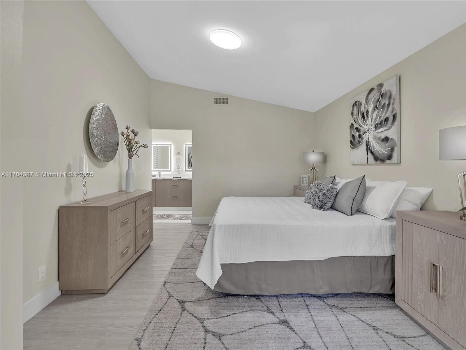 Exceptional value for this tastefully and stylishly updated 3 bed/2 bath home w/2-car garage, tucked away on a quiet cul-de-sac street. Enjoy year-round outdoor living on spacious covered and screened patio overlooking lush green space, perfect for relaxing or entertaining. Step inside to bright and airy great room featuring vaulted ceilings that enhance the open, inviting feel. The eat-in kitchen showcases brand-new custom cabinetry, sleek quartz countertops, ss appliances, cook top, wall oven, micro and fan hood. Other highlights include trendy bathrooms, brand new waterproof vinyl flooring throughout, updated lighting, fresh interior paint, and accordion shutters for easy storm protection. HOA covers lawn maintenance and watering. Zoned for top rated schools! Investor friendly!