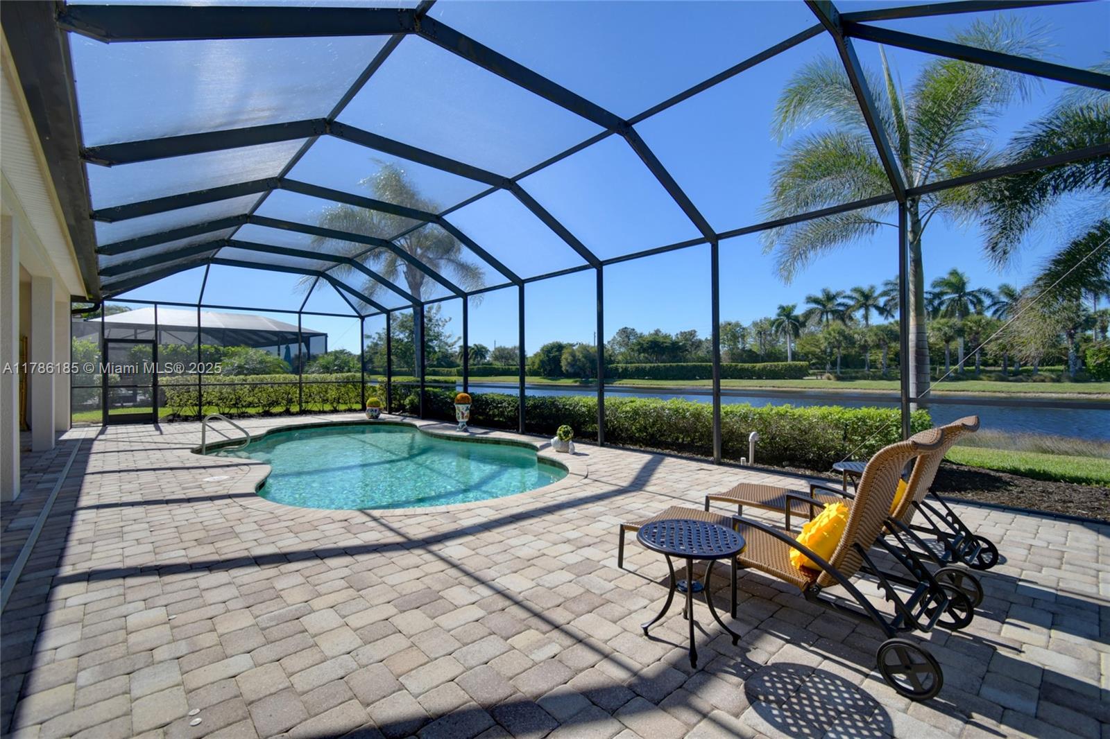 Upgrades galore! Kitchenaid appliances. Carrea marble countertops, hurricane impact windows throughout, custom cabinetry and a walk-in pantry. The great room is spacious thanks to the removal of the interior partition. Enjoy dinner on the oversized covered lanai by your solar heated saltwater pool and watch the sunset across the lake. The dramatic master suite opens to the lanai. The stunning wainscot dining room overlooks the newly landscaped garden. Upscale features include 12 ft. ceilings, tray ceilings, large crown molding, solid wood cabinetry, custom closet cabinetry in every closet, granite and wood floors with upgraded tiles, epoxy garage floor & extended garage. This is your dream home!