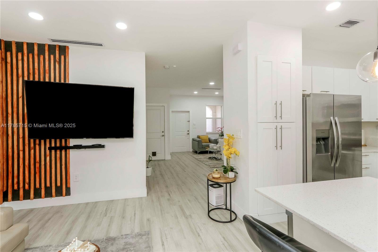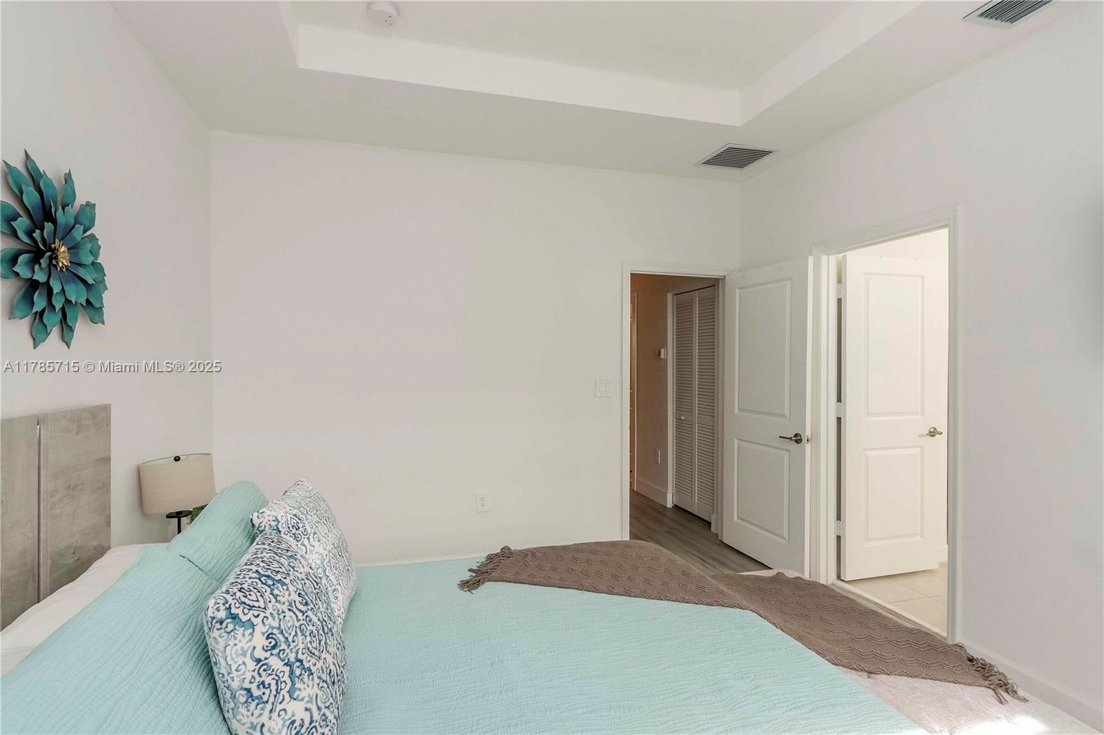 Welcome to this beautifully upgraded 3-bedroom, 2.5-bath townhome that truly sets itself apart! Step inside to find a bright, open floor plan filled with natural light and stylish modern finishes. The spacious kitchen features sleek quartz countertops, stainless steel appliances. One unique highlight is the thoughtfully converted portion of the garage—now a fully functional office with a closet, ideal for remote work, a guest room, or creative space. Upstairs, the primary suite offers tray ceilings, generous closet space, and a spa-like en-suite bathroom. Enjoy the perfect blend of comfort and functionality with elegant laminated flooring throughout, a private fenced patio for outdoor relaxation, and access to resort-style amenities.