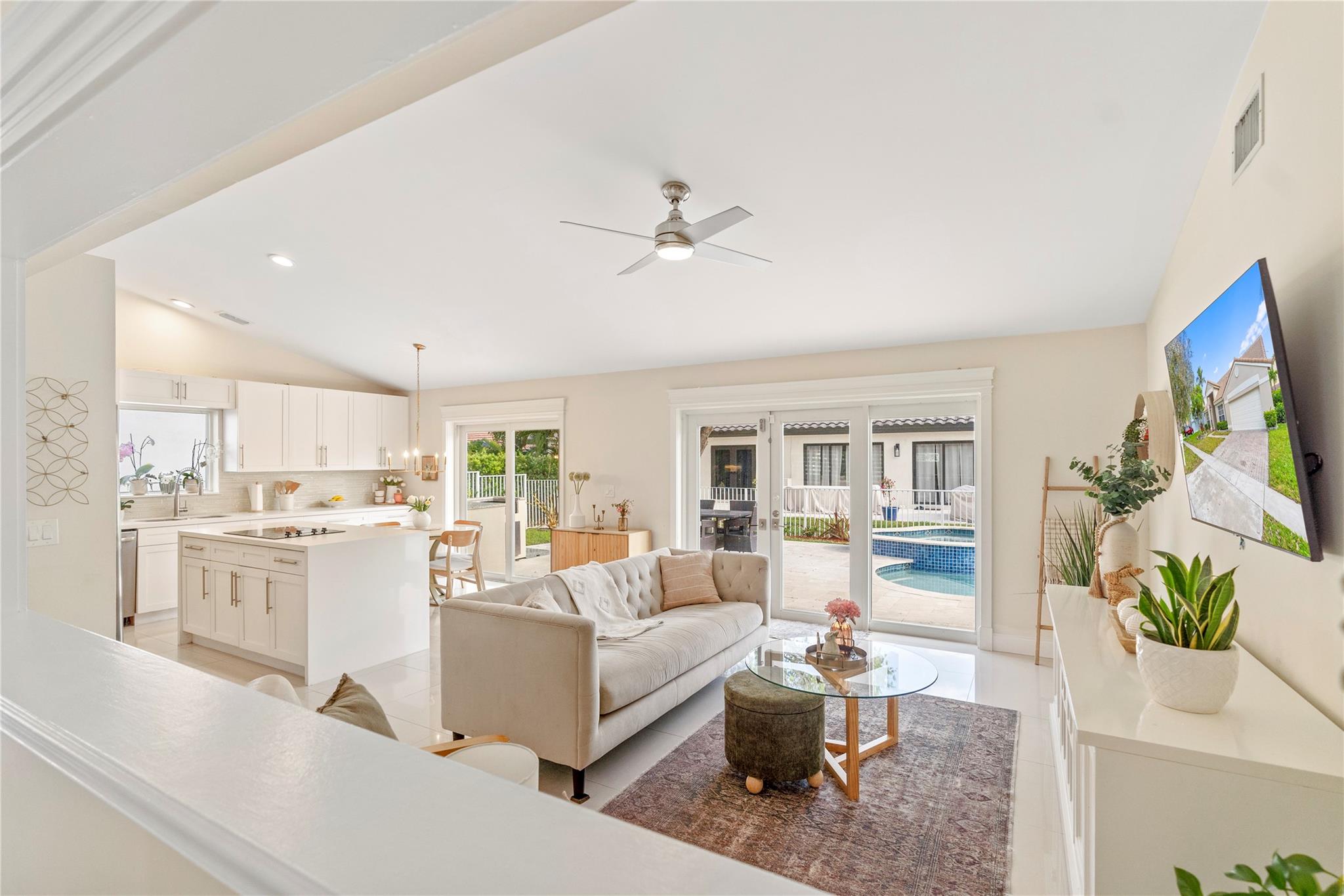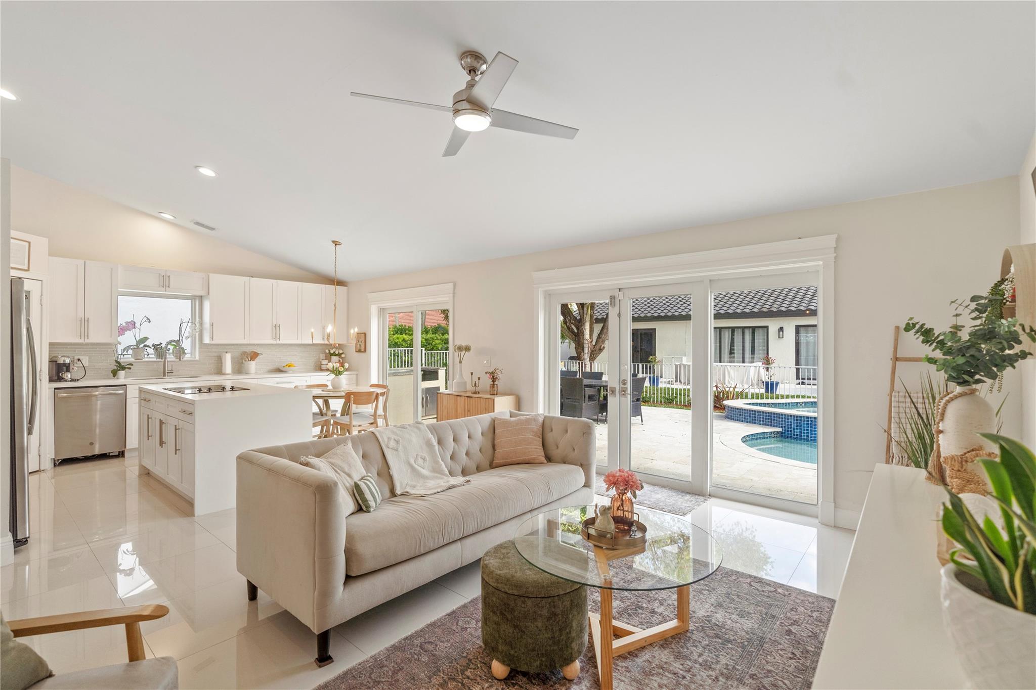 Completely remodeled one story house. New roof, impact windows,porcelain floors,new kitchen with wood cabinets, quartz countertops and SS appliances. new bathrooms, new water heater. Enjoy the backyard with travertine floors, pool with Jacuzzi