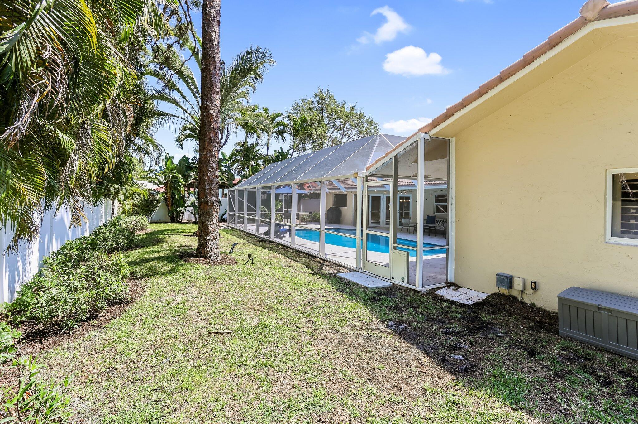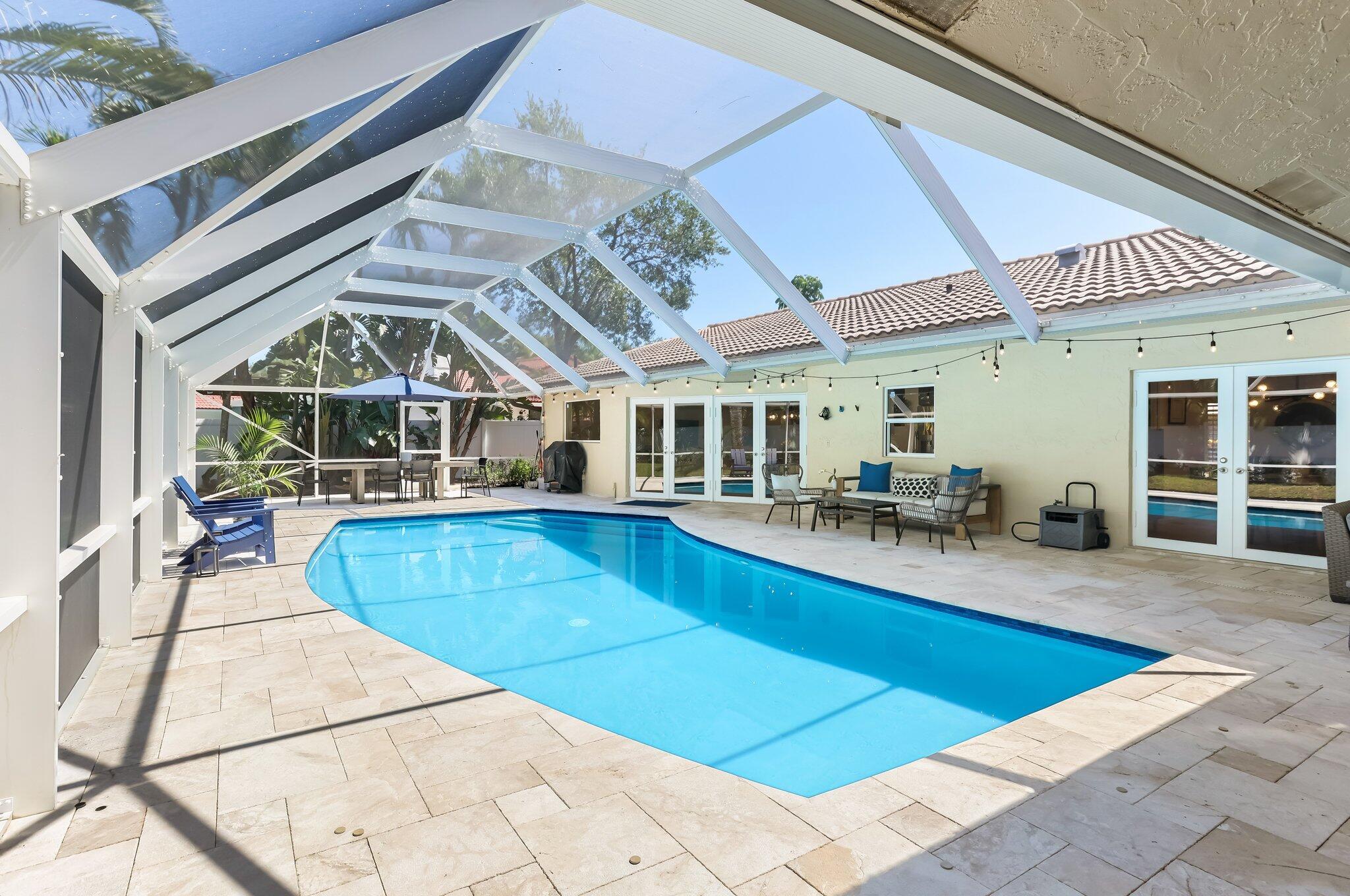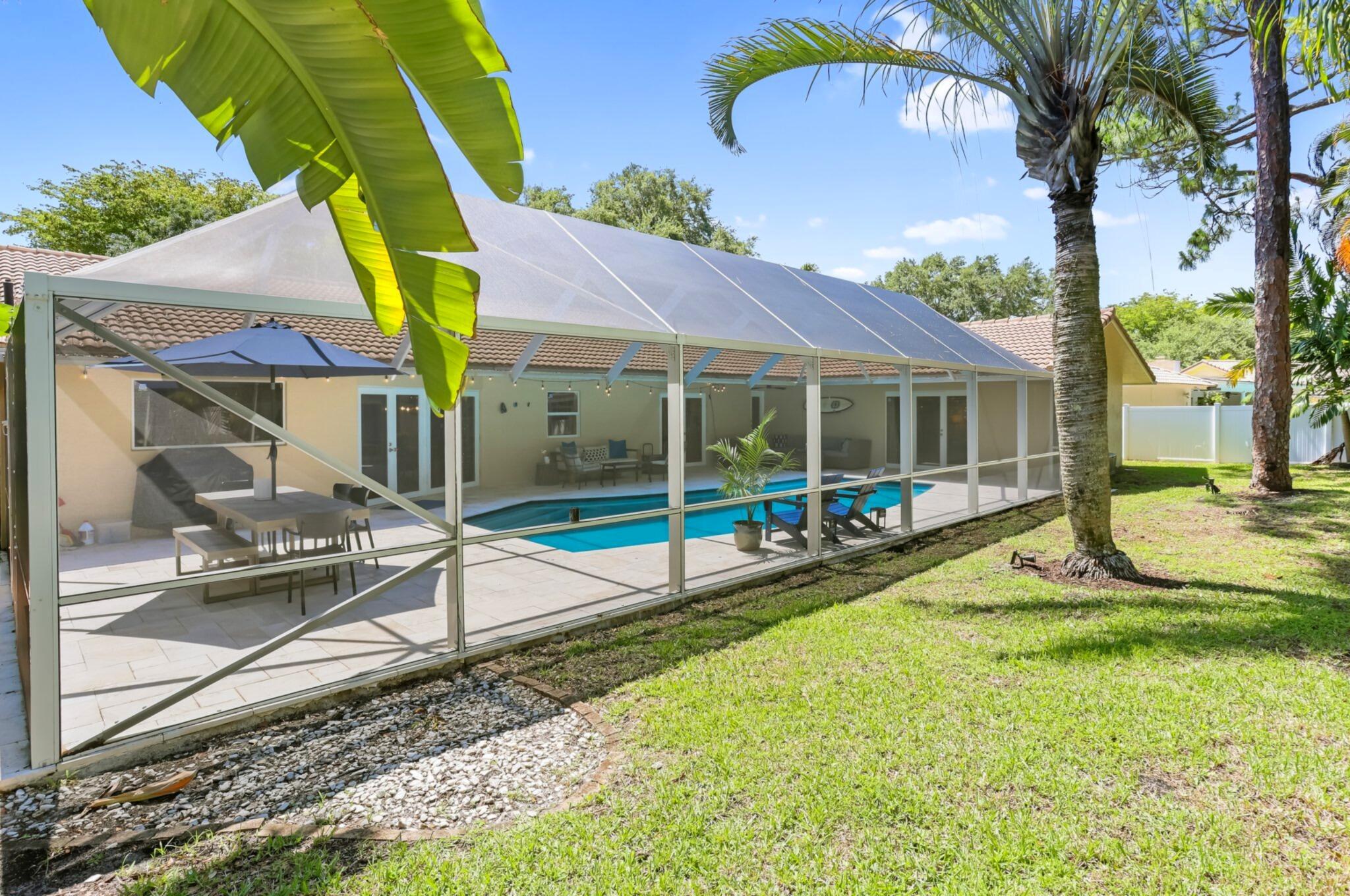 Located in the highly sought-after gated community of Estancia, this charming and meticulously maintained 4-bedroom, 2.5-bathroom home with a 2-car garage offers comfort, privacy, and a prime central Boca Raton location. Positioned on a quiet interior lot, the property offers added seclusion. Step inside to a freshly painted interior with new luxury vinyl flooring, refinished marble floors, LED lighting, plantation shutters, and built-in closets throughout. The expansive primary suite features a walk-in closet, additional closet space, dual vanity sinks, and a glass-enclosed shower. Enjoy outdoor living with a screen-enclosed marble patio, heated refinished pool w/ safety gate, and fenced yard. Impact windows and impact french doors, roof 2014, A/Cs 2020 & 2021, and hot water heaters 202