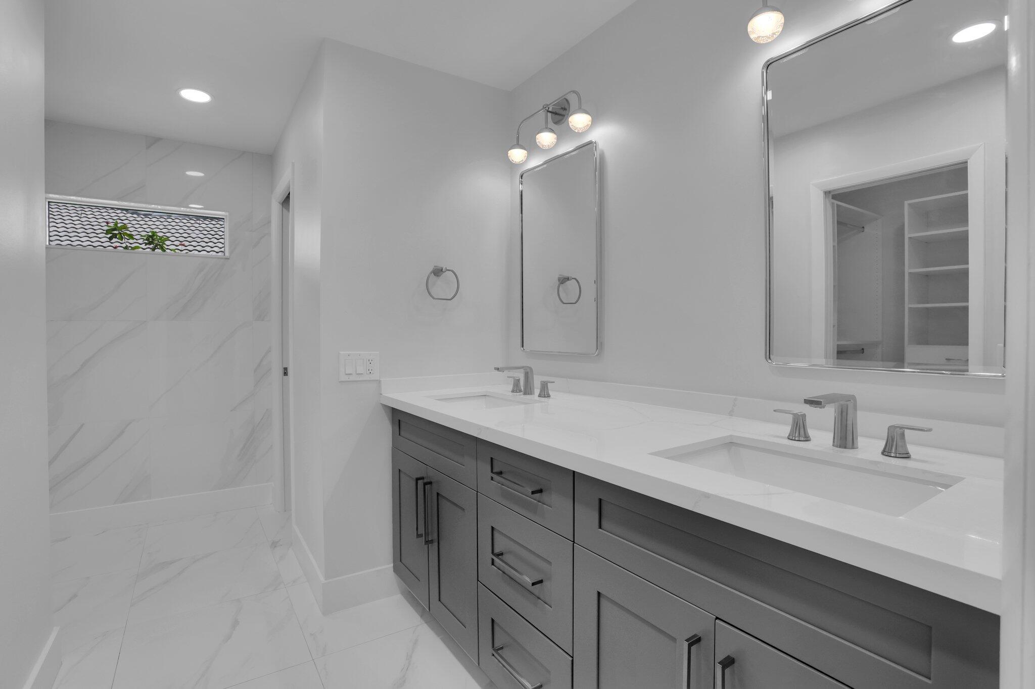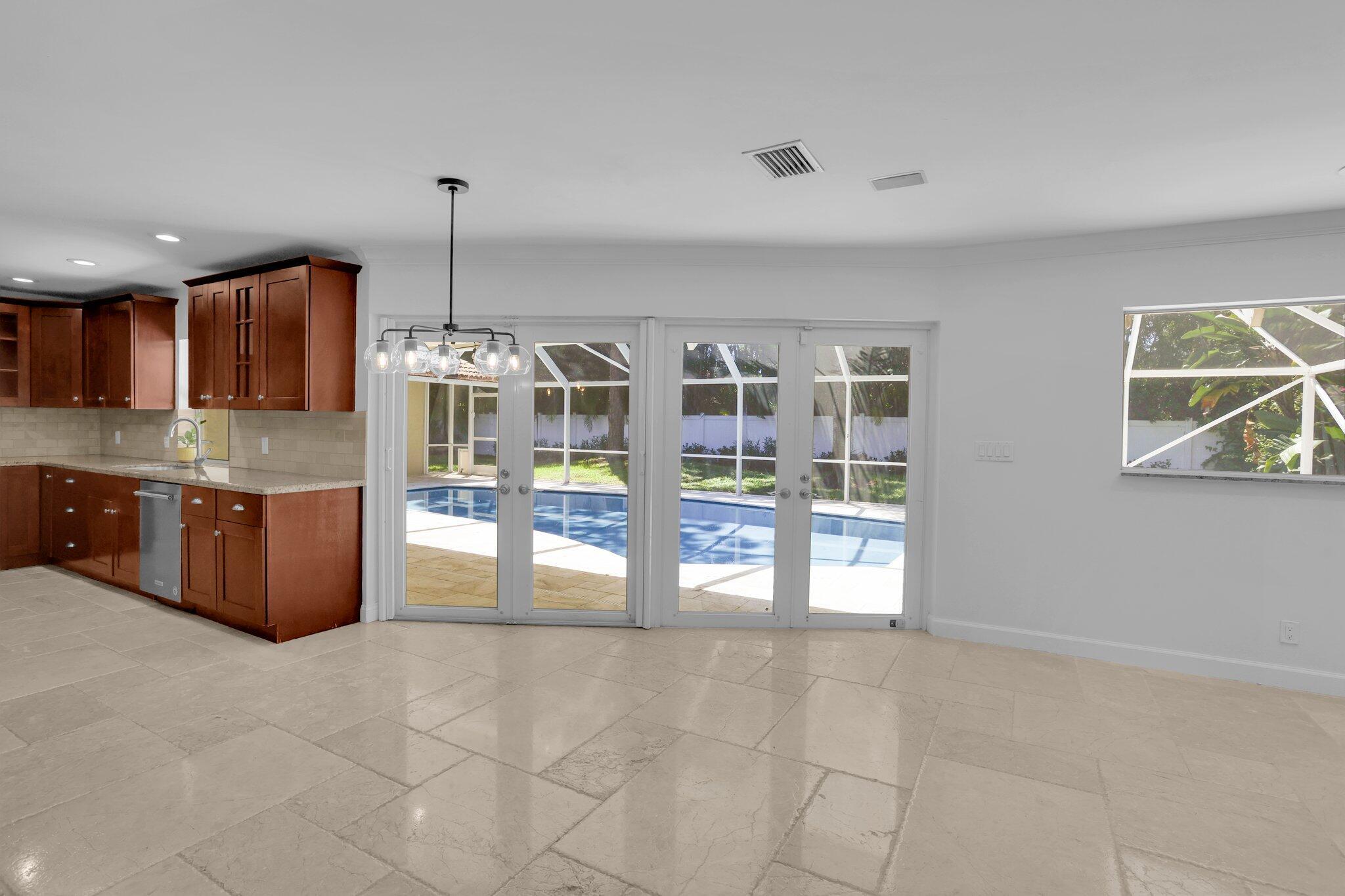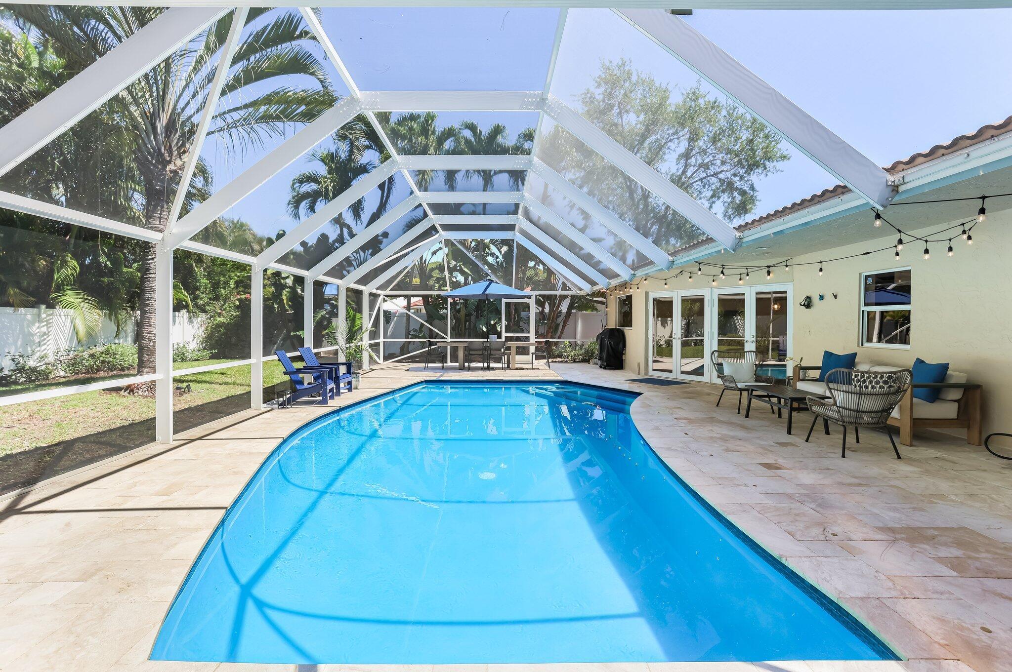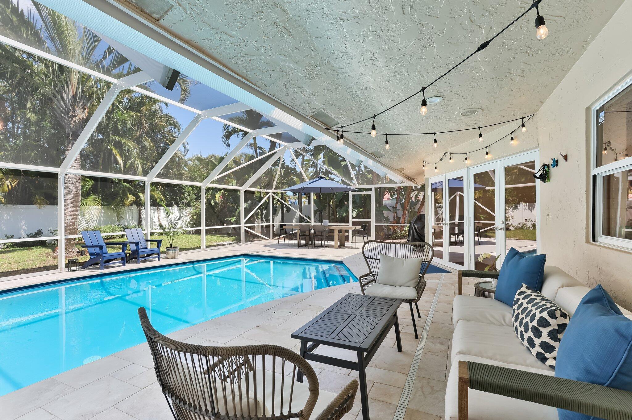 Located in the highly sought-after gated community of Estancia, this charming and meticulously maintained 4-bedroom, 2.5-bathroom home with a 2-car garage offers comfort, privacy, and a prime central Boca Raton location. Positioned on a quiet interior lot, the property offers added seclusion. Step inside to a freshly painted interior with new luxury vinyl flooring, refinished marble floors, LED lighting, plantation shutters, and built-in closets throughout. The expansive primary suite features a walk-in closet, additional closet space, dual vanity sinks, and a glass-enclosed shower. Enjoy outdoor living with a screen-enclosed marble patio, heated refinished pool w/ safety gate, and fenced yard. Impact windows and impact french doors, roof 2014, A/Cs 2020 & 2021, and hot water heaters 202