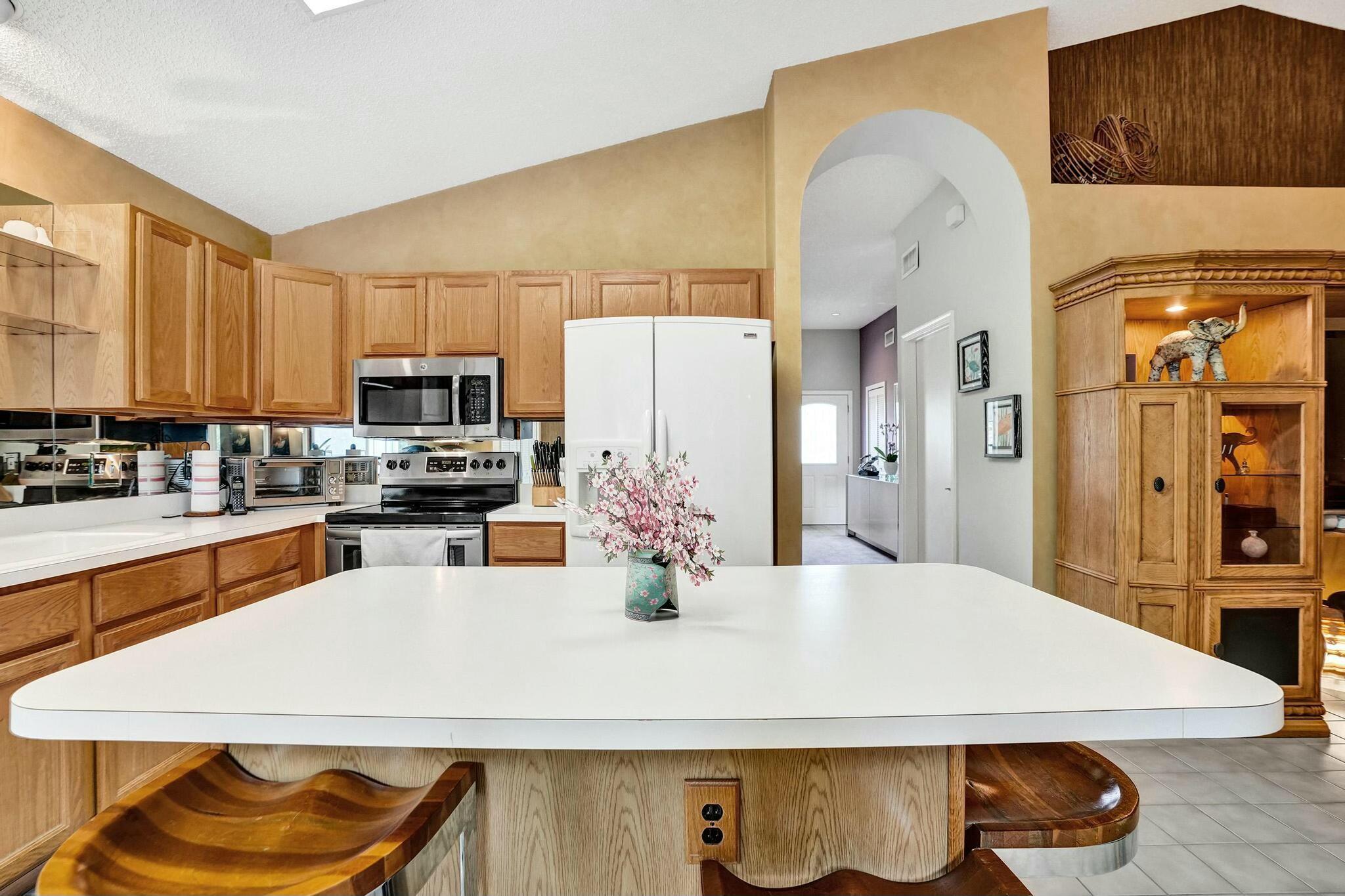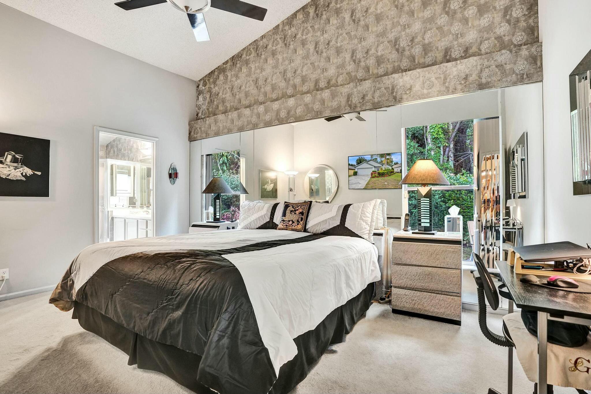 Lovingly maintained by its original owner, this spacious one-level home features soaring ceilings and a lush backyard oasis. Enjoy open living areas, a generous family room, and an oversized owner's suite filled with light. The boutique yard is perfect for relaxing or entertaining--complete with a patio, BBQ zone, and night-blooming jasmine. Located in a peaceful community with gated entry, pool, sidewalks, playground, picnic area & park--all just steps away. The custom stone driveway adds curb appeal, and the roof has been professionally maintained. Ready for your personal touch!