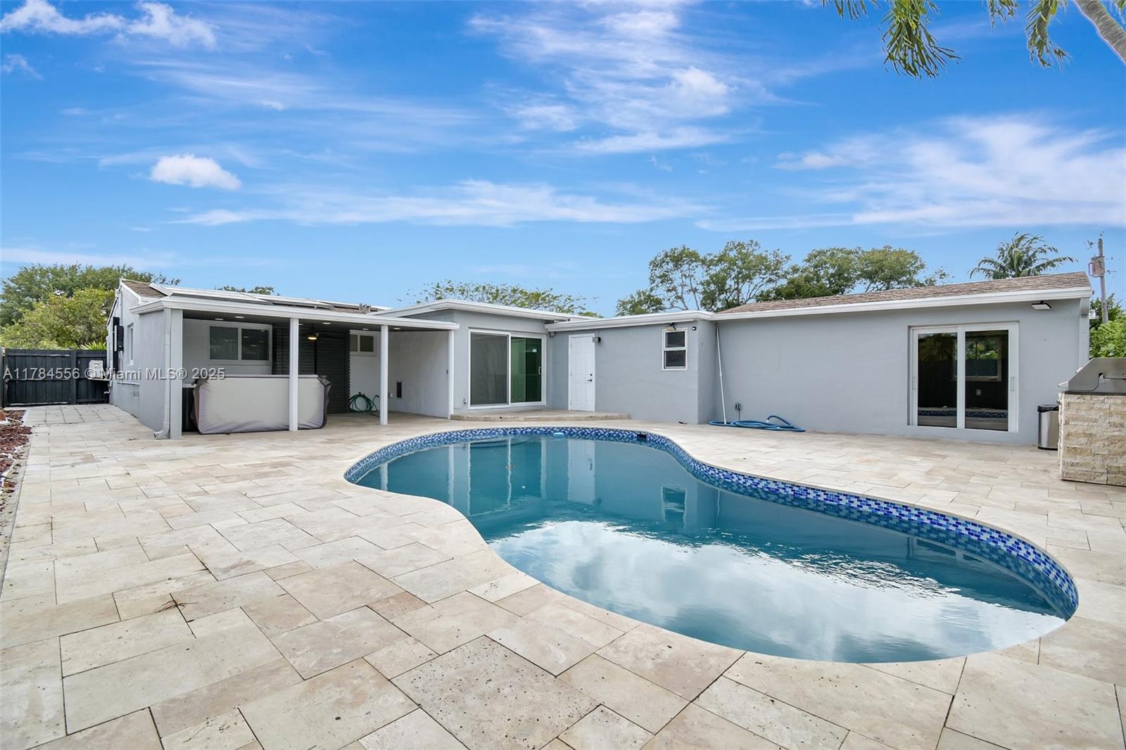 Completely renovated 3 bedroom + storage room & 2 bath pool home in Ft Lauderdale! Gated, remote control entrance w/ new driveway. Solar panels & Tesla power wall installed (2021), PAID OFF! Newer shingle & flat roof (2019). Heated pool & marble paver deck built (2019) & built in grill. City sewer connection. Impact glass windows & door installed (2019). Stunning kitchen, baths & flooring. New appliances. Gas - pool heater, dryer, stove, water heater, fireplace & BBQ grill! No HOA. Fantastic location - walking distance to Snyder Park & Floyd Hull Stadium. Minutes to FLL Airport, I95, 595, US1 & Ft Lauderdale Beach!