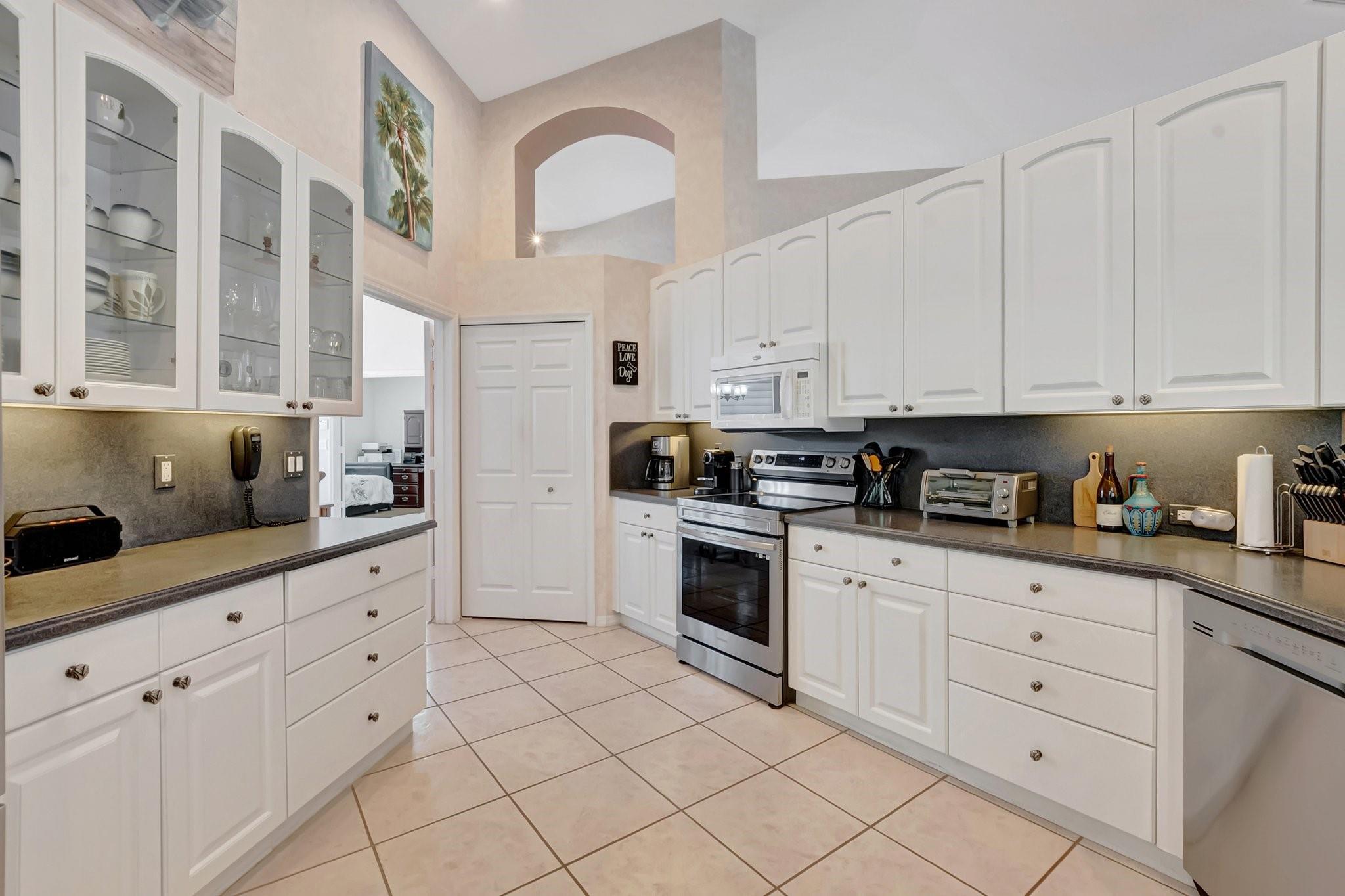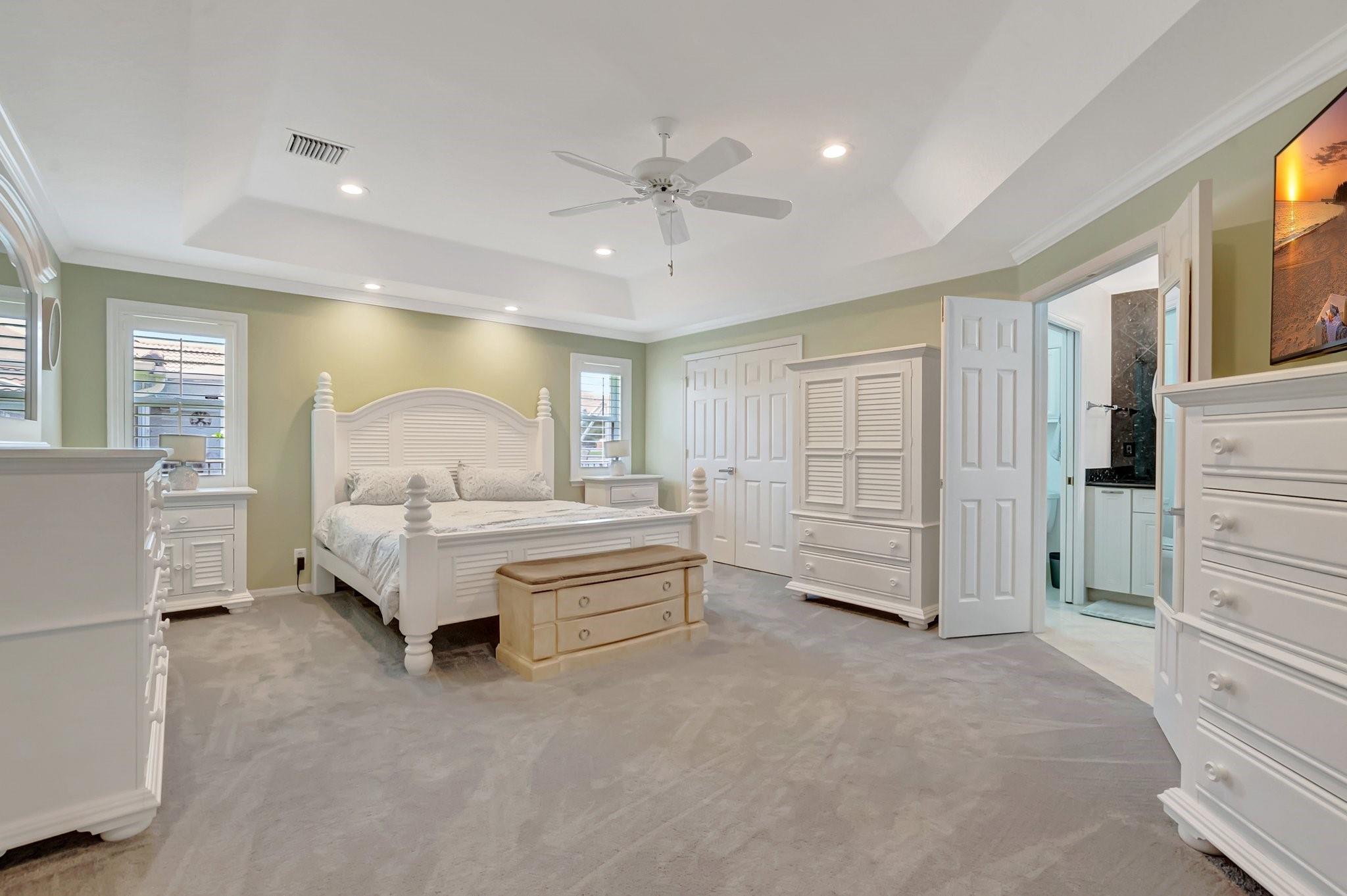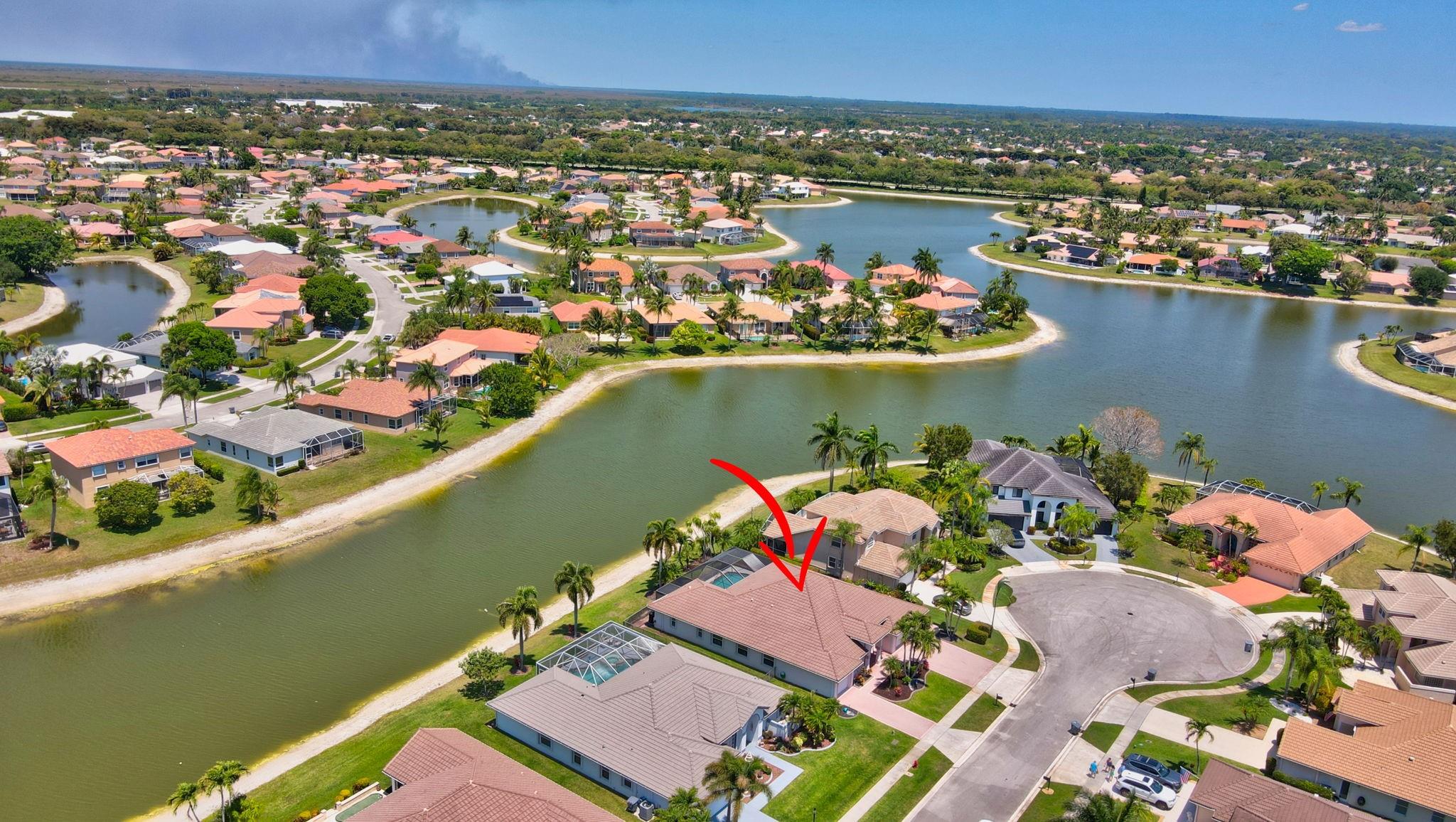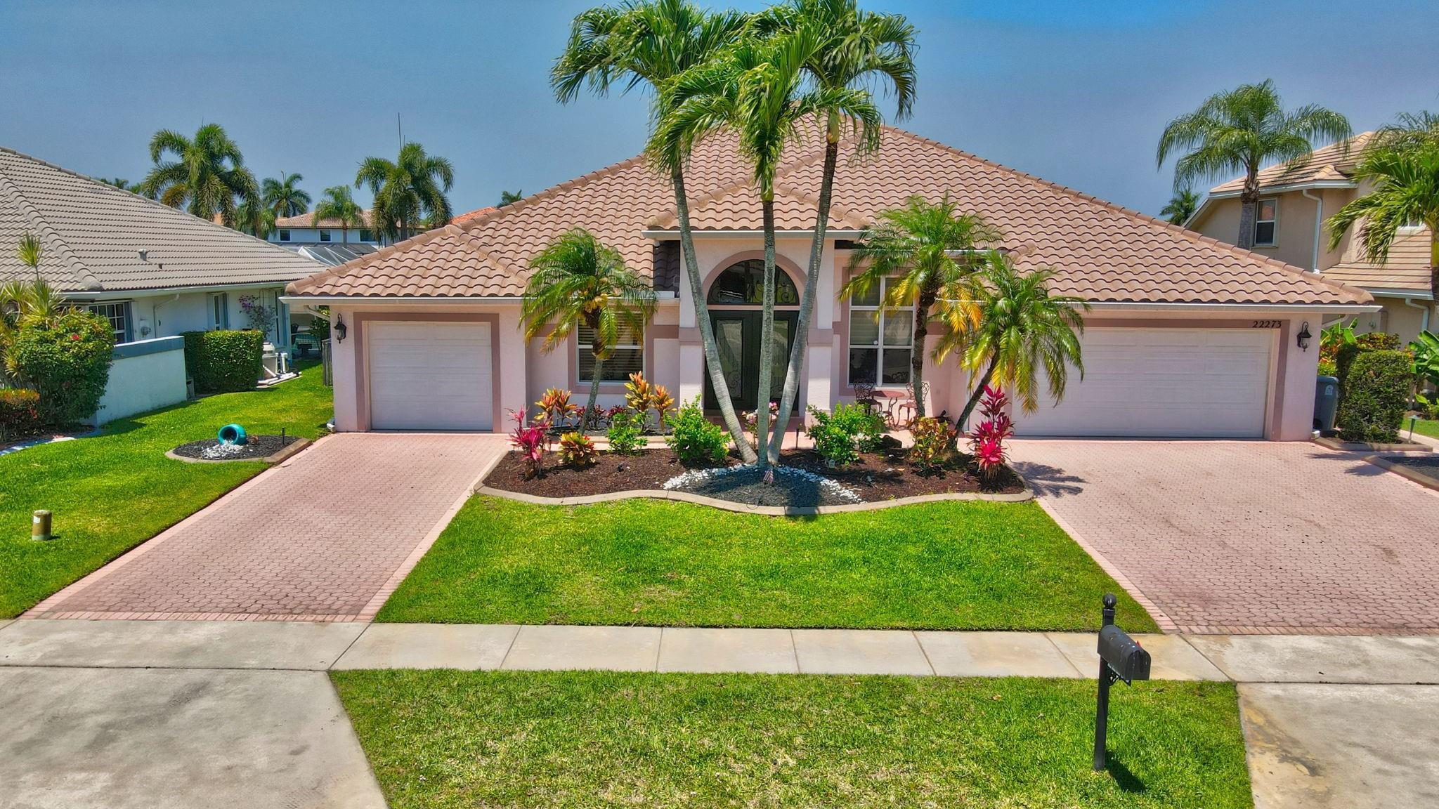 Nestled in the sought-after Carlyle section of West Boca, this stunning 5-bedroom, 2.5-bath, one-story lakefront masterpiece offers over 2,700 SQFT of luxury living. Recent updates include a new HVAC (2024), remodeled pool patio (2024), refreshed half bath (2024), and new carpets throughout (except baby's room). The kitchen boasts a new dishwasher (2024), stove (2024), and refrigerator (2021). Hurricane-ready with reinforced garage doors, accordion shutters on sides and back, and hurricane windows across the front. Additional upgrades include a new electrical panel with a Tesla charger, tankless water heater (2021), and microbial foam insulation in the attic. Enjoy Boca Winds' top-tier amenities—2 pools, a clubhouse, tennis, and basketball courts—all from your private cul-de-sac retreat.