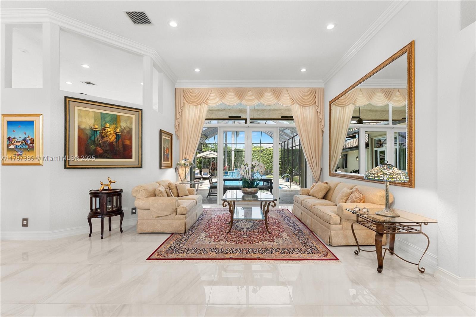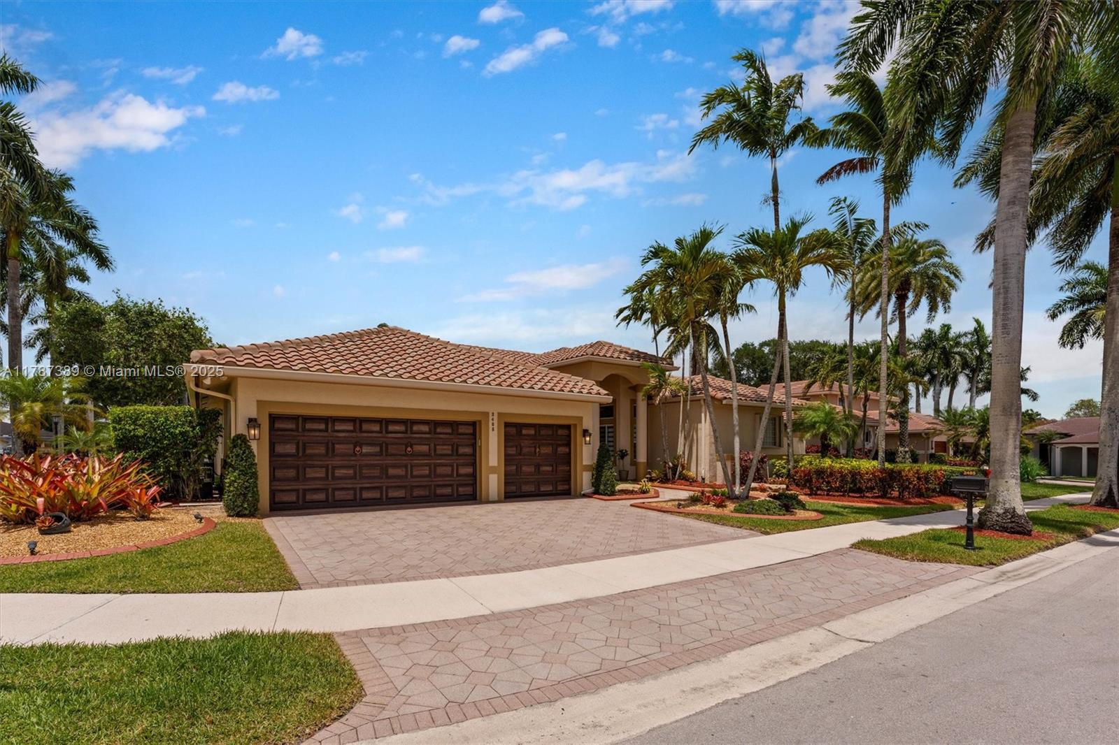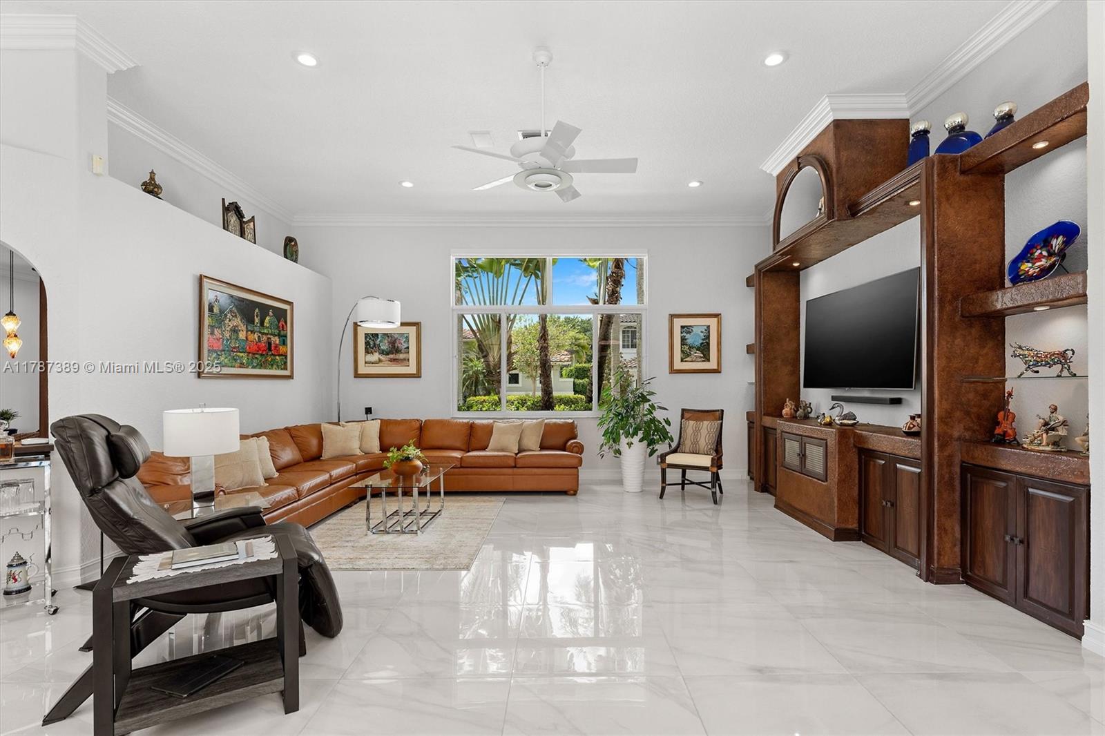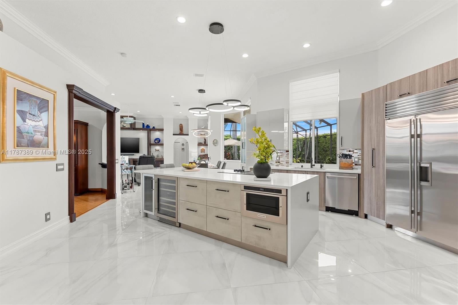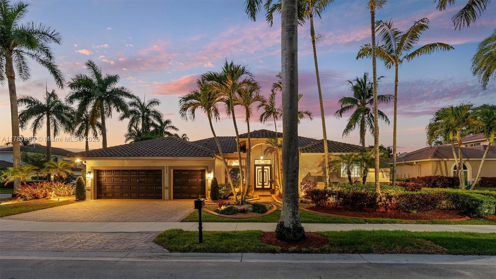 A rare offering in Weston Hills, where timeless architecture & exceptional craftsmanship meet on an expansive corner lot. This elegant home features 5BD plus a dedicated office and an entertainment room, with luminous porcelain flooring & rich laminated wood accents throughout. The oversized gourmet kitchen is equipped with Sub-Zero & Thermador appliances, quartz countertops, & a Zephyr wine cooler. Full impact windows fill the home w/ natural light, complemented by a 2017 roof for peace of mind. Enjoy a saline elongated pool within a screened patio, a whole-home water filtration system, & a three-car garage with insulated doors, transformed by Premier Garage. Located within Weston's premier A-rated school zone, this home offers the perfect blend of luxury, functionality, & prime location