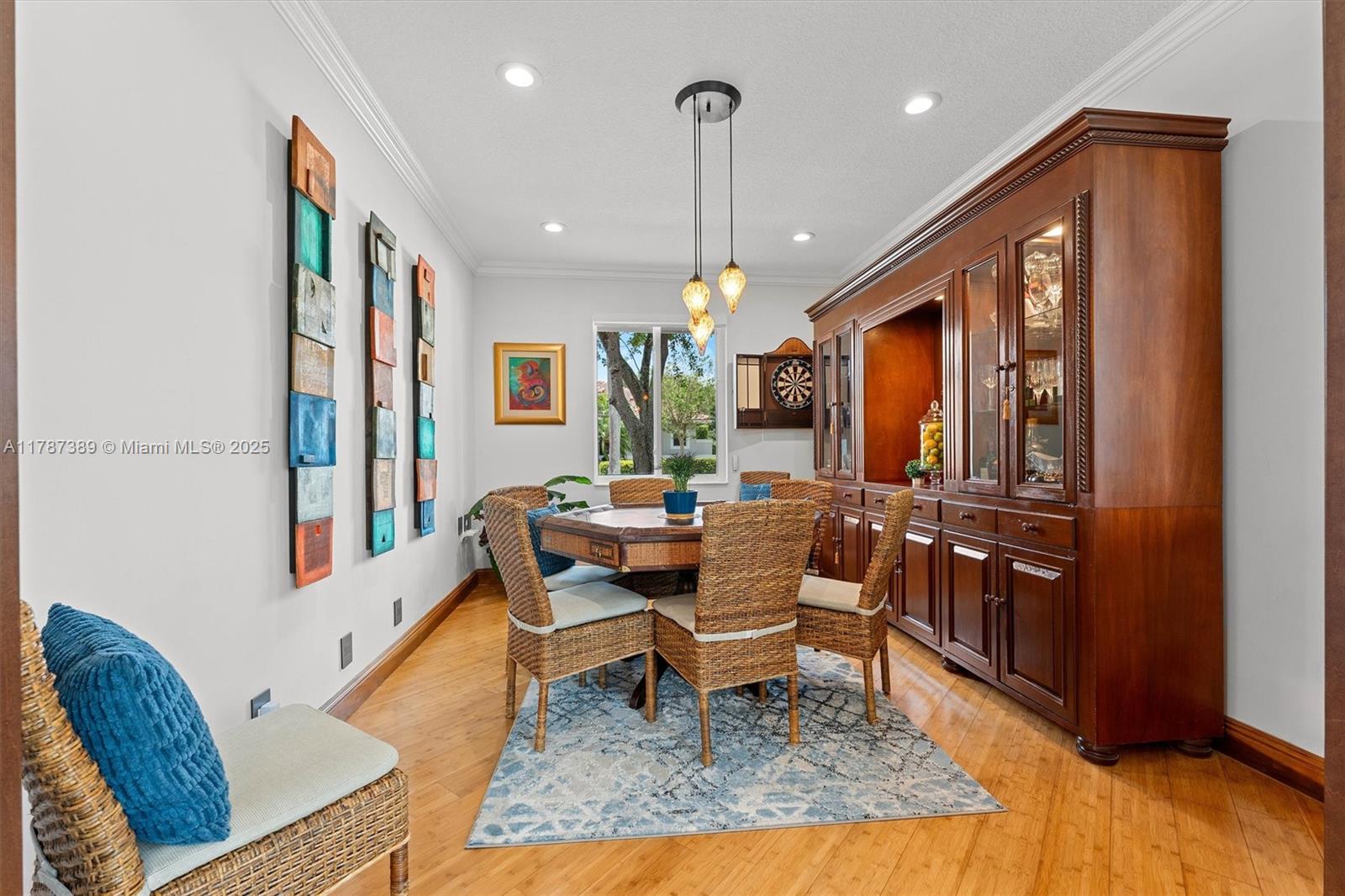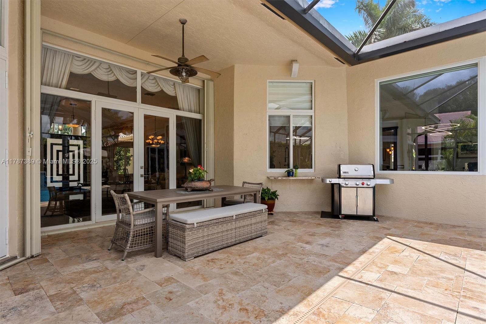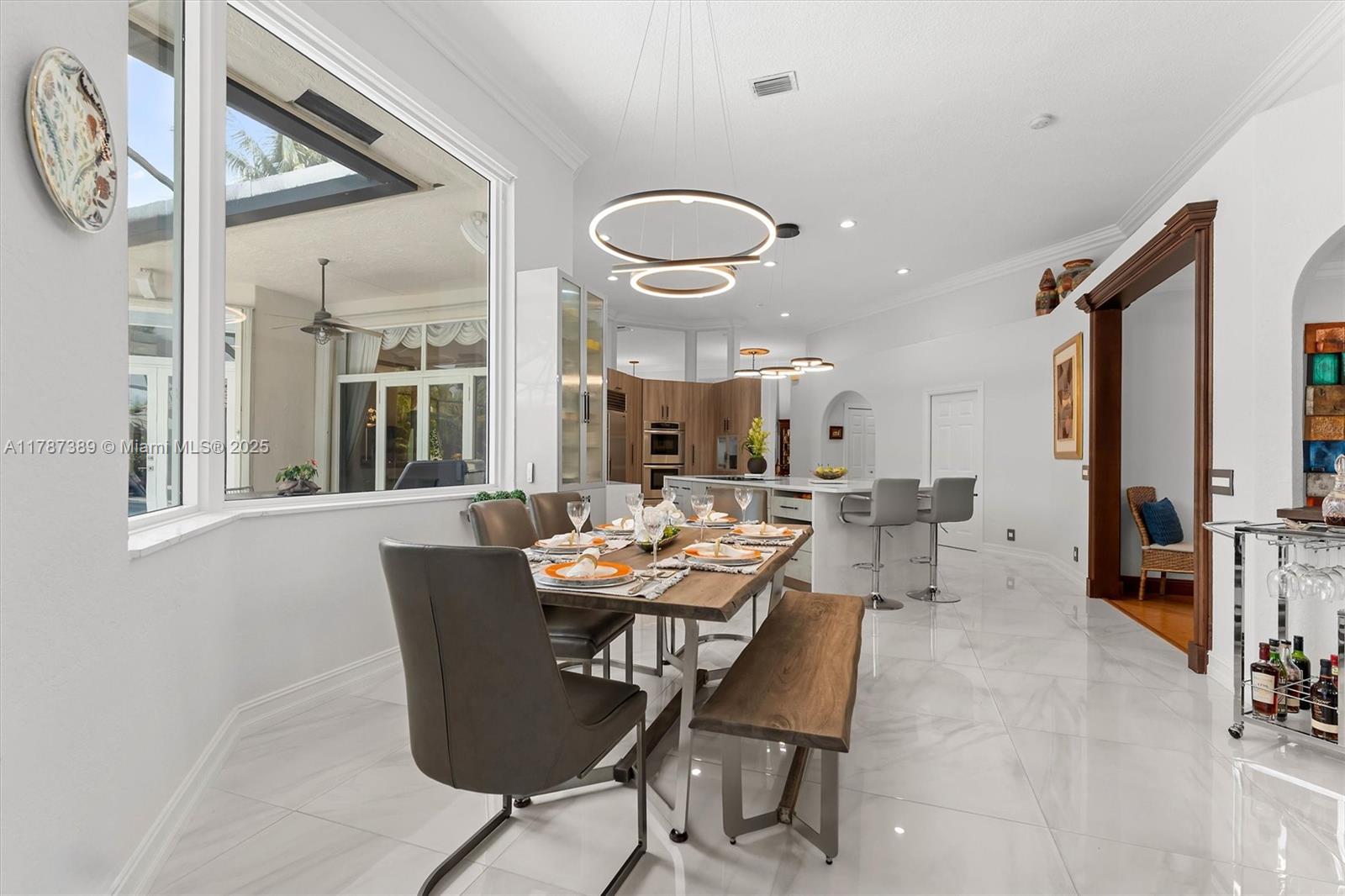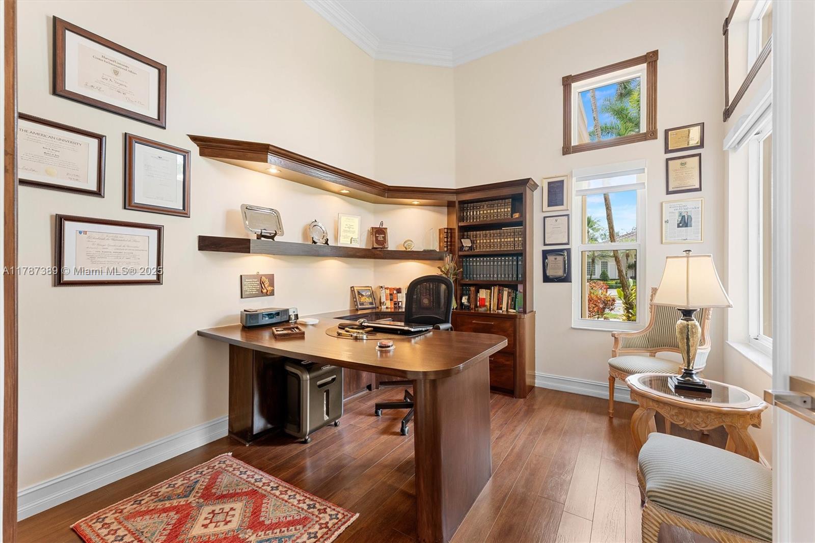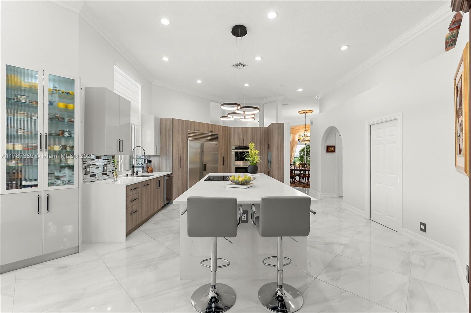 A rare offering in Weston Hills, where timeless architecture & exceptional craftsmanship meet on an expansive corner lot. This elegant home features 5BD plus a dedicated office and an entertainment room, with luminous porcelain flooring & rich laminated wood accents throughout. The oversized gourmet kitchen is equipped with Sub-Zero & Thermador appliances, quartz countertops, & a Zephyr wine cooler. Full impact windows fill the home w/ natural light, complemented by a 2017 roof for peace of mind. Enjoy a saline elongated pool within a screened patio, a whole-home water filtration system, & a three-car garage with insulated doors, transformed by Premier Garage. Located within Weston's premier A-rated school zone, this home offers the perfect blend of luxury, functionality, & prime location