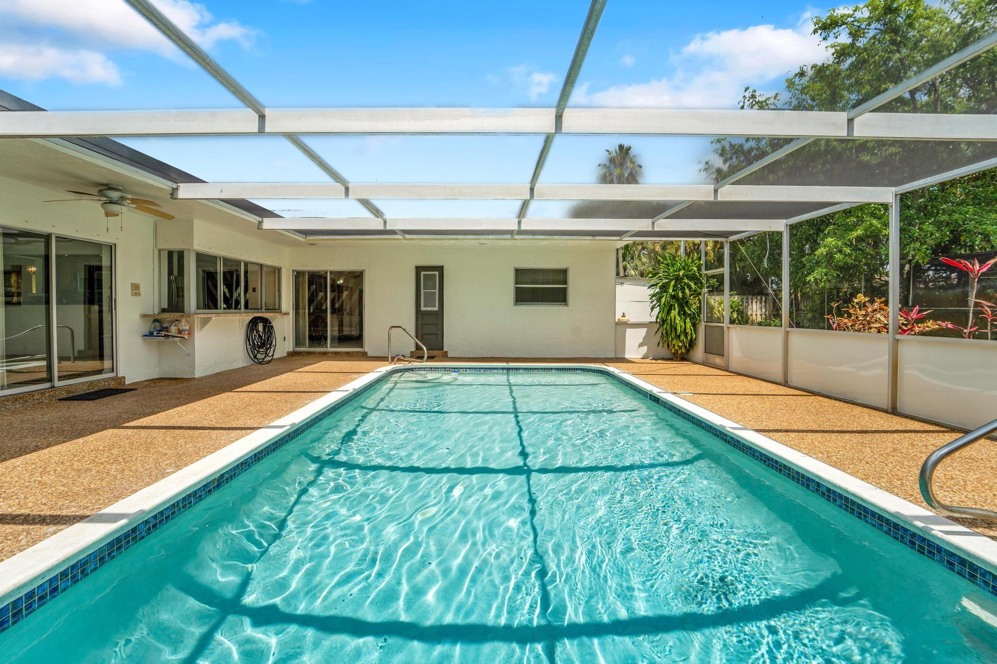 This well-built 20th century 4/2 ranch-style pool home in Ramblewood in Coral Springs is ready to move into. The interior and exterior were just painted. New landscaping was just added. The home offers desirable features such as a floorplan that wraps around a large, screen-enclosed cool deck and saltwater pool (30'x15'), cabana bathroom, spacious bedrooms, private homesite with mature fruit trees (avocado, mango, & star fruit), and a circular driveway. Great curb appeal. Covered entry way. Tile & laminate flooring throughout. Custom kitchen has real wood cabinetry, beveled edge granite countertops, SS appliances, undermount double sink, & more. Over 2,650 sq. ft. with an oversized garage. No HOA. Walk to schools and parks. Good location close to everything. Too many details to write here