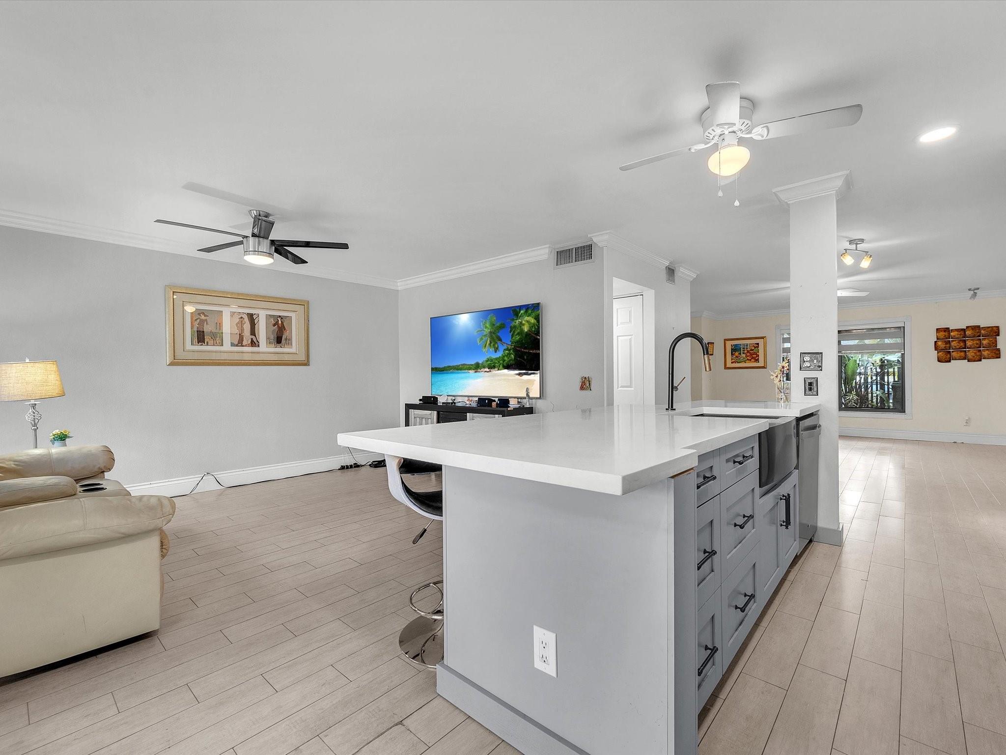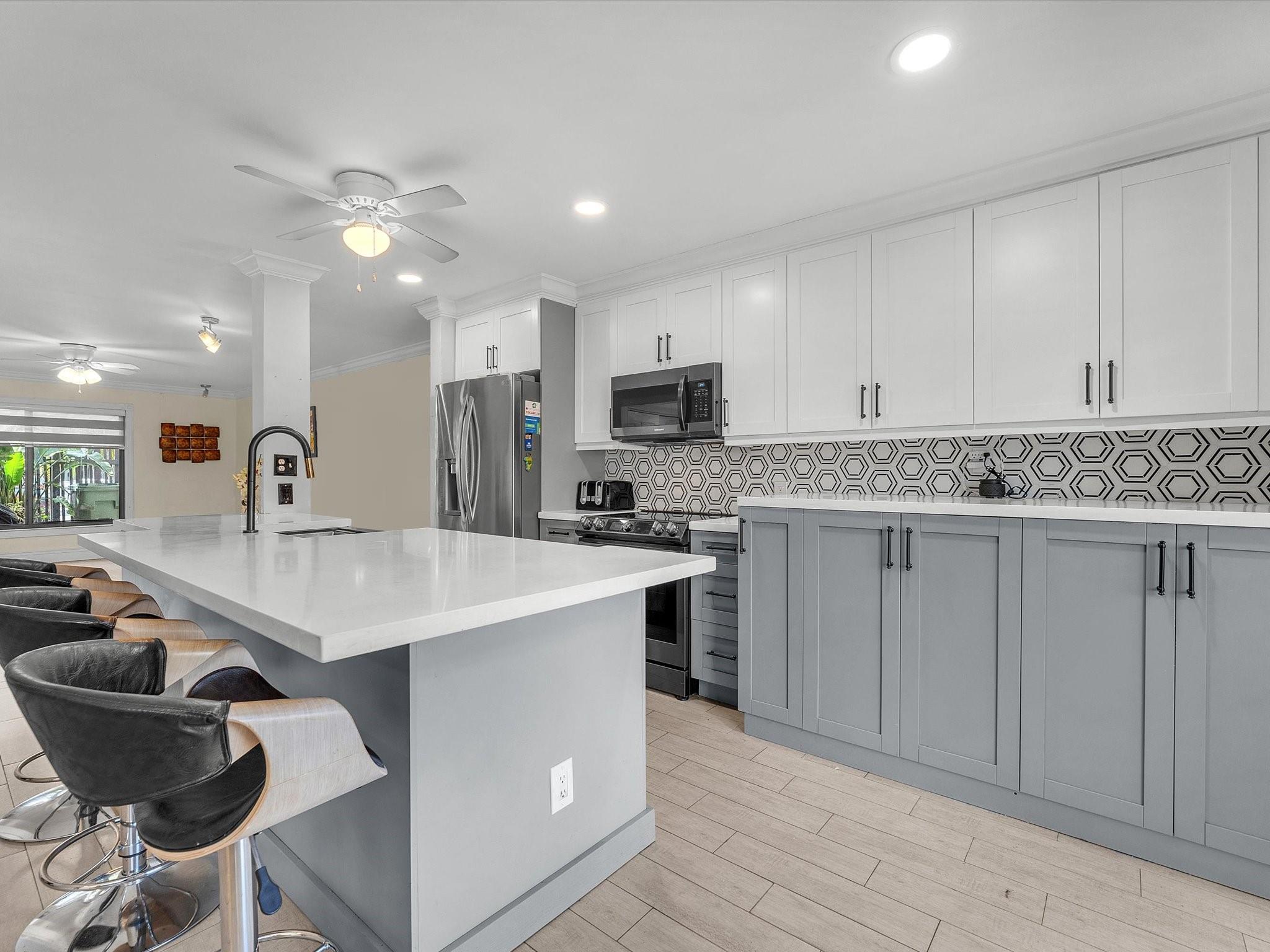 Waterfront Paradise Awaits! Discover this stunning 3-bed, 2-bath spacious sanctuary offering direct lake access perfect for kayaking or dinghy adventures right from your backyard! Wake up each day to breathtaking water views from kitchen/ family room. Step inside to a bright, open-concept layout that effortlessly blends style and comfort. The chef’s kitchen is a showstopper, featuring brand-new modern appliances, custom cabinetry, and quartz perfect for entertaining everyday living. The spacious primary suite is your personal retreat generous closet space. Two additional bedrooms family or guest . *Featuring Crown molding*Custom window treatments. Two parking space in front* Located minutes from Pembroke Pines Mall, top-rated restaurants, shops, schools this home truly has it all!