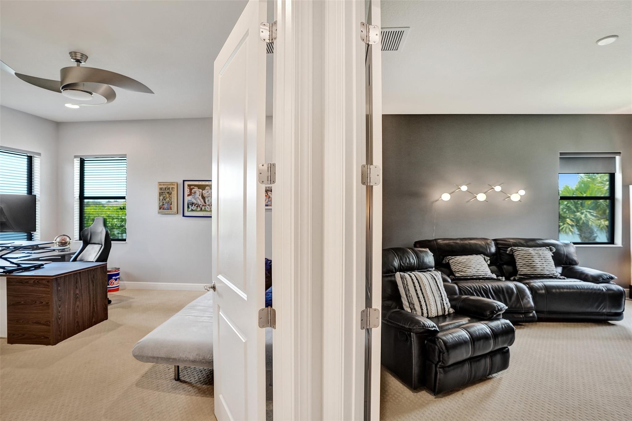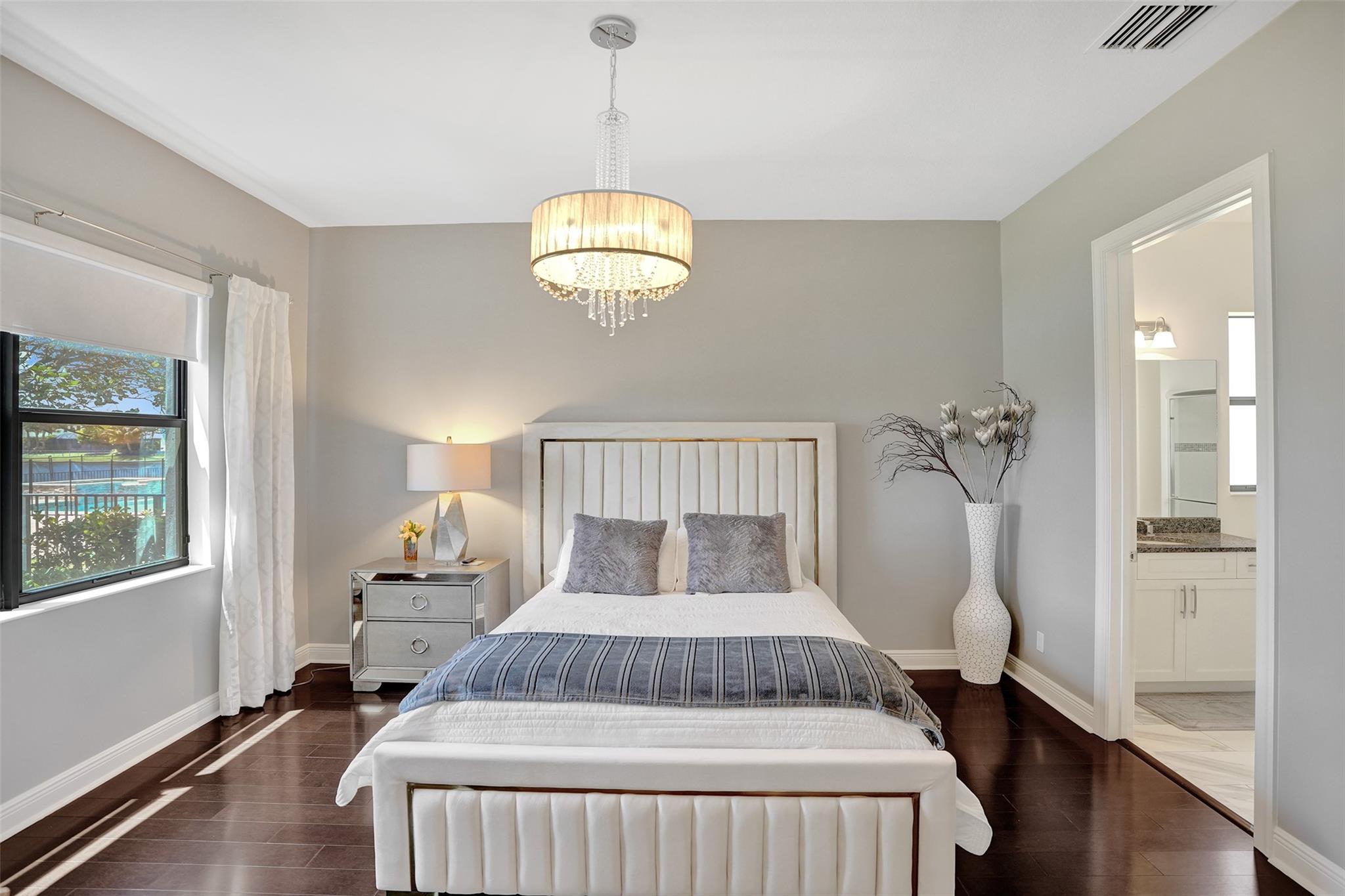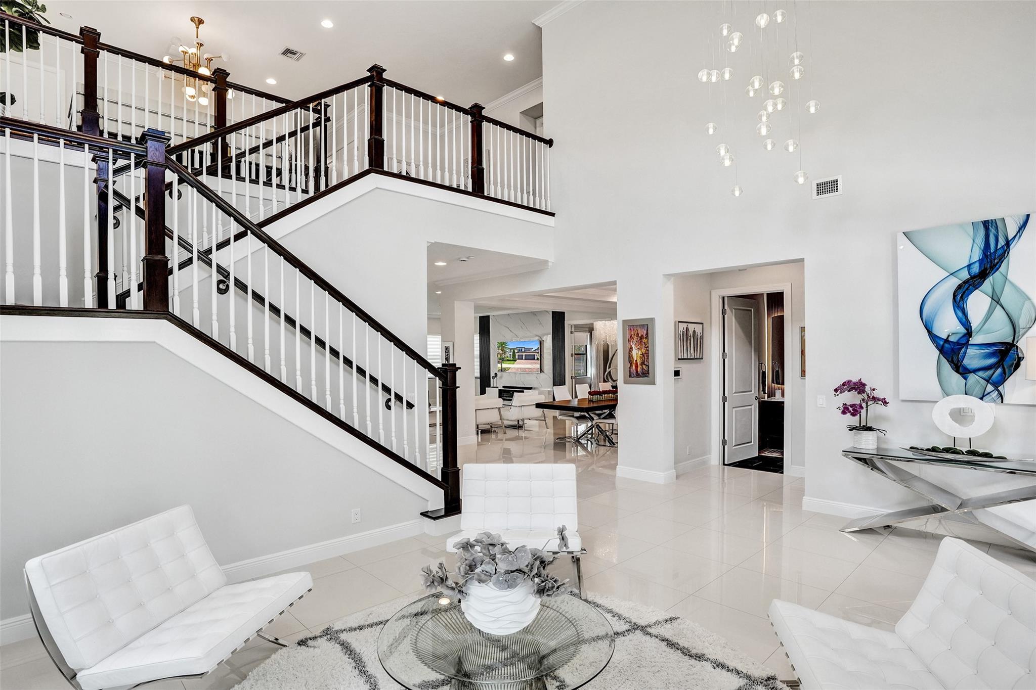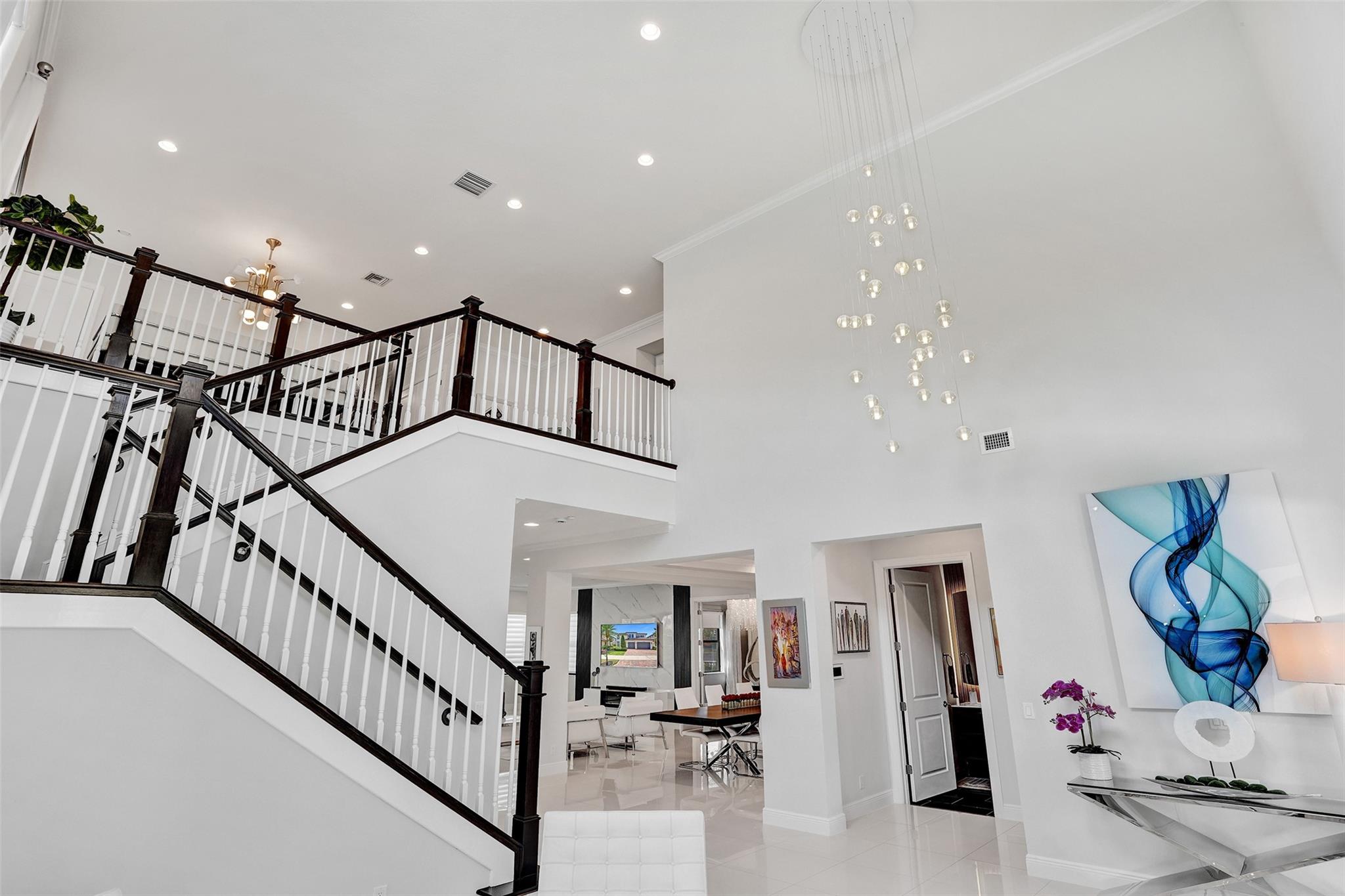 Stunning Willow Model situated in beautiful desirable Osprey section of Heron Bay. Very low HOA and a very short walk to Plaza De Lago which is Heron Bay main clubhouse. This Home boast a white contemporary kitchen with elegant lighting and window treatments and neutral colors palette. Built in 2014, beautiful curb appeal, 3 Car Garage, Soaring 24 feet ceilings as you enter with beautiful staircase, open living, expansive kitchen, walk in pantry, beautiful built in closets, 5 bedrooms (one en suite on the first floor). Upstairs is the loft, Primary bedroom with spa like master bath and 2 additional bedrooms and 2 baths and 2nd floor laundry. On the first floor there is an en suite bedroom, a cabana bath and a new updated beautiful powder room. A must see!