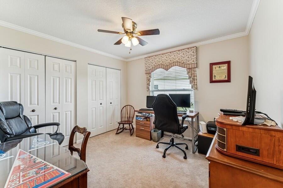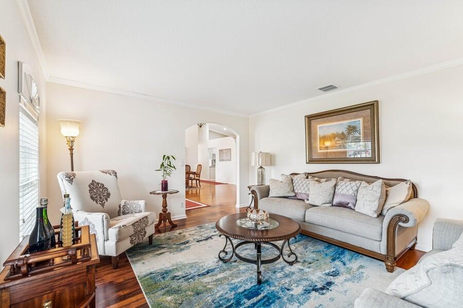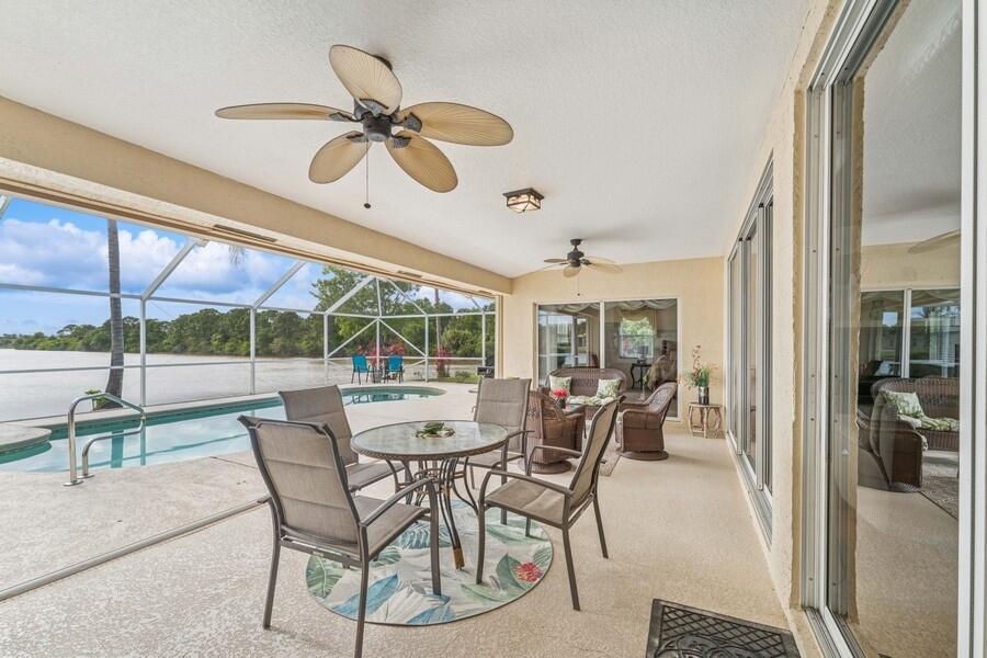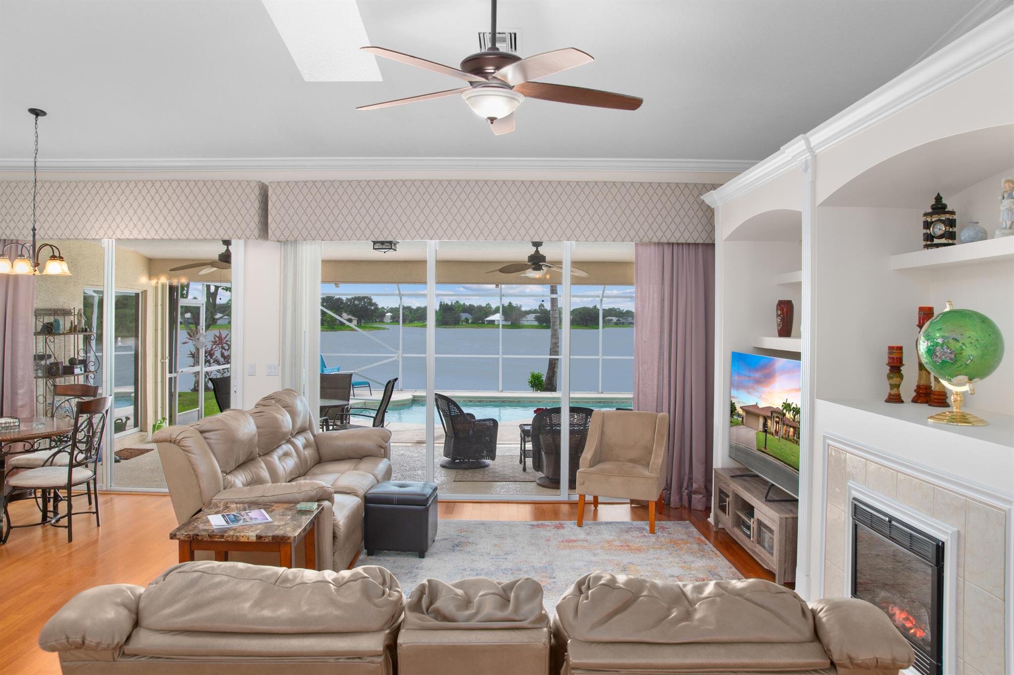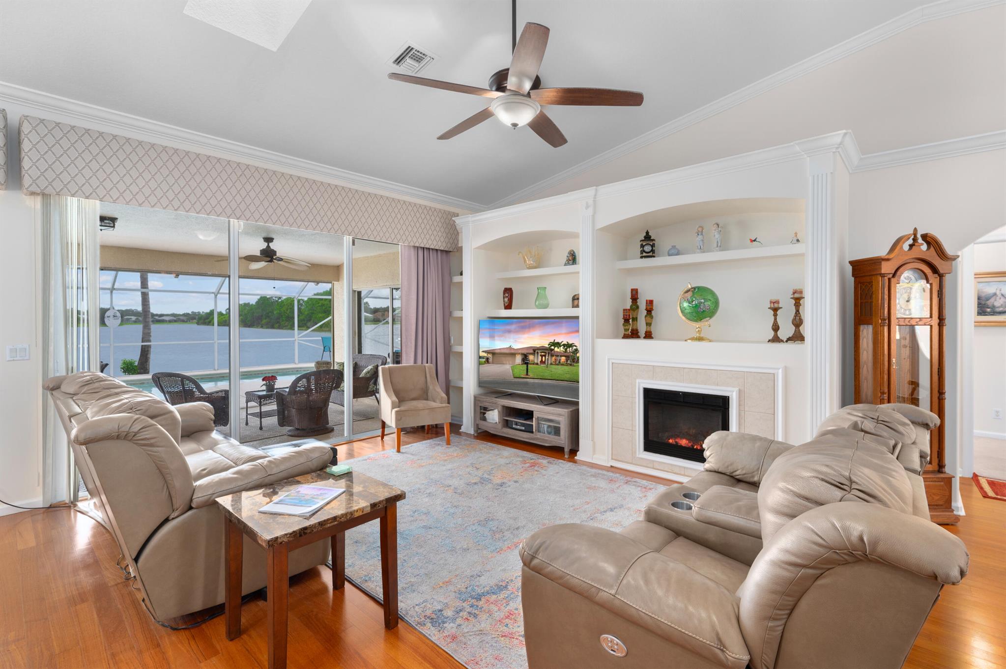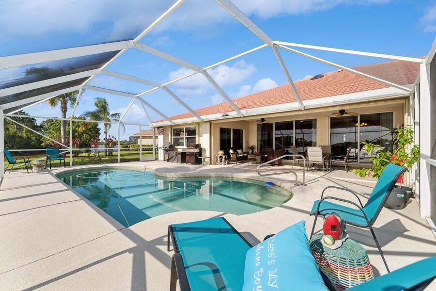 Sanctuary @ Sawgrass Lakes... ****PREMIER LAKE VIEW****HEATED POOL****WHOLE HOUSE GENERATOR****... Beautiful 4 bedroom, 3 full bathrooms with 2 car garage. Kitchen has been remodeled with New Cabinets with pull outs in the Pantry Cabinet, Quartz Countertops & SS Appliances. Family Room has Decorative Fireplace w/heater. Bathrooms have Quartz Countertops. Hardwood Floors in Living Areas, Carpet in the Bedrooms and Tile in the Bathrooms. Pool is under Screen & is Solar Heated. Crown Molding throughout this home. Irrigation to the property is supplied from the Lake. Accordion Shutters for Hurricane Protection. (A/C 2018 / Water Heater 2017 / Solar Panels for the pool 2021). Built by Royal Professional Builders - Poured concrete exterior walls. Most furniture negotiable.