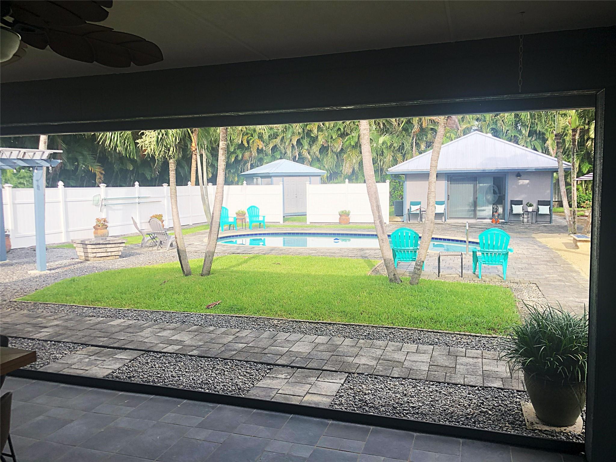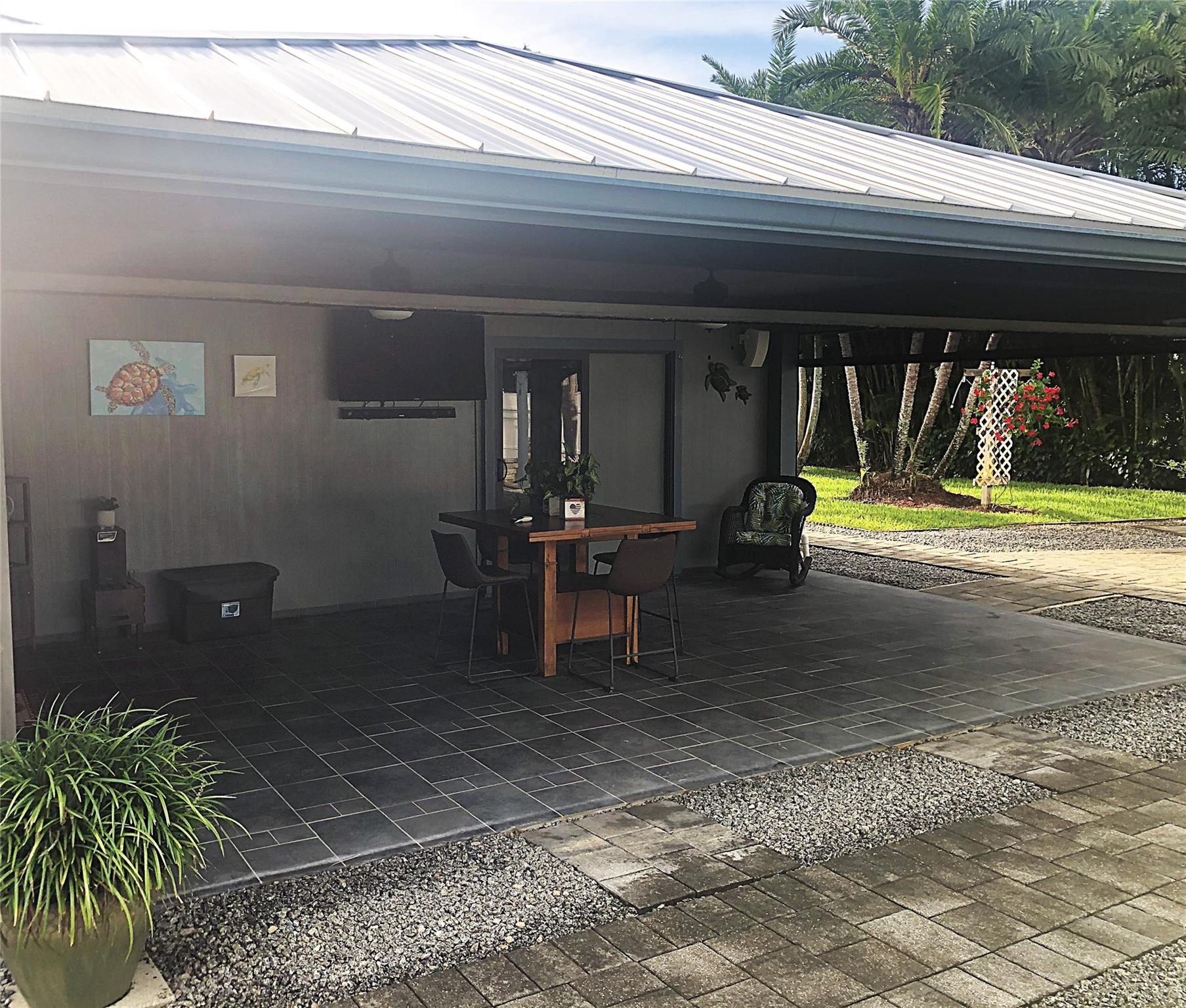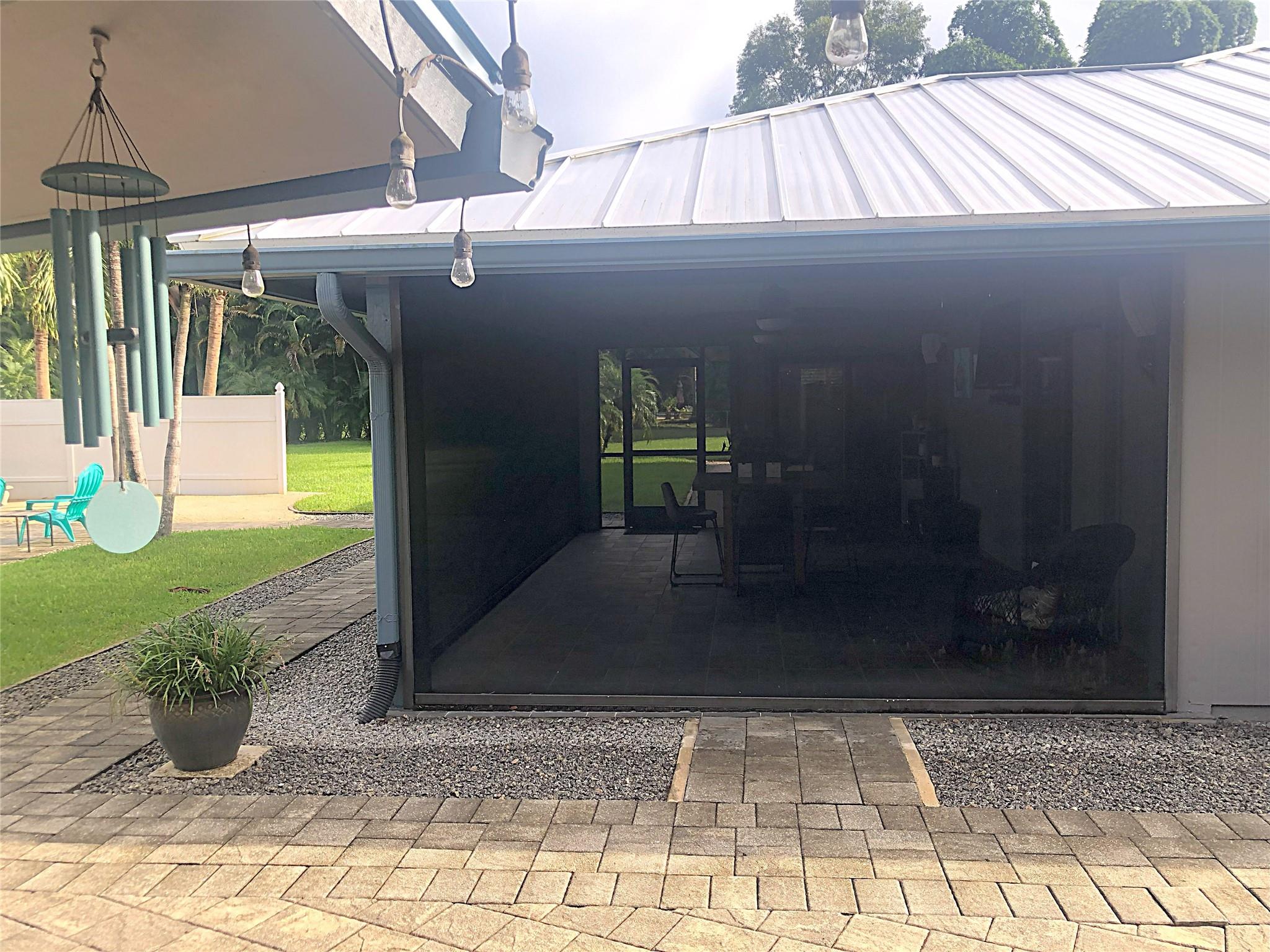 Beautiful 3/2, two car garage in Jupiter Farms featuring New 2024 standing seam metal roof on main and guest house, Main home is 2501 sf, under air with split plan. Completely Fenced In! Hurricane impact windows and sliders on main and guest house. Updated detached 500 sq ft 1b/1b guest house /or In- Law suite that is completely furnished with plantation shutters, full kitchen and bath, New tankless water heater, 2 ton a/c, TV, and an all in one Smart LG W/D combo. Main home features granite counter tops and ample cabinetry, pantry, 900 sf great room with fireplace, wet bar, LG appliances, convection oven, microwave, refrigerator, and dishwasher. Brand new W/D with 5 yr warranty. Two wood burning fireplaces, plantation shutters, new wood flooring throughout, 5 ton a/c.