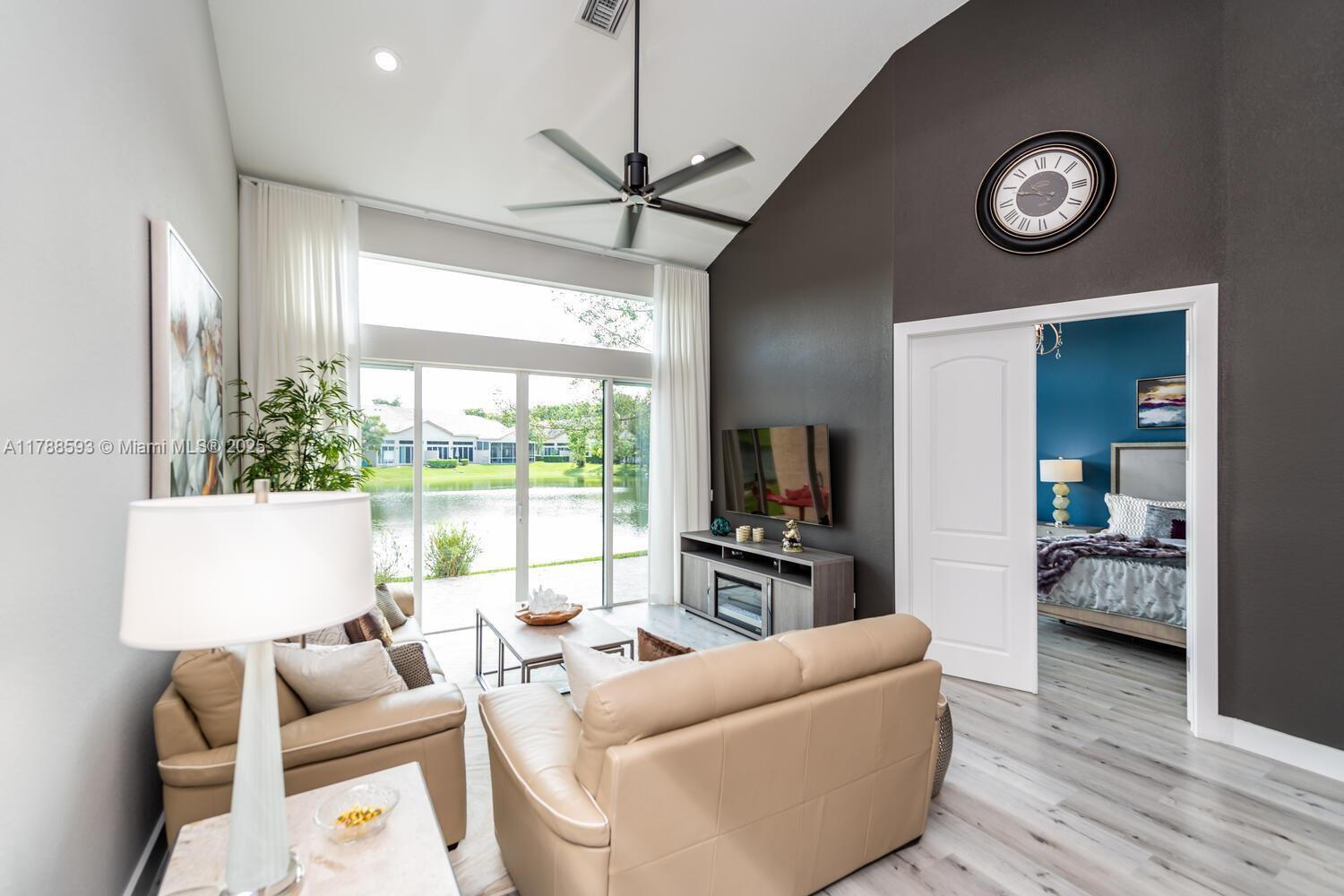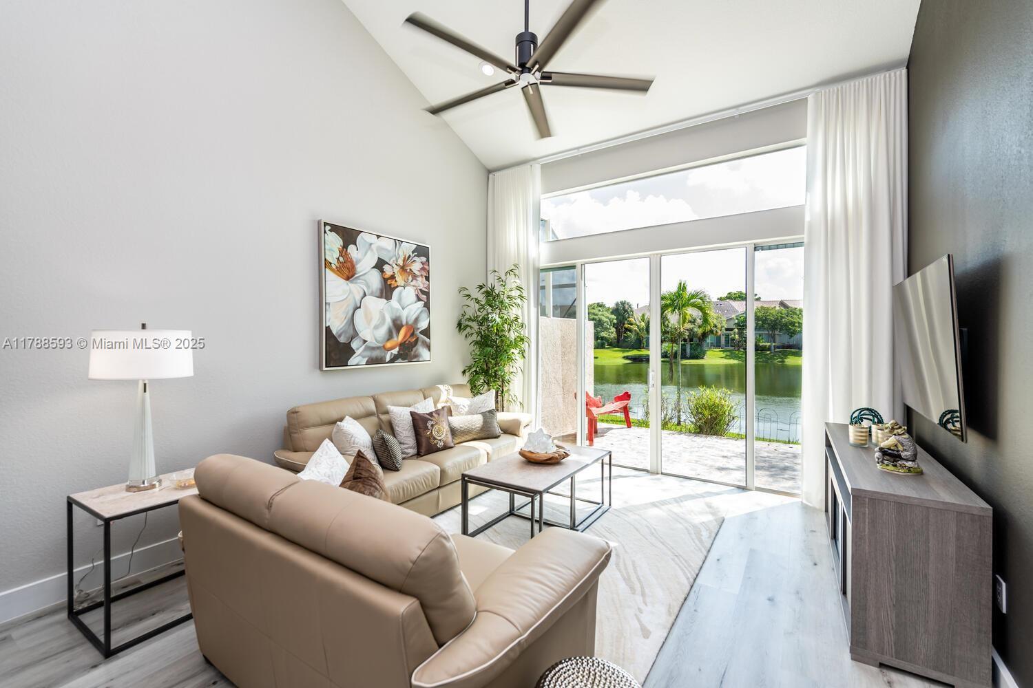 Fully Renovated 3BD/3.5BA Townhome w/ 2-Car Garage + Lake View! Modern & spacious with primary suite on the 1st floor featuring a walk-in closet and spa-style bath w/ dual vanities & enclosed shower. Open-concept kitchen with quartz counters, elegant cabinets, GE Profile stainless steel appliances. Laundry room w/ full-size washer & dryer, plus guest half bath. Upstairs: 2 beds, 2 baths & huge loft—perfect for office or flex space. Flooring includes waterproof vinyl, porcelain & marble tile. Custom drapes & plantation shutters. Outdoor patio overlooking the lake. Move-in ready! New Roof, New AC, Covered Patio — all done 2 years ago! Open House on May 1st, Thursday, 4–7 PM. Don't miss it!
