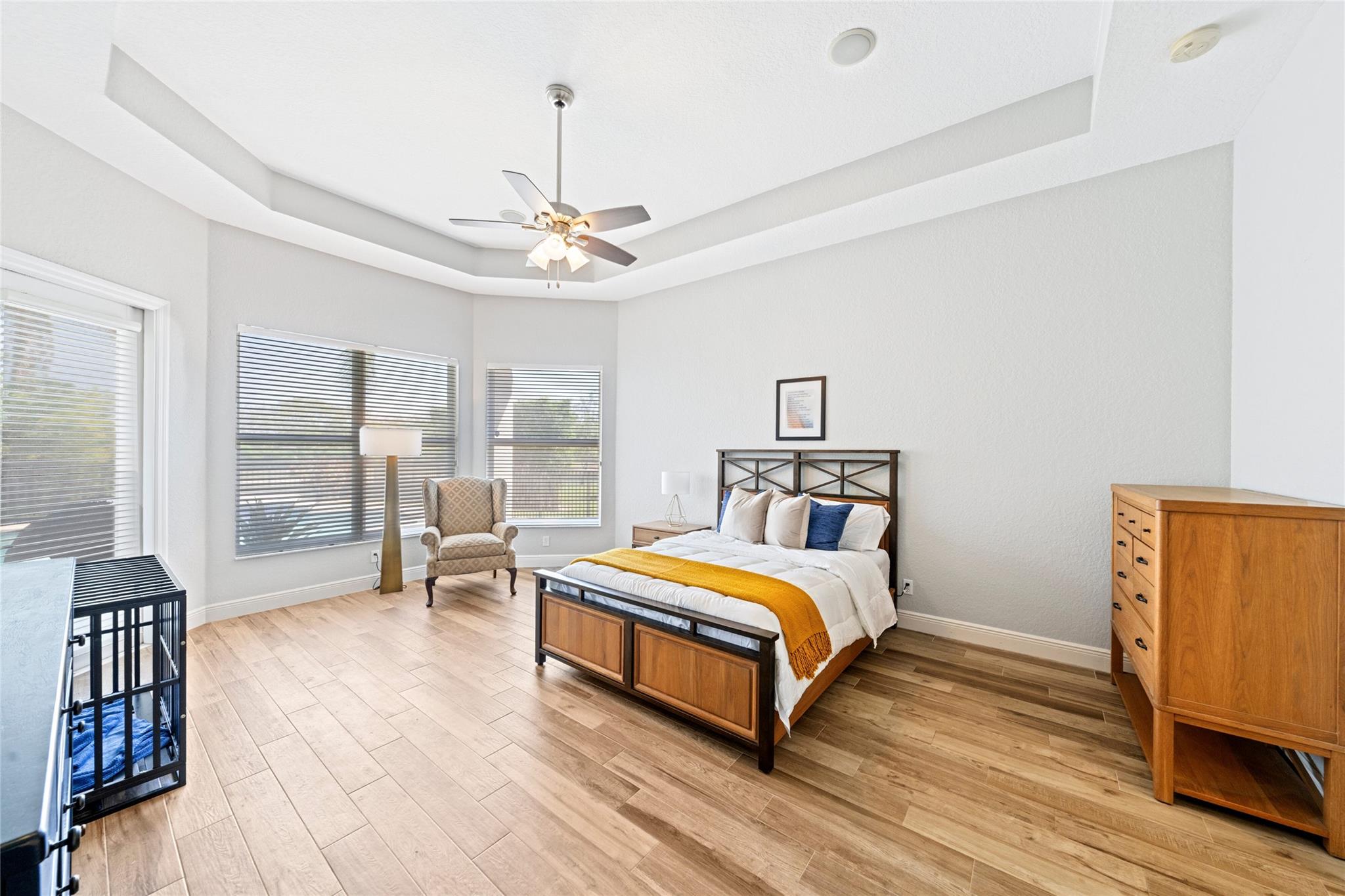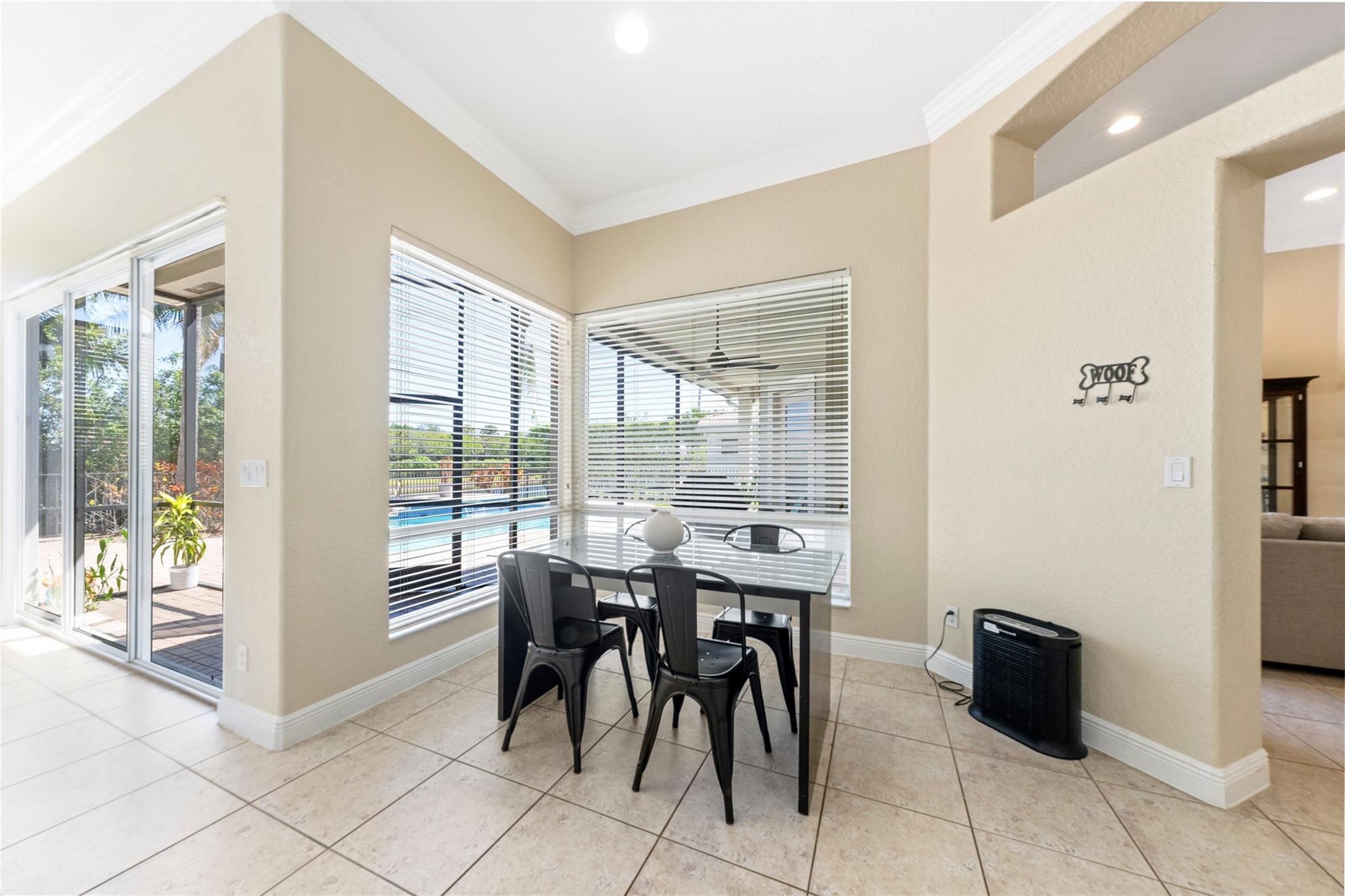 The home you’ve been waiting for in Fox Ridge is here! Situated on a waterfront lot, this home offers the desirable triple split floor plan with 5 bedrooms & 4 full bathrooms. Features include volume ceilings, crown molding, neutral tile in living areas, wood-look tile in bedrooms/baths, an open kitchen w/warm white cabinets, tumblestone backsplash, granite countertops & newer appliances (refrigerator/dishwasher), spacious laundry room w/new washer, dryer, sink, marble countertops, and ample storage. Additional upgrades: newer A/C units, new ceiling fans throughout, LED recessed lighting, upgraded copper piping, new smoke/fire detectors, lush landscaping and a screen-enclosed lanai that opens to your private pool and patio with tranquil water views. All A-rated schools & low HOA fees!