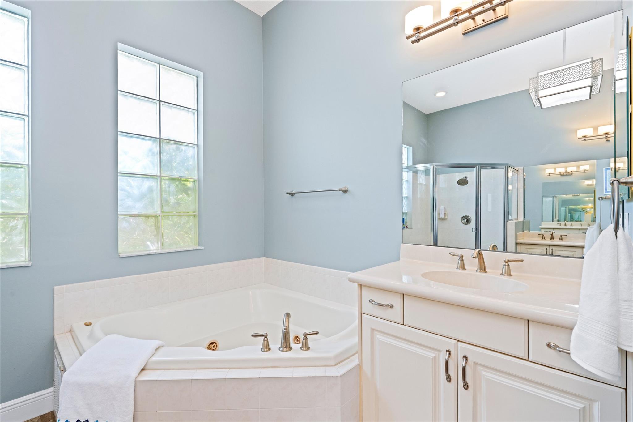 • Interior Feature:BedroomOnMainLevel, BreakfastArea, DiningArea, SeparateFormalDiningRoom, DualSinks, EntranceFoyer, HighCeilings, Pantry, SplitBedrooms, SeparateShower, WalkInClosets