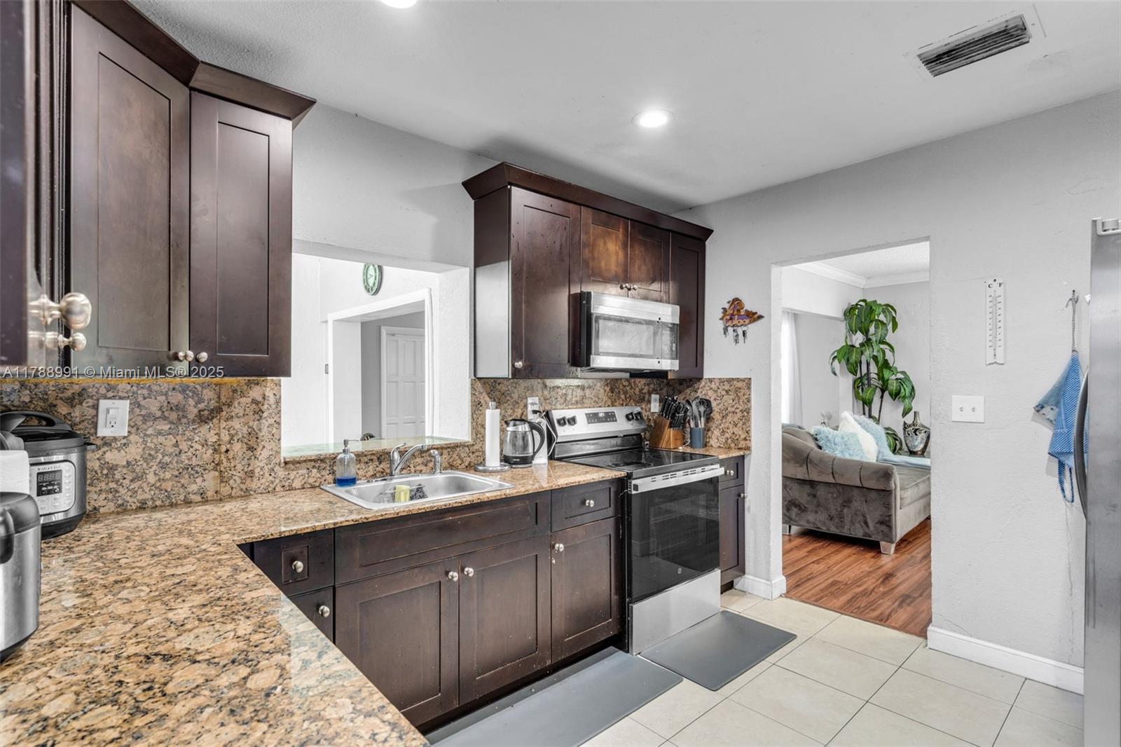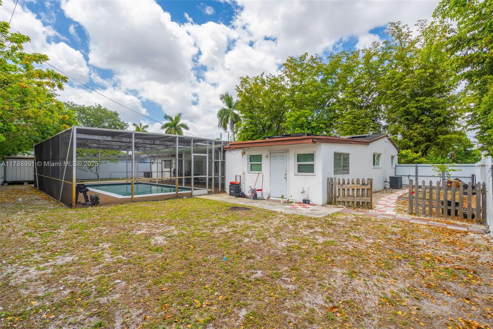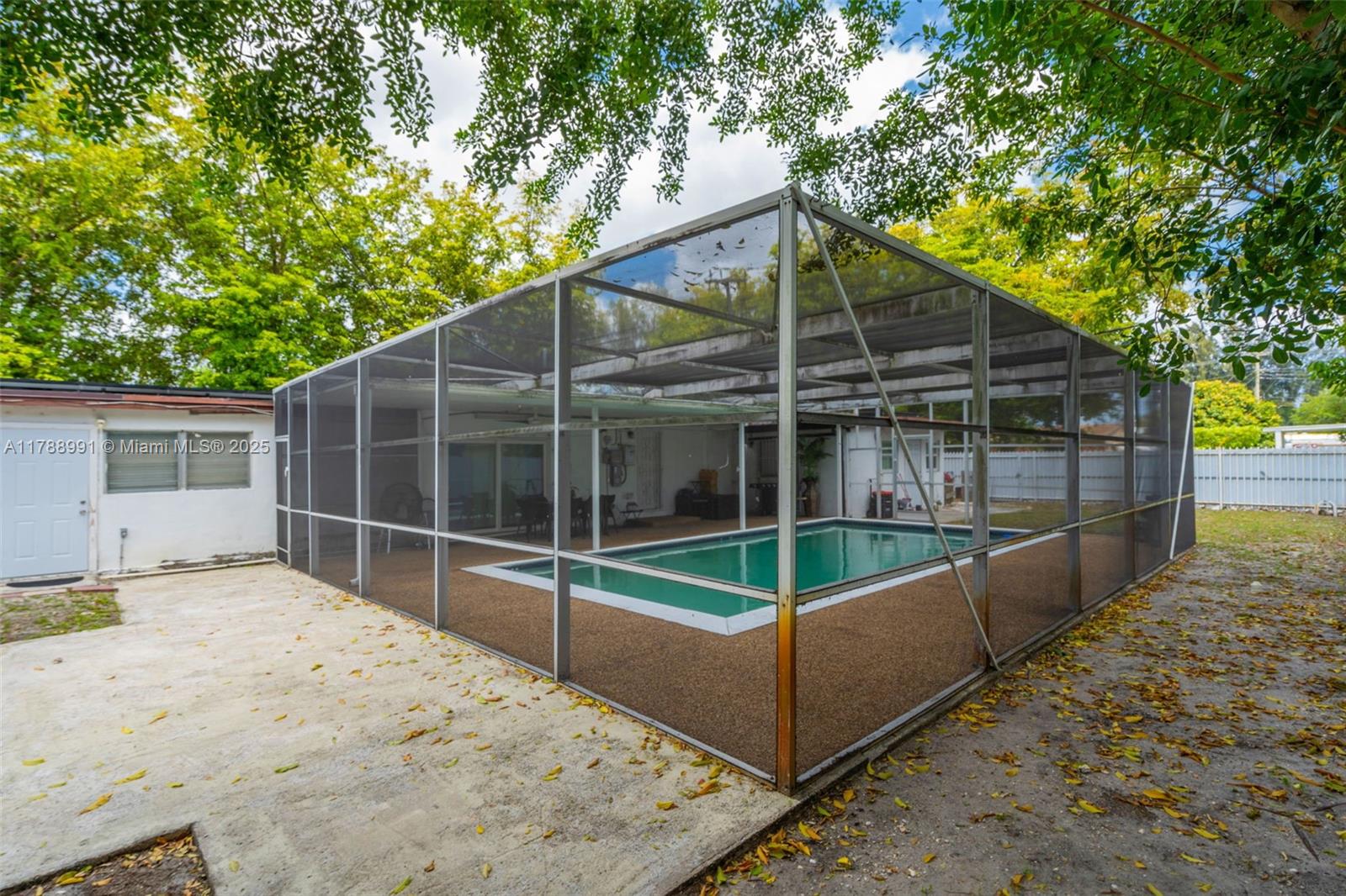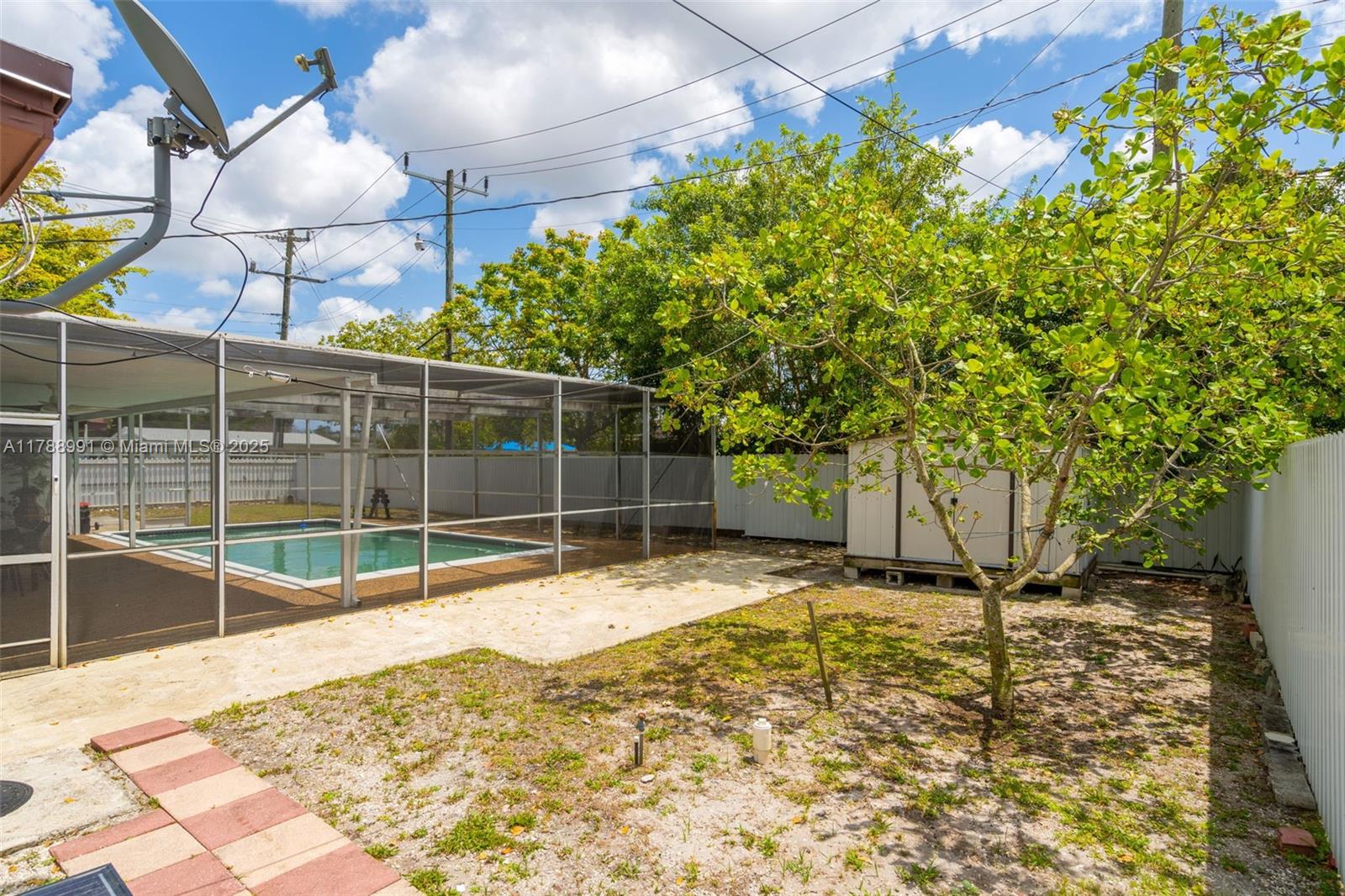 Investor's Dream !! 4-bedroom, 3-bathroom corner home with incredible potential. Sitting on an oversized lot of over 10,000 square feet, this property offers more than 2,600 square feet of living space, a private pool, and a two-car garage and additional space for more parking cars. Solar panels to save electricity. Inside,you'll find an updated kitchen and bathrooms, along with a large laundry room for added convenience. Additional features include partial impact windows, a roof that’s approximately seven years old, and a fully fenced yard that ensures both privacy and security. The beautifully landscaped outdoor space is filled with a variety of fruit trees—located,near main streets, churches, restaurants and more. Don't miss out on this exceptional opportunity