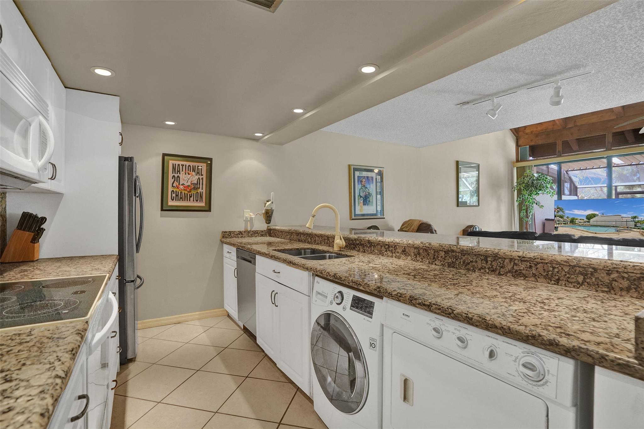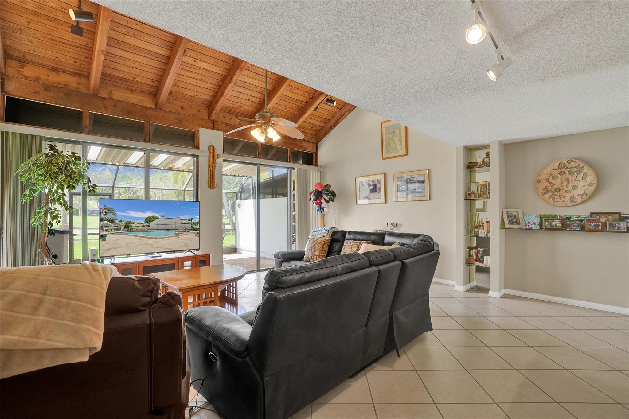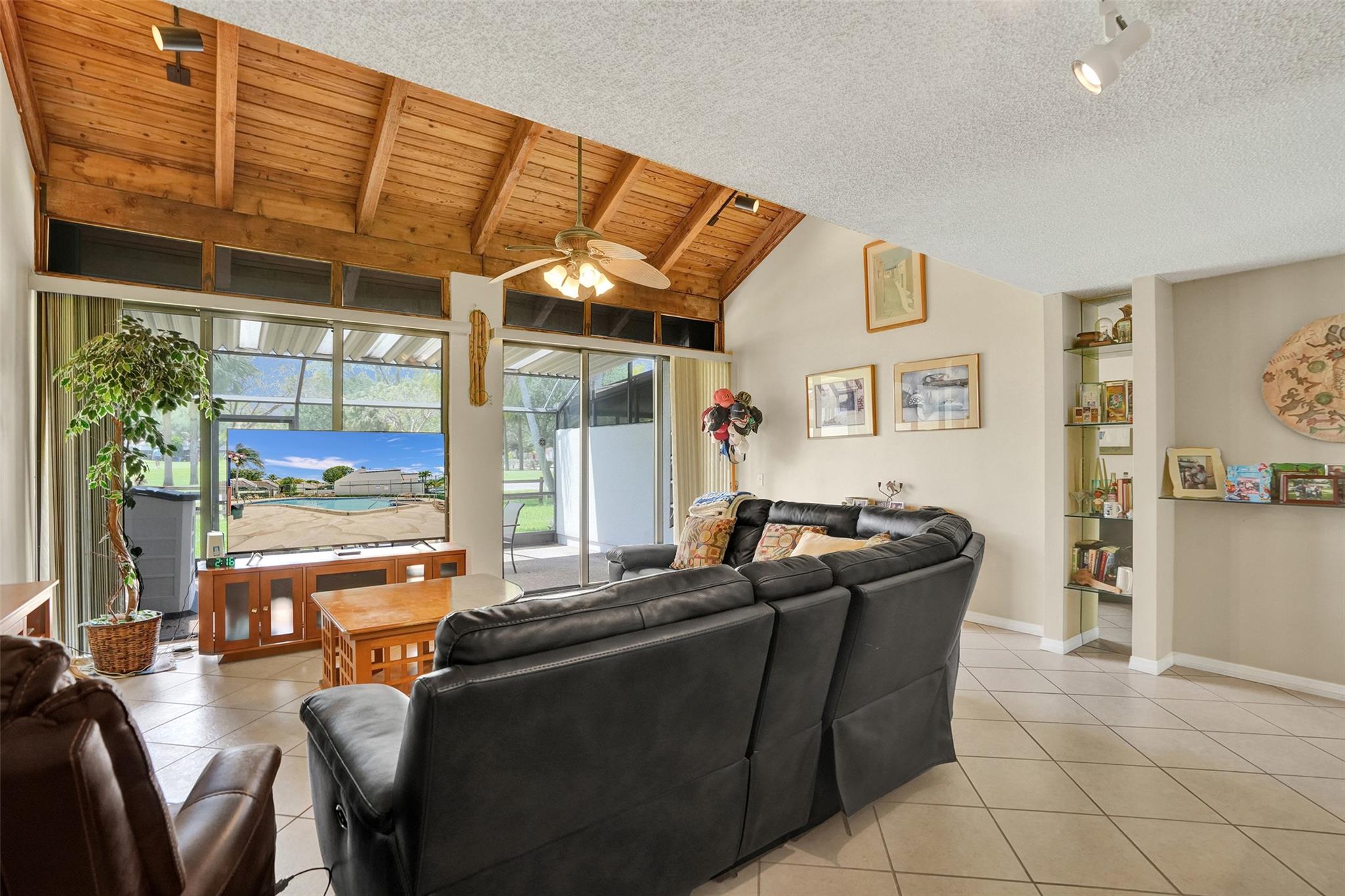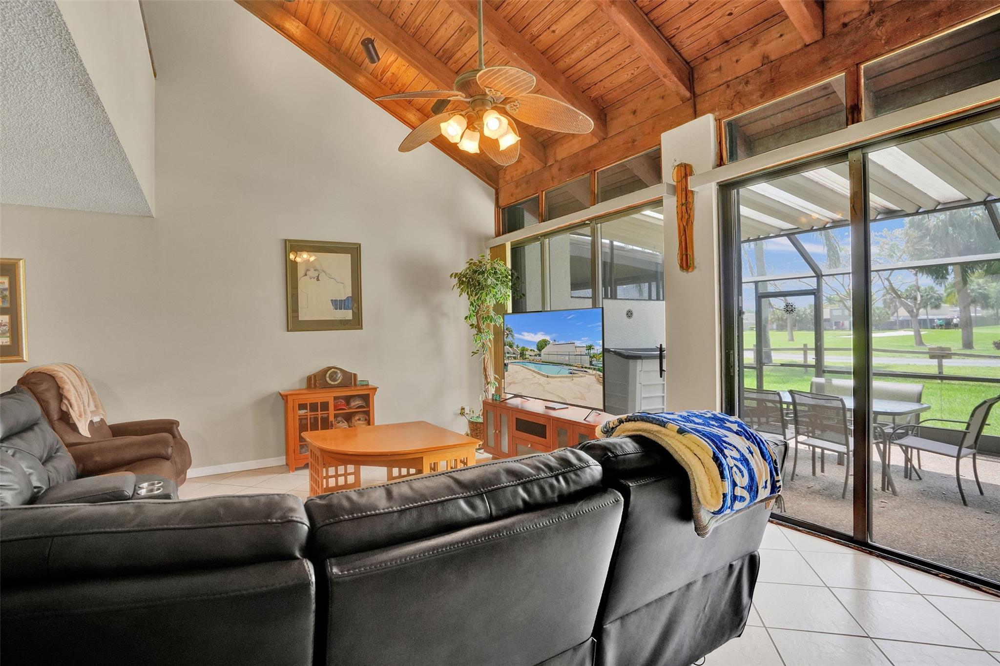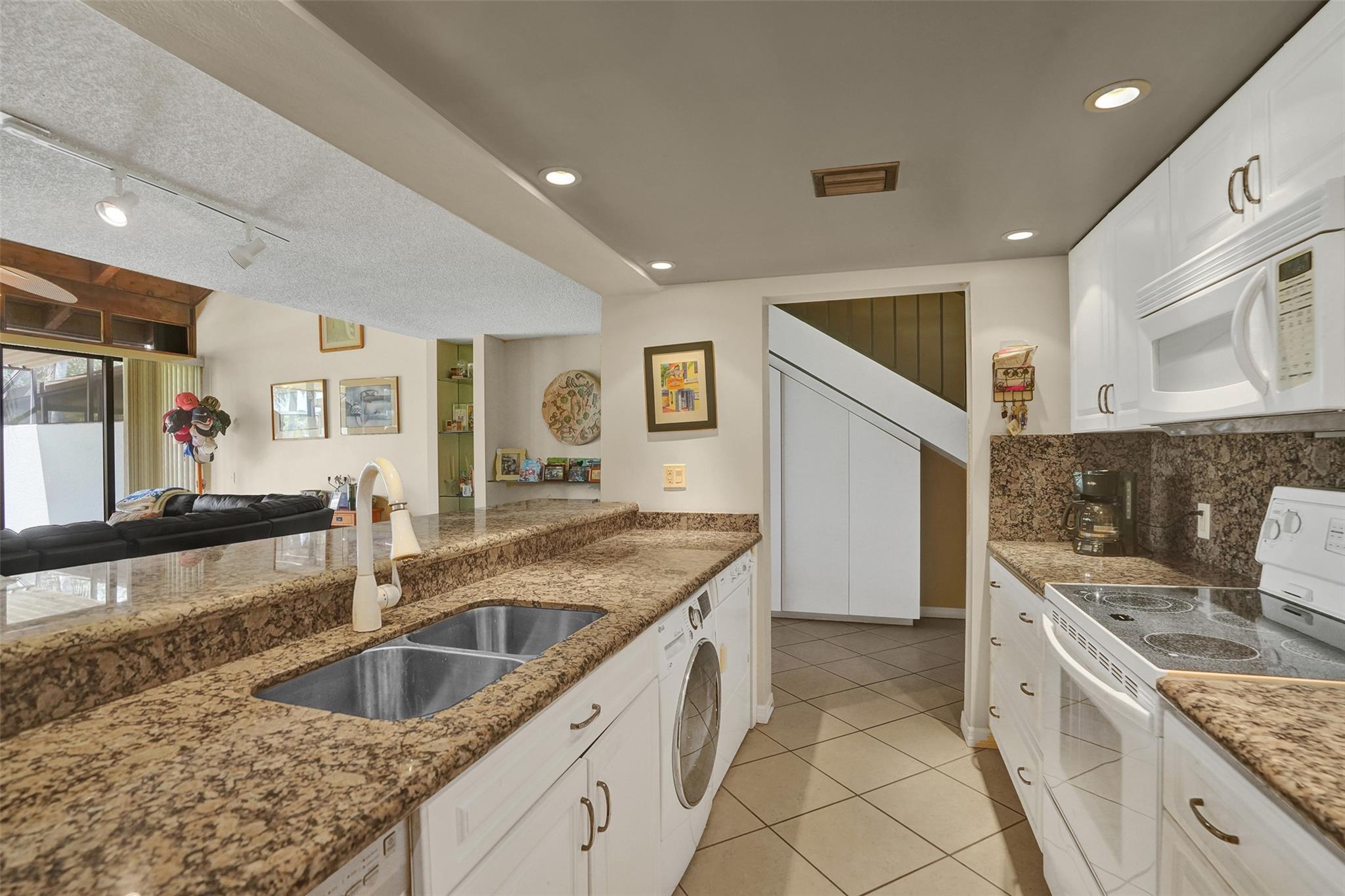 Incredible Golf Course views! This is a great opportunity to live on the golf course. This split level home has soaring high ceilings that make this unit feel grand and open. Large living area open to screened porch where you can sit and enjoy the lifestyle S Fla offers. Updated kitchens with stone counters and white timeless cabinets. The kitchen opens nicely into the living and dining area, No closed off kitchens here. Both Bathrooms have been tastefully remodeled with high end finishes. Storm shutters for all windows and doors. Great storage space. 2 assigned parking. Great community with pool. tennis, pickle ball. Low maint fee of $125/month. This home has it all !