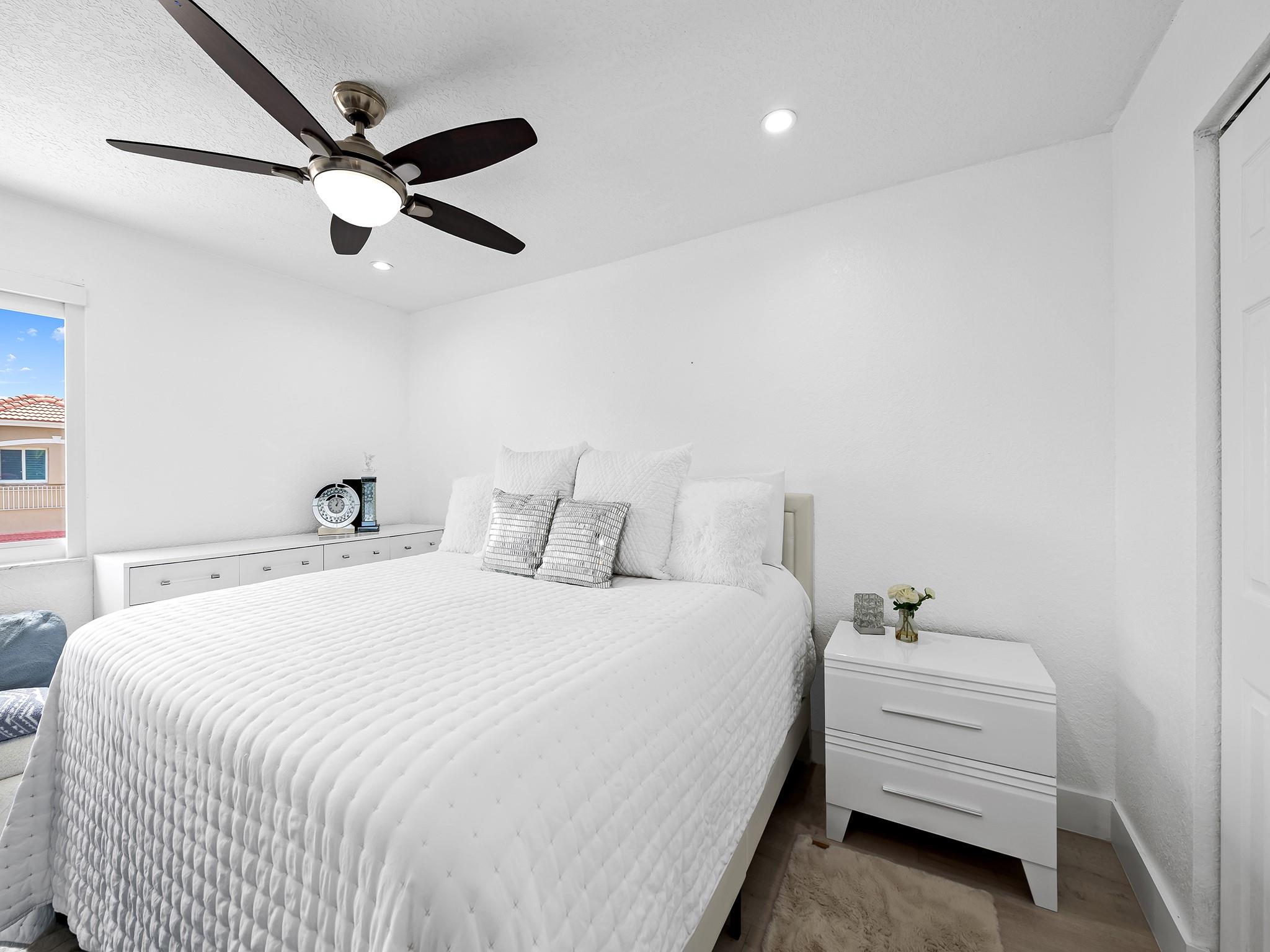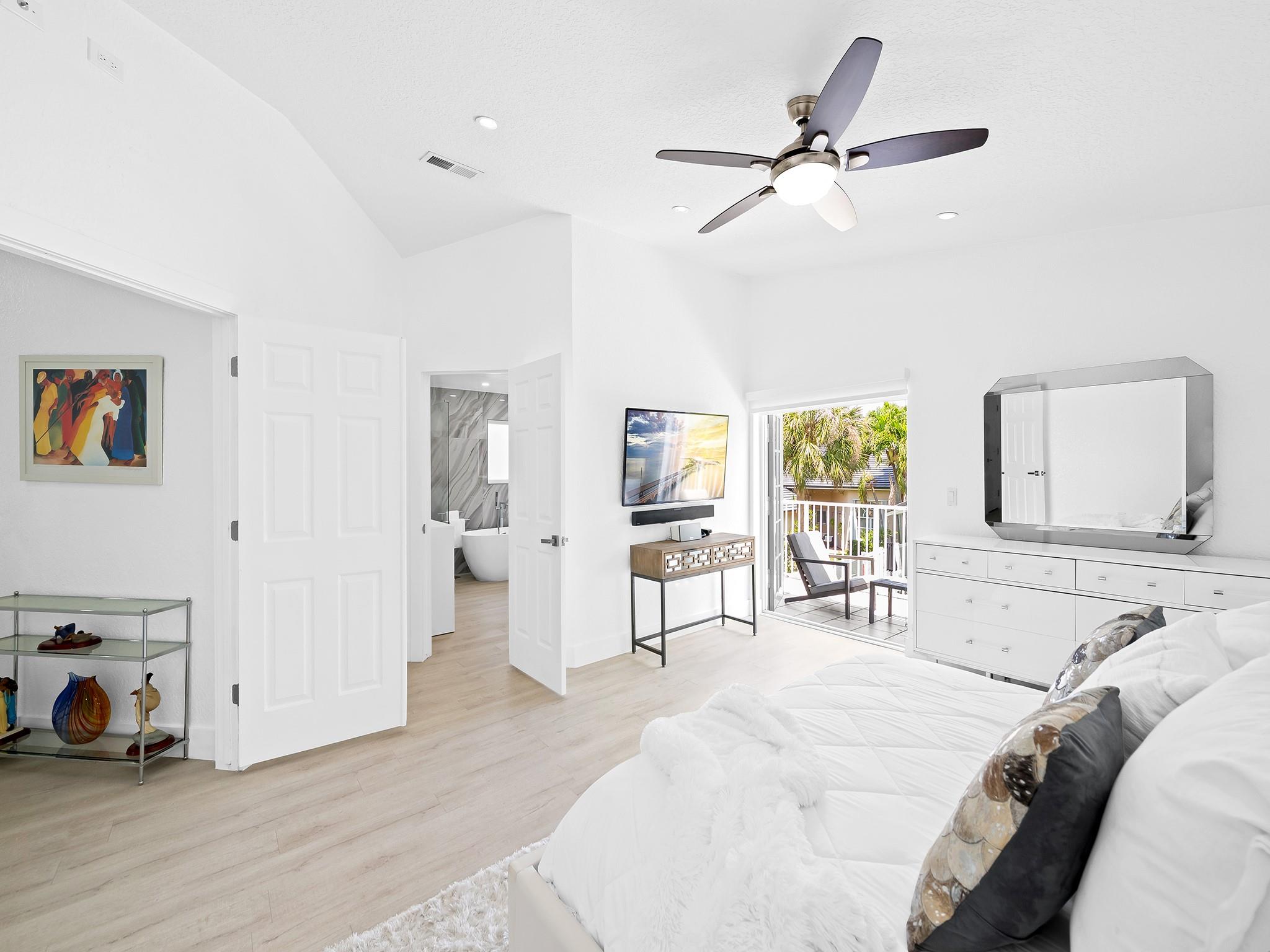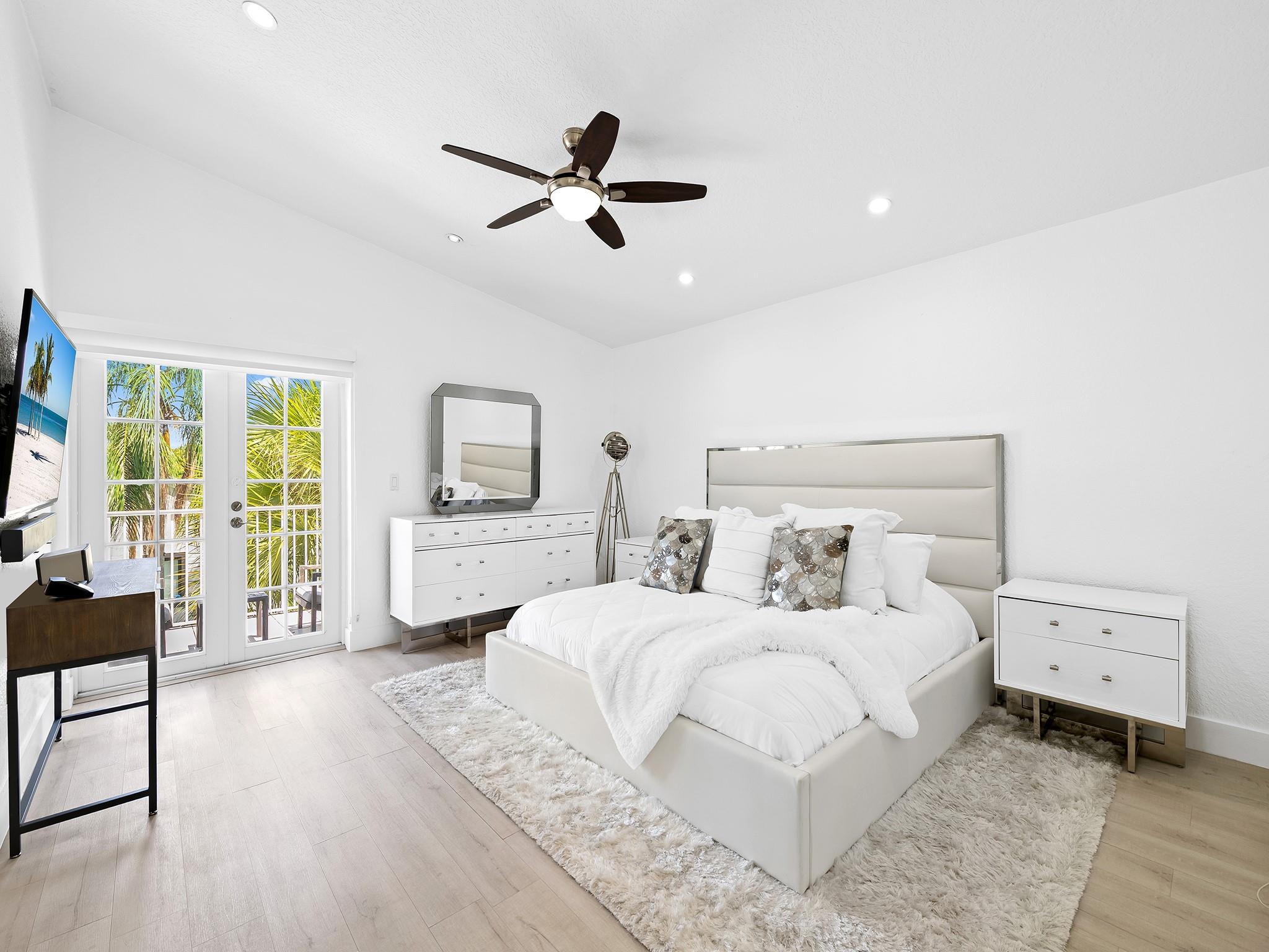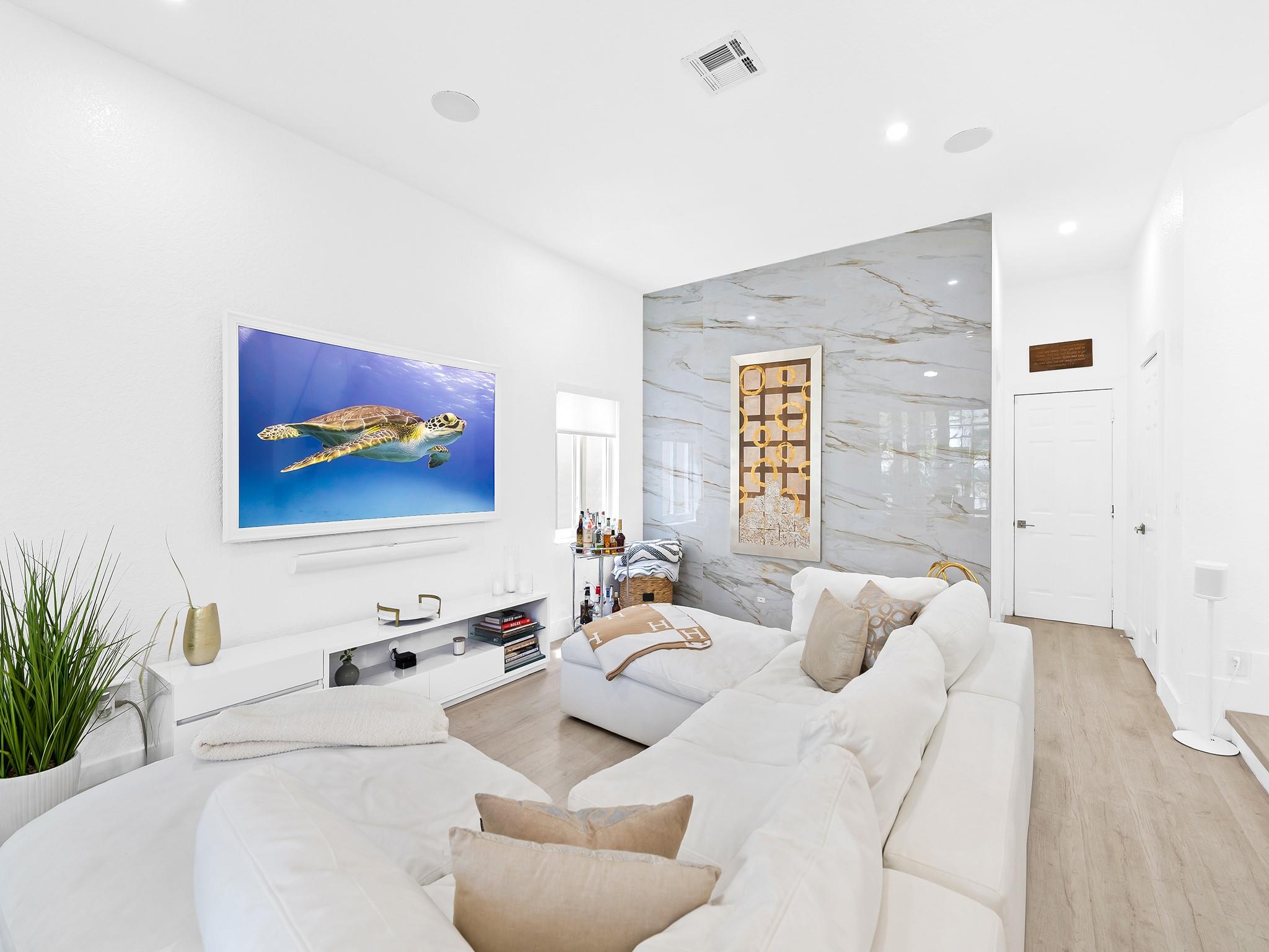 Welcome to this beautifully renovated 4 bed, 3 bath home located in the exclusive Grand Palms golf community. With over 2500 sqft of elegant living space, this home blends modern upgrades with timeless style. Step into the open-concept foyer and immediately feel the warmth of natural light pouring through expansive impact windows. The flowing layout highlights new flooring, updated fixtures, and a sleek, modern kitchen perfect for entertaining and everyday living. The primary suite is a true retreat, complete with a luxurious en-suite bathroom featuring an elegant soaking tub, walk-in shower, spacious walk-in closet, and a private balcony. The home features a 2021 roof, impact windows, updated secondary bedrooms and bathrooms, and a 2-car garage with an EV charger for added convenience.