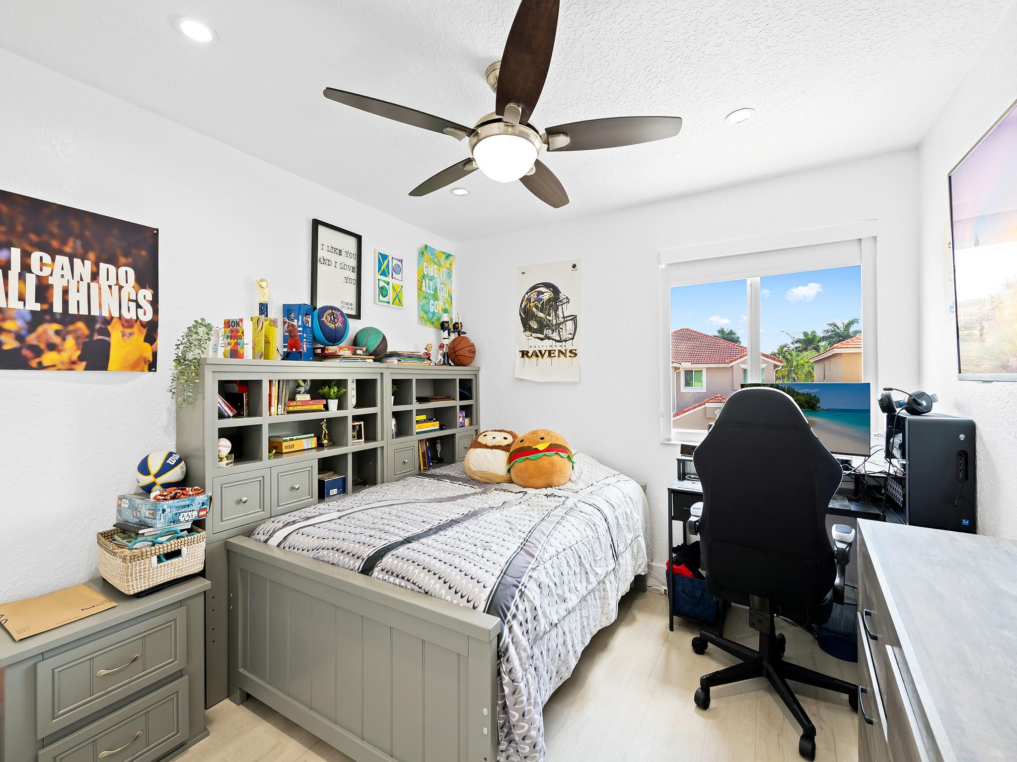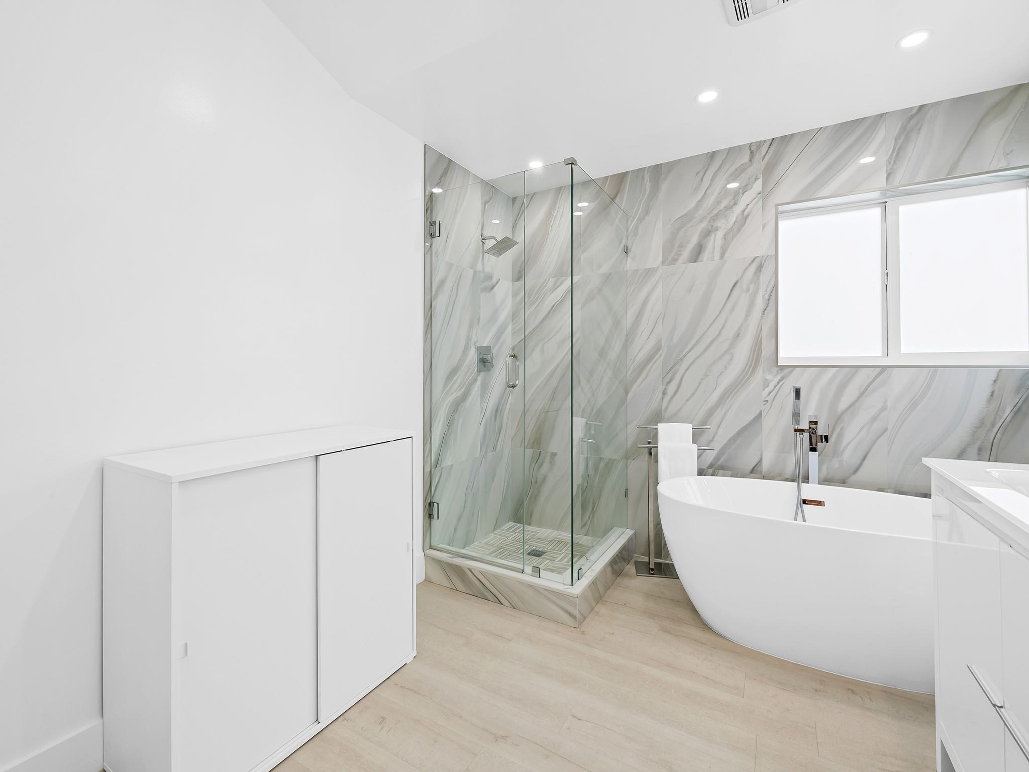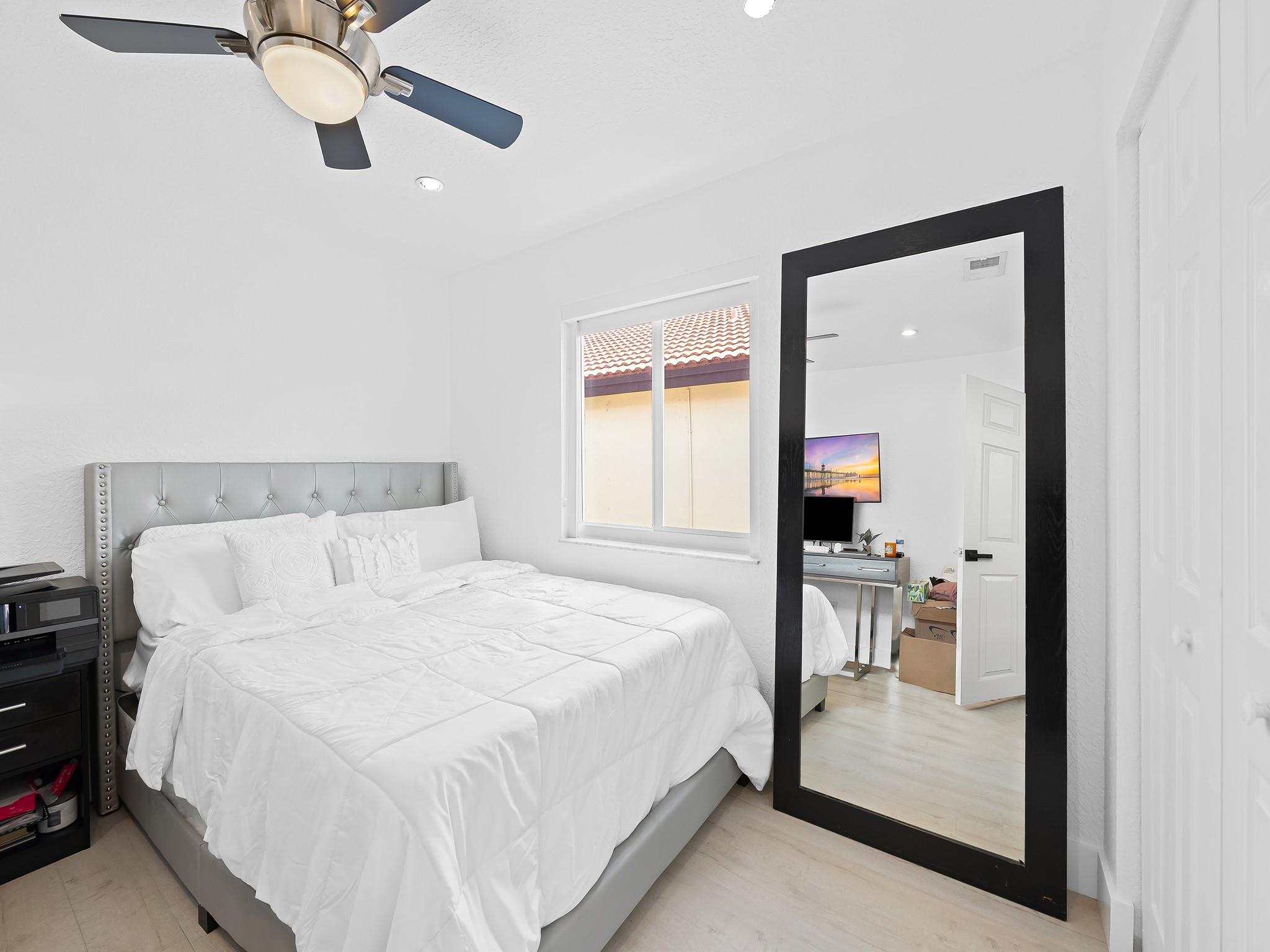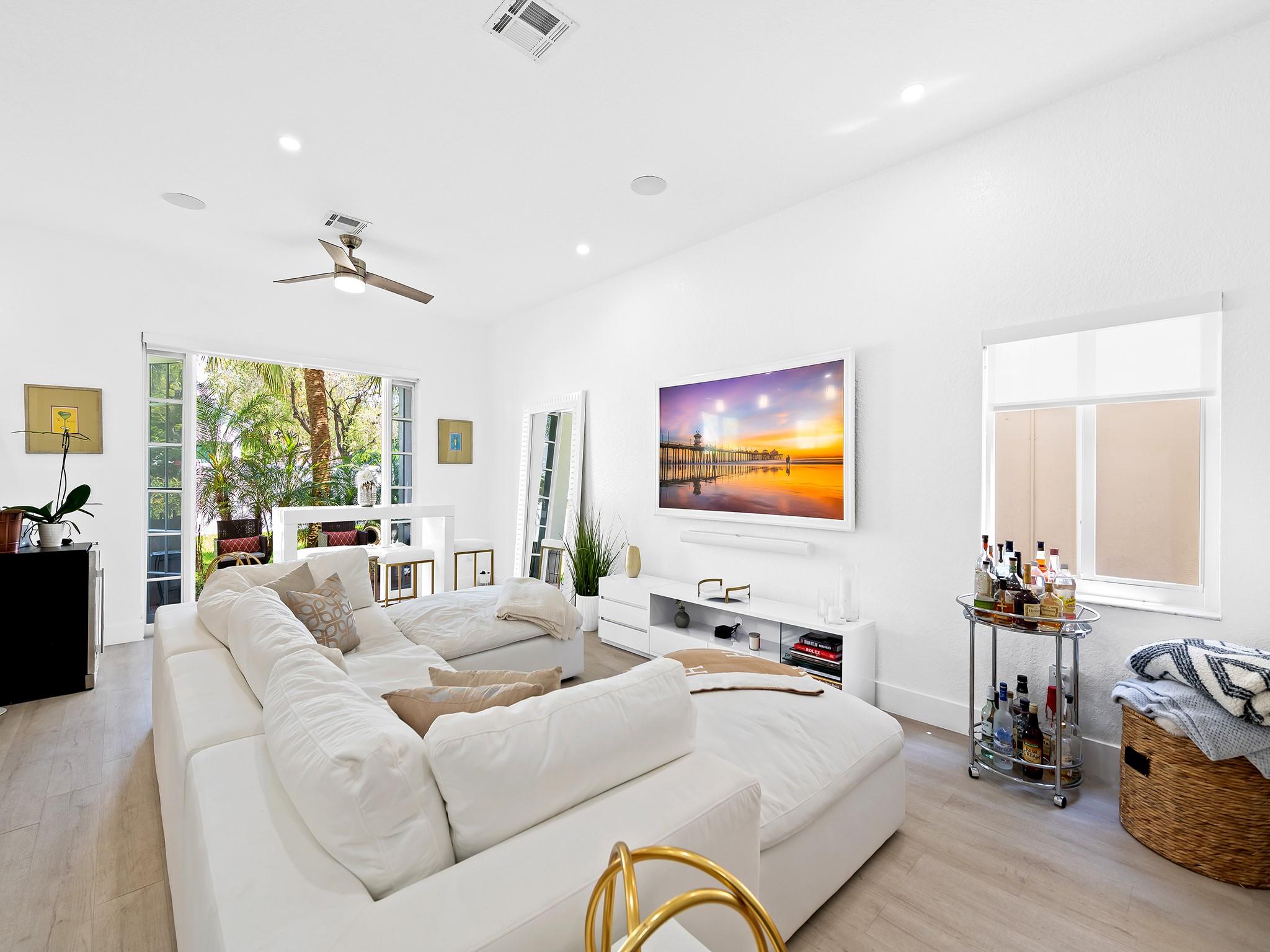 Welcome to this beautifully renovated 4 bed, 3 bath home located in the exclusive Grand Palms golf community. With over 2500 sqft of elegant living space, this home blends modern upgrades with timeless style. Step into the open-concept foyer and immediately feel the warmth of natural light pouring through expansive impact windows. The flowing layout highlights new flooring, updated fixtures, and a sleek, modern kitchen perfect for entertaining and everyday living. The primary suite is a true retreat, complete with a luxurious en-suite bathroom featuring an elegant soaking tub, walk-in shower, spacious walk-in closet, and a private balcony. The home features a 2021 roof, impact windows, updated secondary bedrooms and bathrooms, and a 2-car garage with an EV charger for added convenience.
