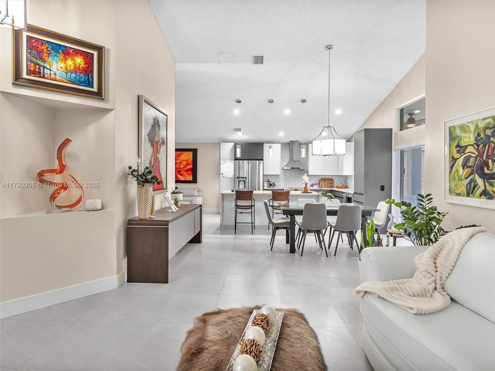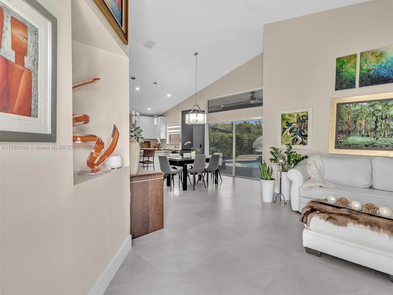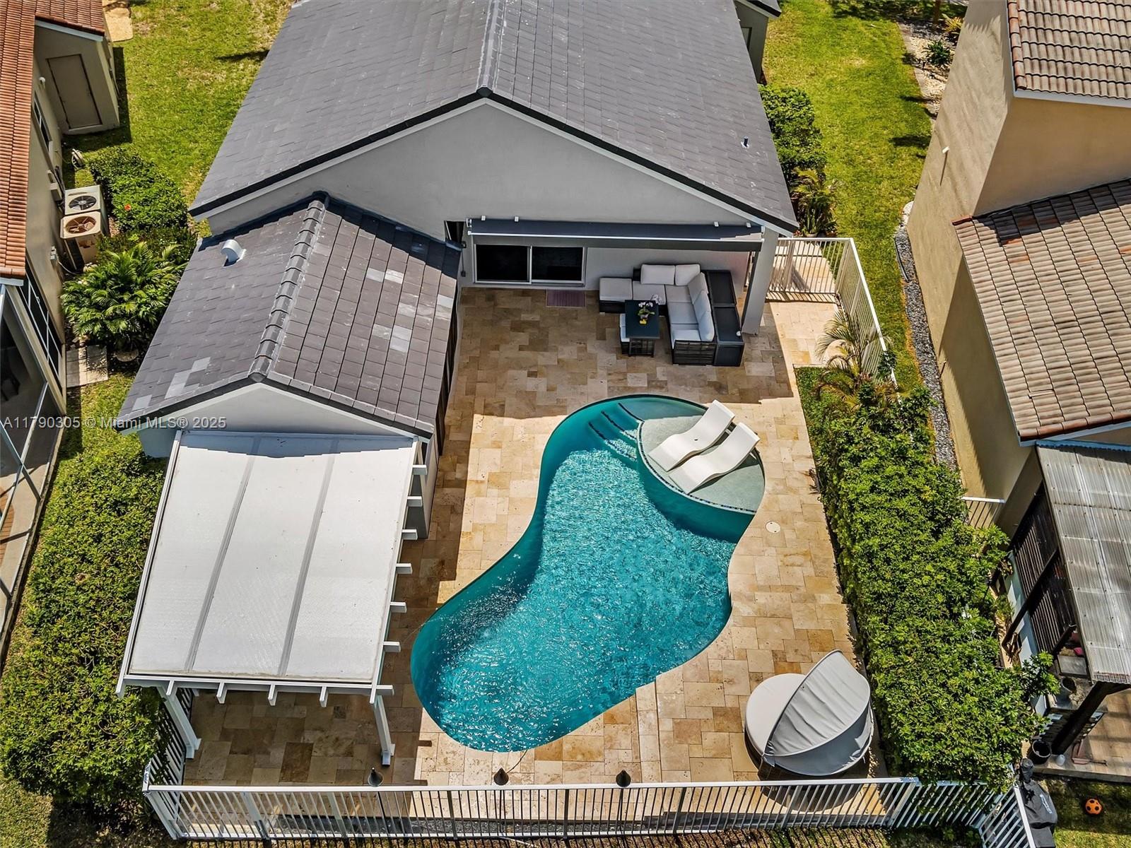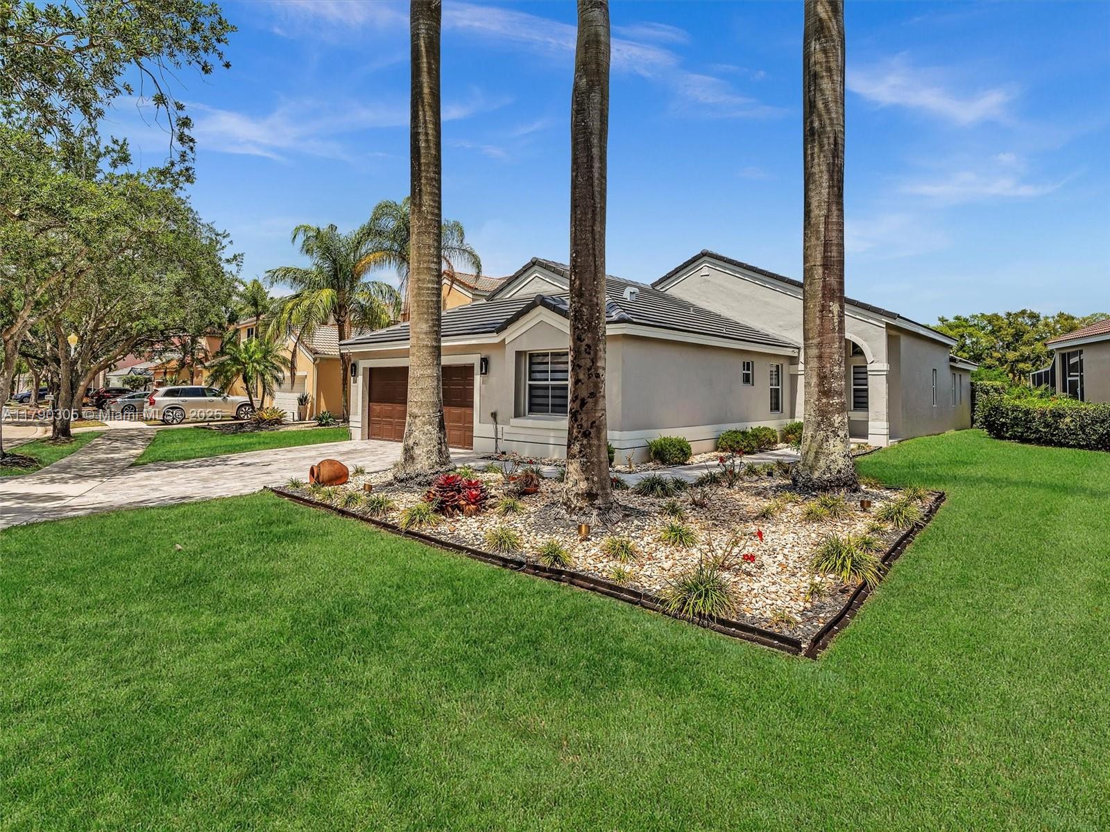 Stunning lakefront pool home in The Falls, Weston. Fully renovated & move-in ready! New 2025 roof, 2024 exterior paint, tile in living, luxury vinyl floor in bedrooms. Modern kitchen & baths with quartzite counters. Custom wall unit with electric fireplace. Saltwater pool with travertine deck, LED lights, and heater. Electric awnings, additional pergola, outdoor shower, aluminum fencing. 2023 Rheem A/C, zebra shades, electric rollers on sliders. Travertine paver driveway. Gated community with A+ schools. Easy to show!! Bring your buyers.