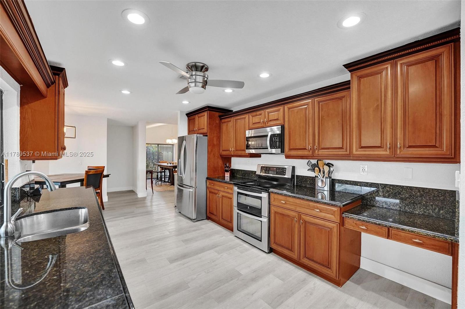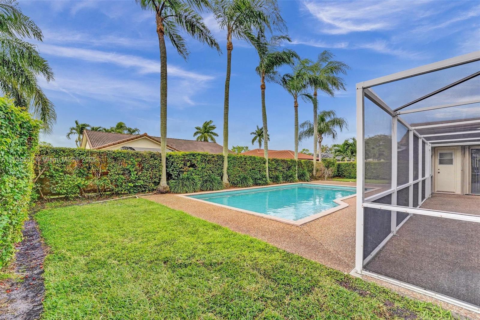 Fabulous opportunity at Oakwood! Spacious 4-bedroom, 2-bath one-story home with a fantastic layout and seamless sight lines throughout. Gorgeous updated bathrooms, Enjoy sunsets from your primary shower! Custom Thomasville kitchen cabinetry, stainless steel appliances, and built-in closet in the primary suite. Situated on an oversized fenced lot with privacy hedge, oversized pool, and complete backyard privacy. Covered screened patio, new bedroom doors, closet sliders, exterior fans, and full storm protection—impact windows, accordion shutters, and storm-rated garage door. Save with well water irrigation! The extra-long driveway fits multiple vehicles with ease. No HOA! Located on a quiet non-through street in a top-rated school zone, walking distance to Whole Foods, Coral Springs Mall +