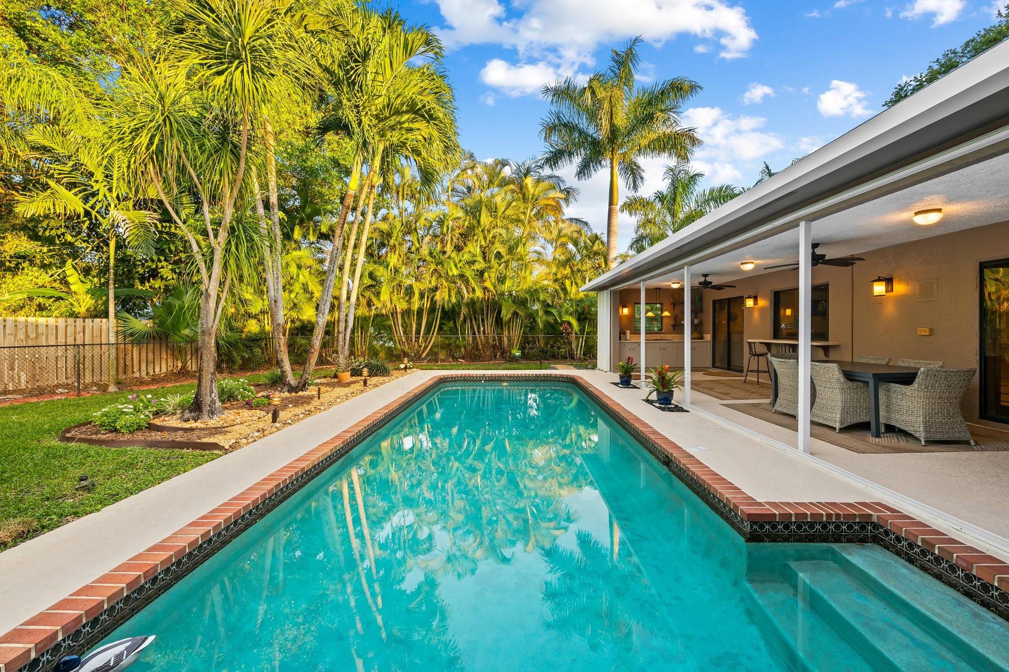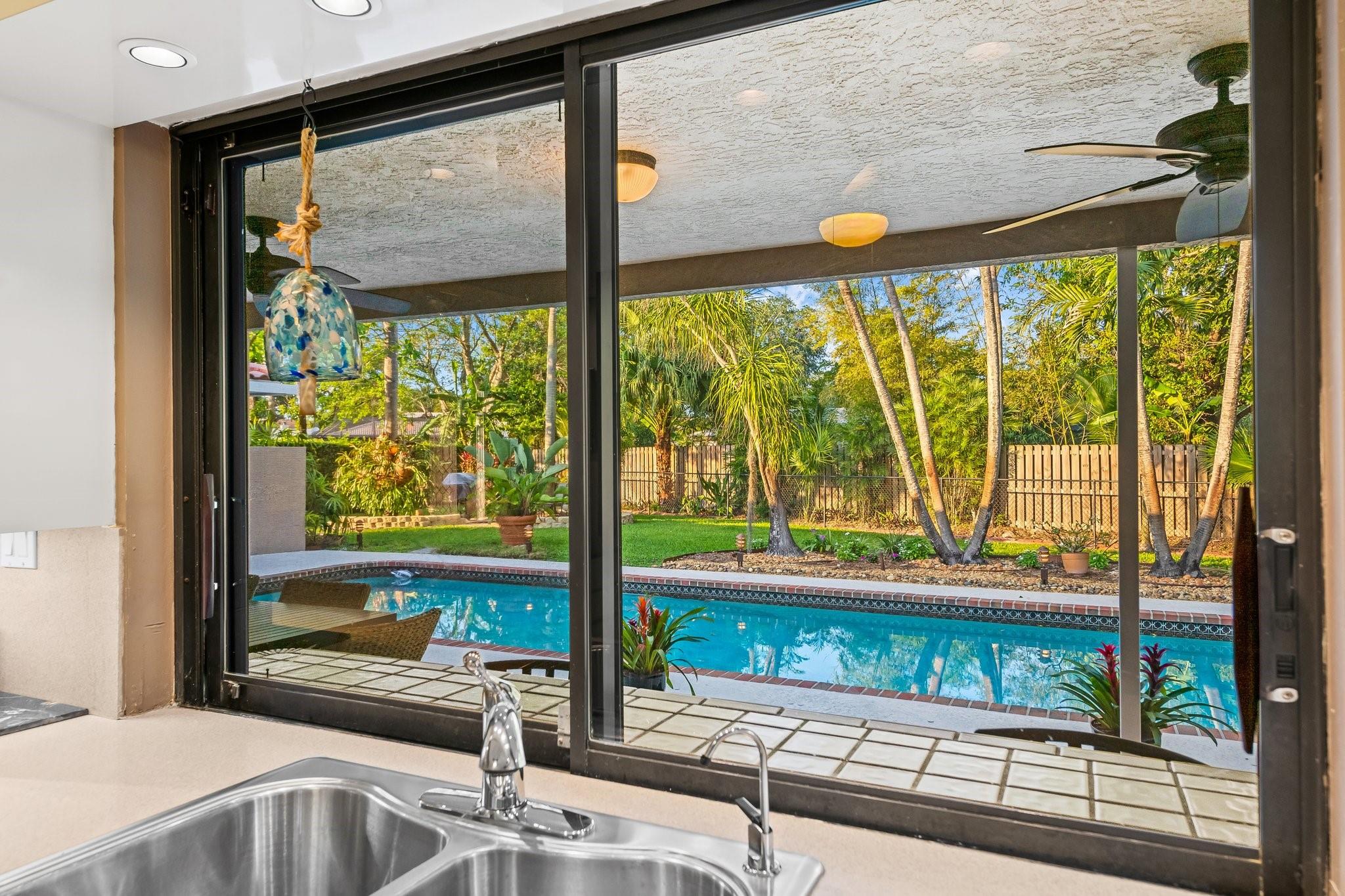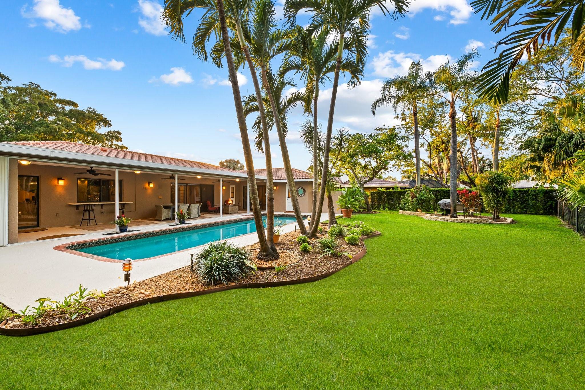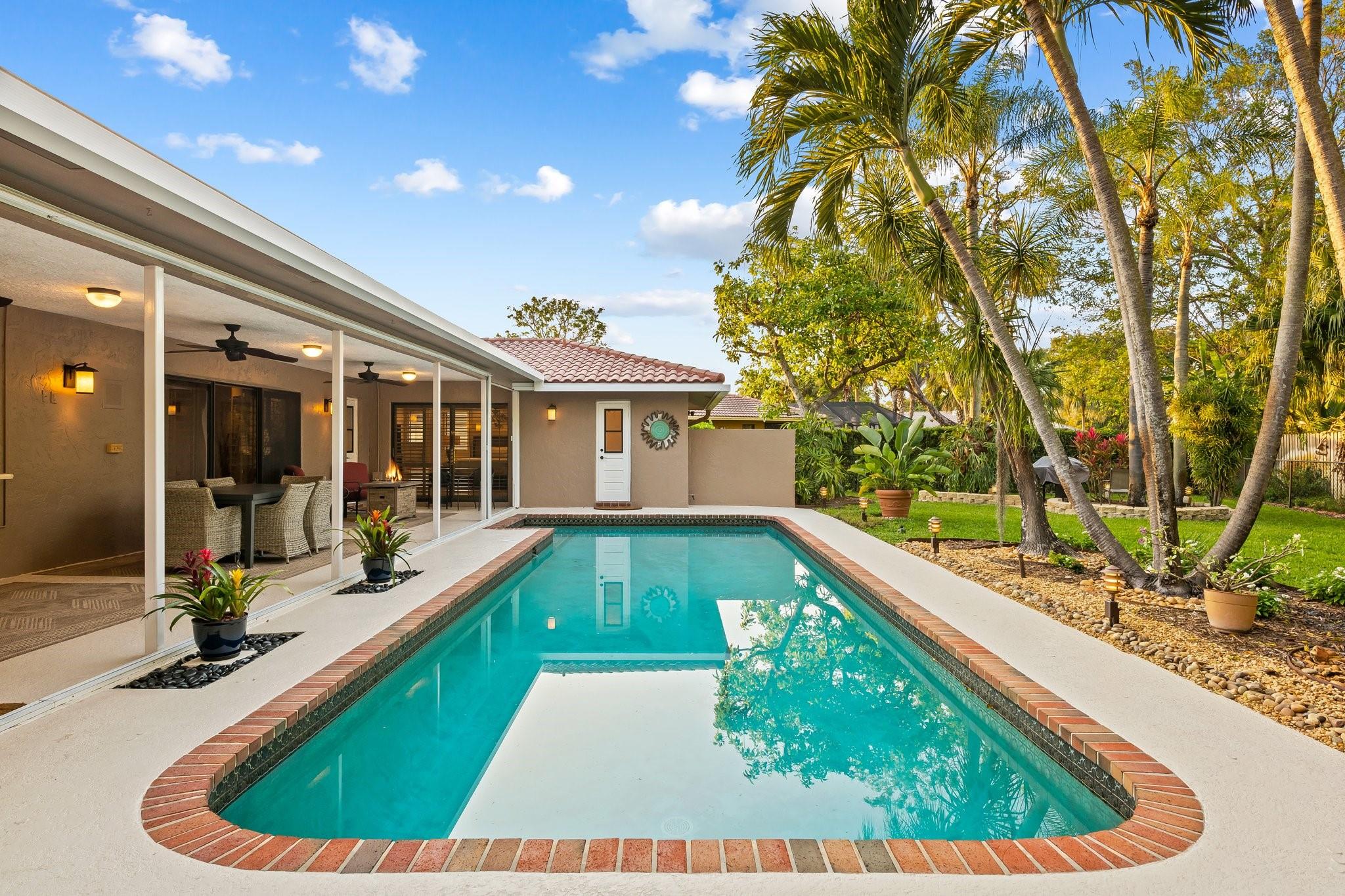 Charming Cul-De-Sac Pool Home with Exquisite Large Tropical Backyard. This 4Bedroom, 2.5 Bathroom Home Offers 3 Large Bedrooms, and the 4thBedroom could easily be a Bonus Room/Office that includes a Walkin Closet. You have Multiple Gathering Spaces for Entertaining, A Glass Enclosed Sunroom for Relaxing, Elegant Plantation Shutters, Decorative Fireplace. Interior Laundry Room with Wash Sink and Newer Appliances. Checkout the Pass thru Kitchen Window for Your Ease of Entertaining. The Magical Tropical Backyard is a True Florida Lifestyle Home which Adorns Many Tropical Plants: Fruit Bearing Avocado Tree, Stunning Plumeria, and Lush Palms. The Exterior Lighting Sets the Mood for Patio Enjoyment. This Home is an Entertainers Dream. Excellent Schools, Close to Parks, Restaurants, & Shopping.