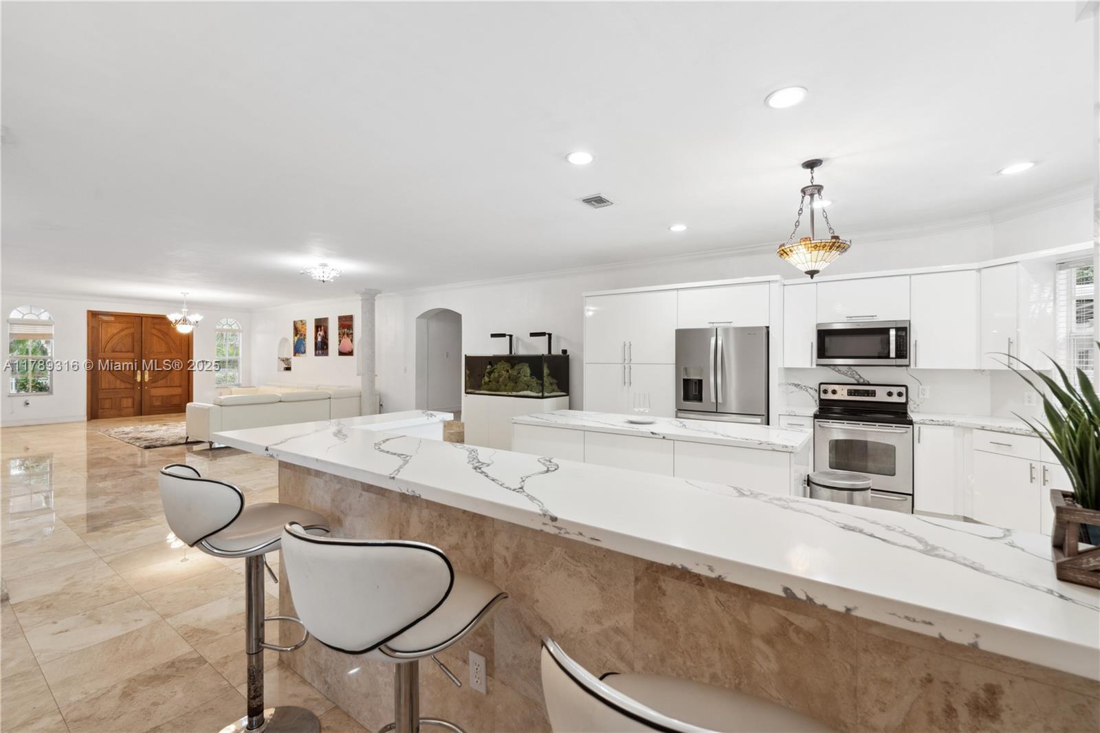 Discover your dream home in the heart of Miami Springs , this stunning property offers ample space for comfort and leisure, spanning and impressive 18,000 square foot lot . Designed with modern living in mind, the home features a spacious , open concept layout , including 5 bedrooms and 3 and half bathrooms . The large master bedroom offers a tranquil retreat , while the newly remodeled kitchen is perfect for creating culinary delights , step outside to enjoy the covered patio and summer kitchen , ideal for lakeside gatherings with plenty of room for entertaining and more , this home is a haven for those seeking a combination of luxury and tranquility
