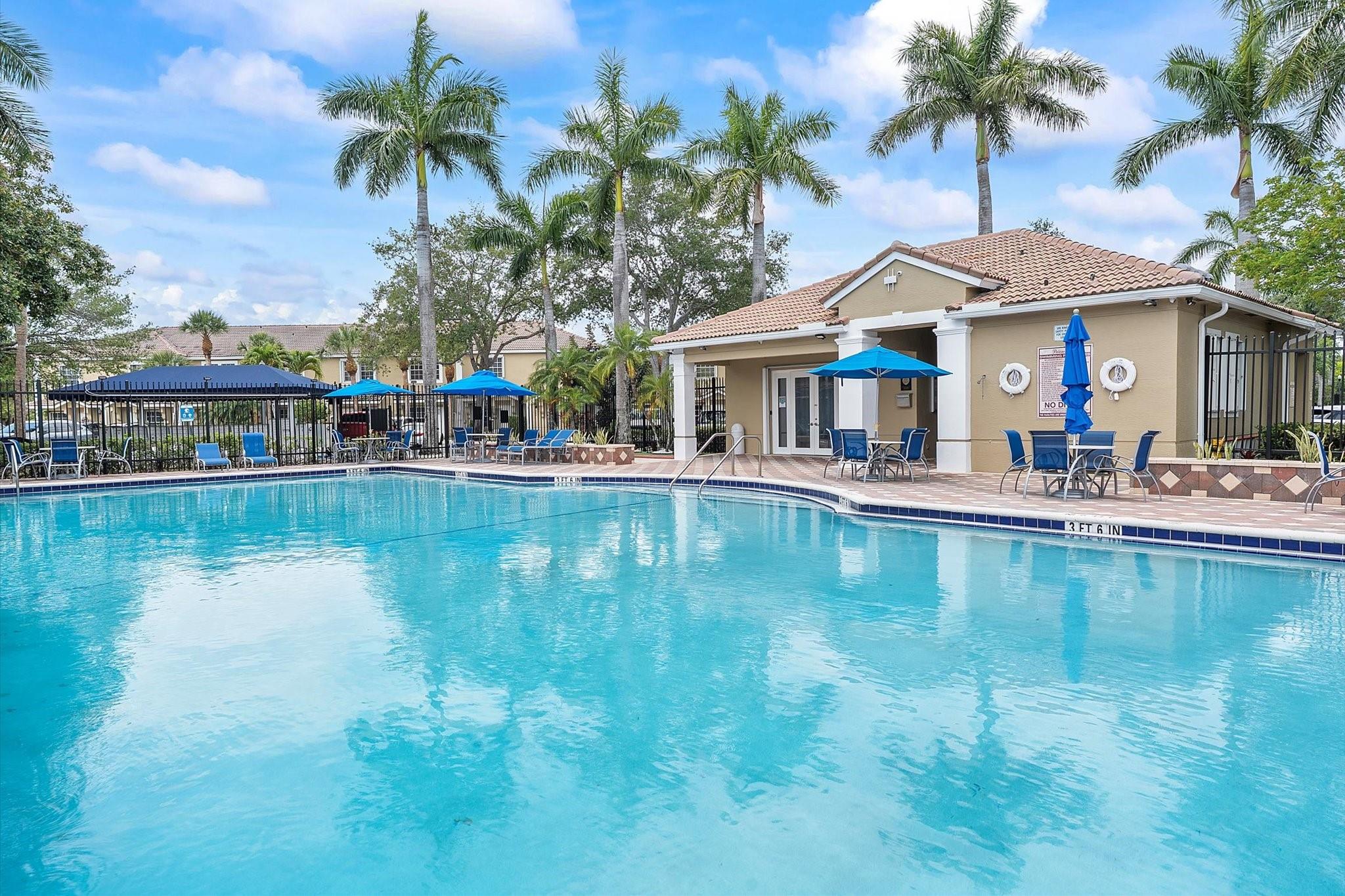 Extraordinary 2-story corner townhouse in gated Pelican Pointe, featuring 3 spacious bedrooms, 2.5 baths. The kitchen features stainless steel appliances and breakfast bar. The kitchen flows into an open-concept layout with tile flooring throughout (carpeted stairs). Primary included spacious ensuite and walk-in closet. Enjoy added peace of mind with accordion shutters on main and rolldown shutter on second floor. Includes a 1-car garage, 2-car driveway, and guest parking. Move-in ready. Community amenities include pool, jacuzzi, tennis, gym, 24-hour security, and onsite management. Low HOA covers cable and internet. Prime location near Pembroke Lakes Mall, C.B. Smith Park, dining, shops, hospitals and schools.