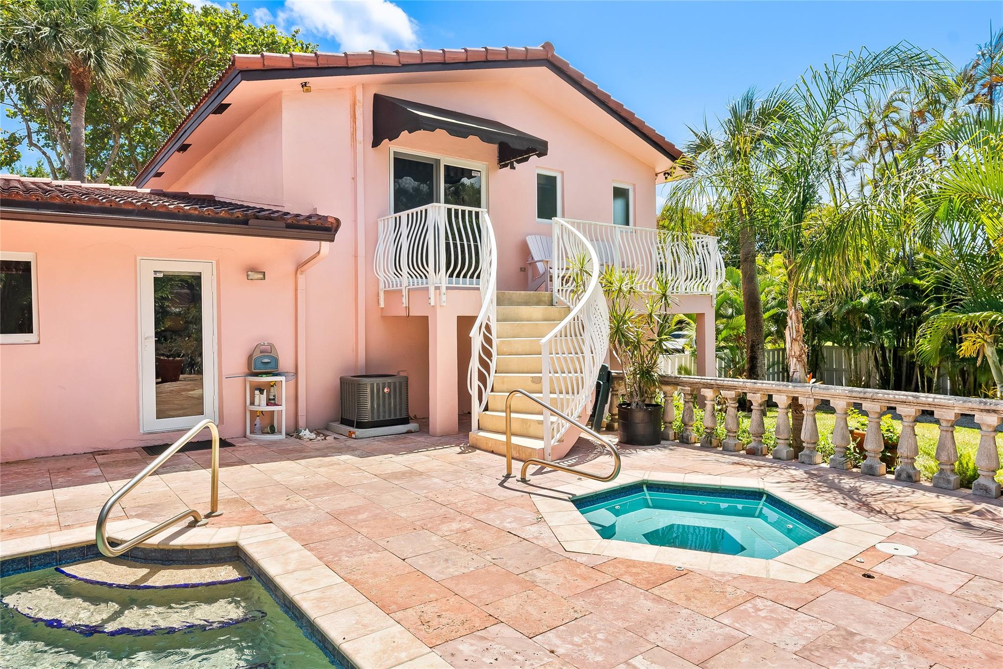 Private beach access! OVERSIZED lot on 8ft elevation. 1 of a kind home in desirable Hillsboro Shores. Lot is almost 13,000 sqft, +features plenty of natural grass on either side of your pool/hot tub. 4 car garage. Over 2700 sq ft of living area w/a split bedroom floor plan. Stairs lead to the primary bedroom on the right side of the house with another primary bedroom on the left, which features a balcony with spiral staircase down to the pool deck. Both primary bedrooms are ultra spacious + boast large bathrooms. Living area, kitchen and bedrooms look out to your pool area making the energy sublime. Take a 2 minute walk down road to reach two private beach access gates only available to Hillsboro Shores residents. Juice/Smoothie bar, sushi, Argentinian restaurant + park just down the road.